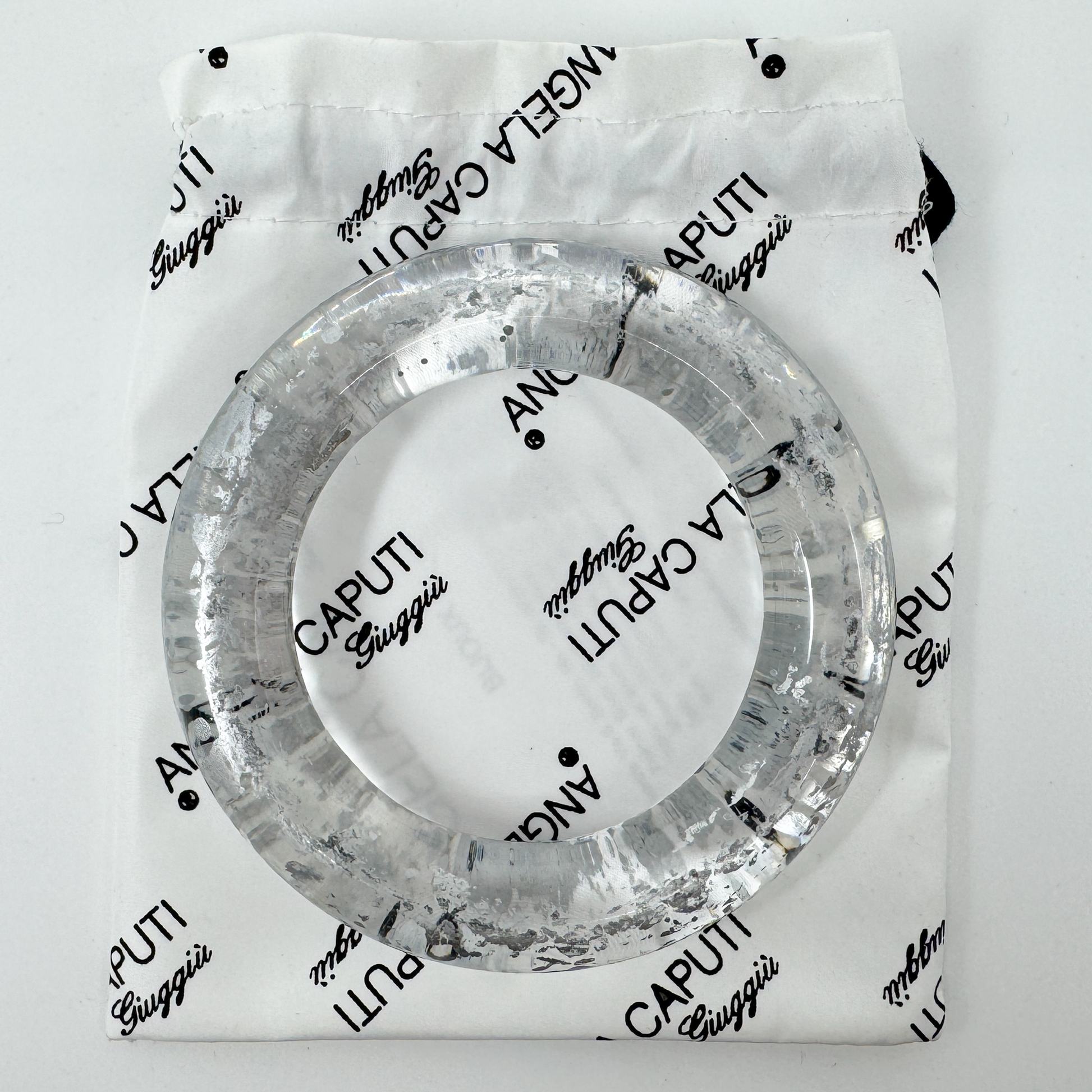Angela Caputi Italy Clear Silver Flecked Bangle Bracelet
