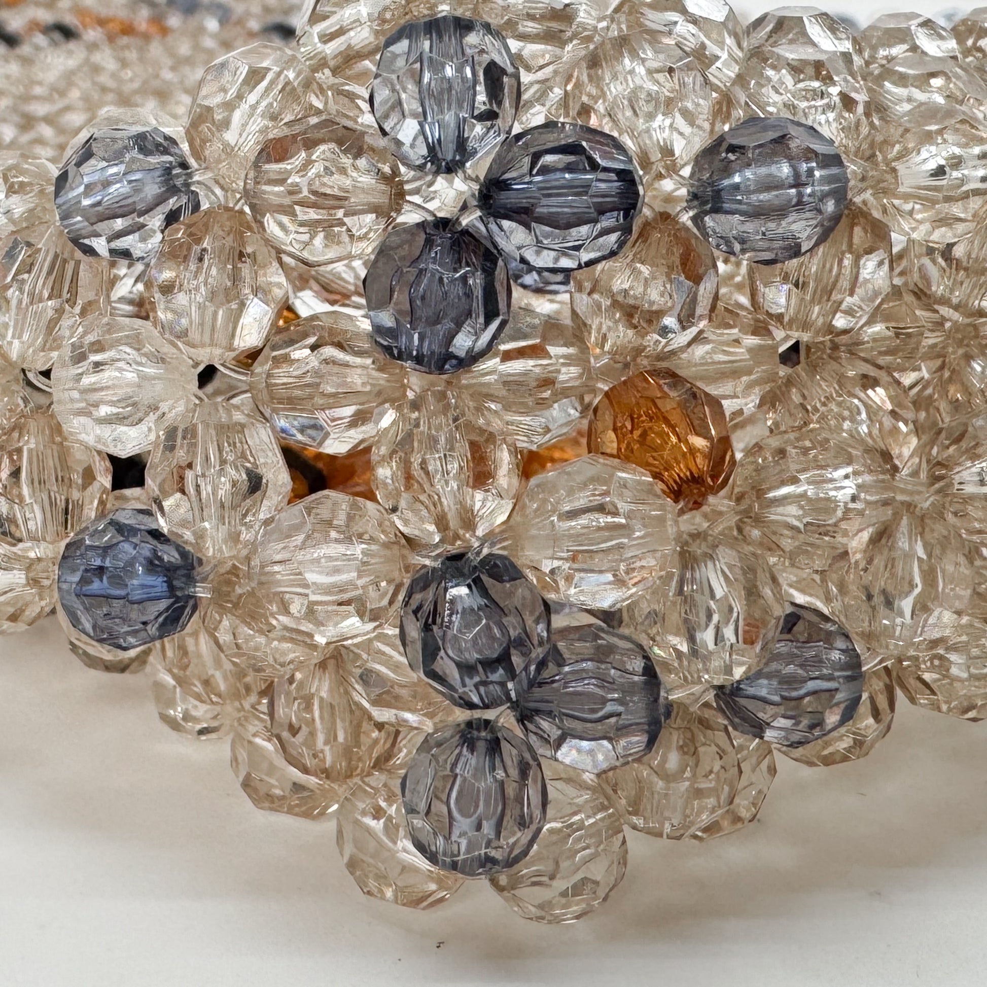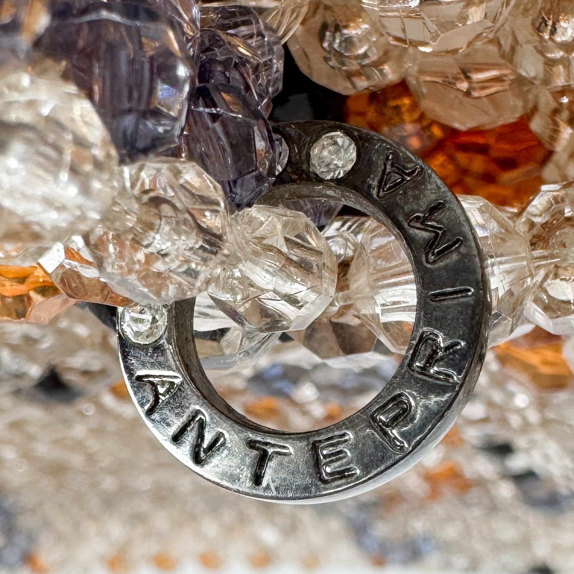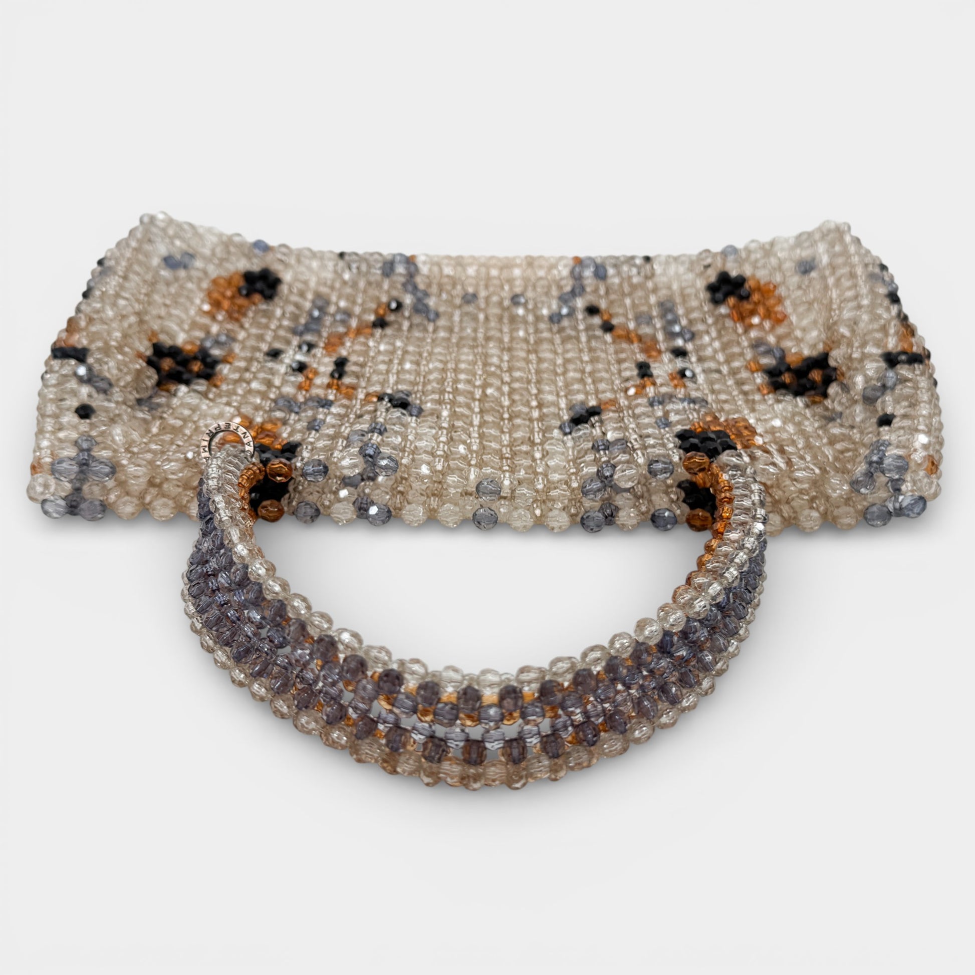 Details & Composition: Clear beaded base accented with floral / geometric patterns in gold, black and blue tones crafted in the Anteprima signature wire design. Made in PRC.