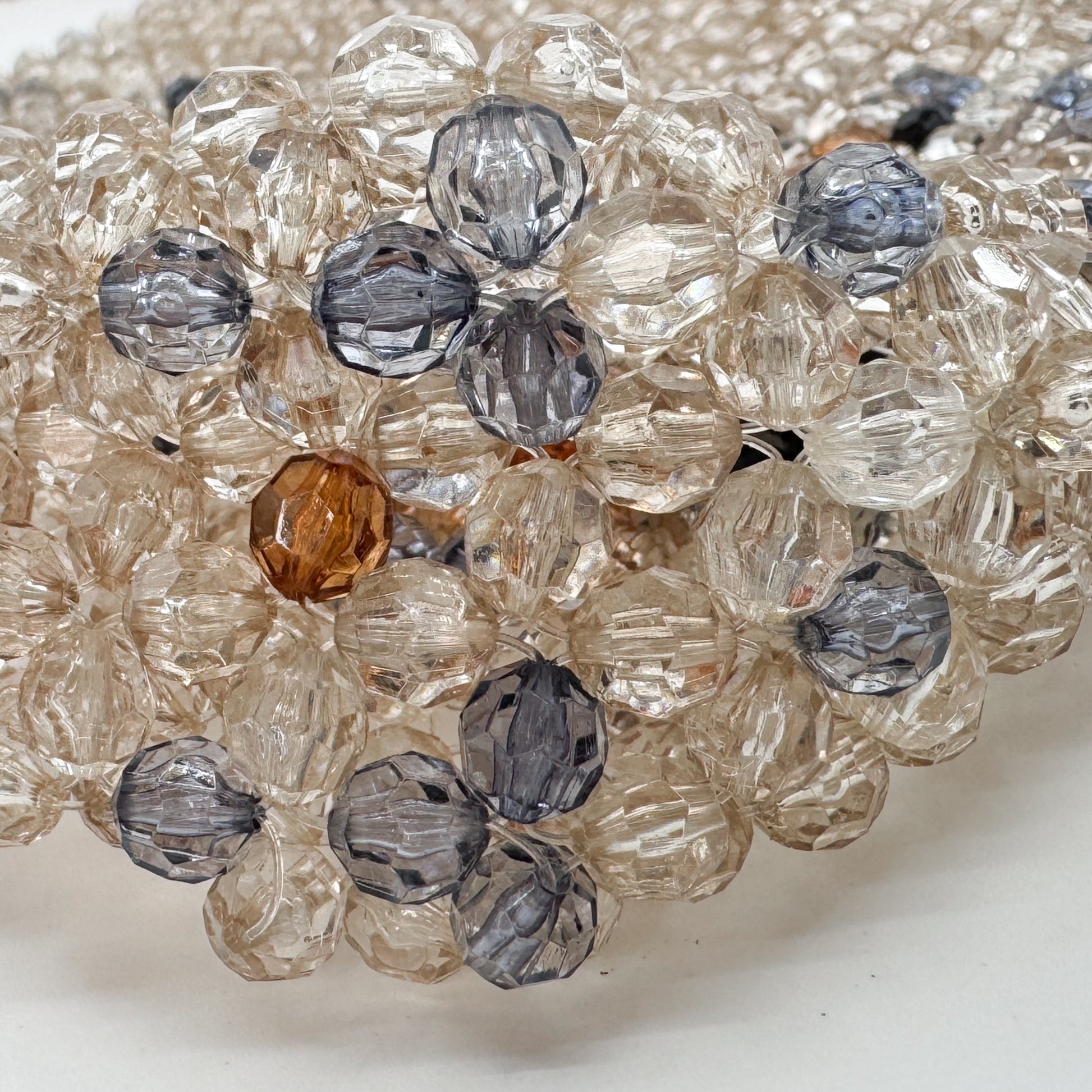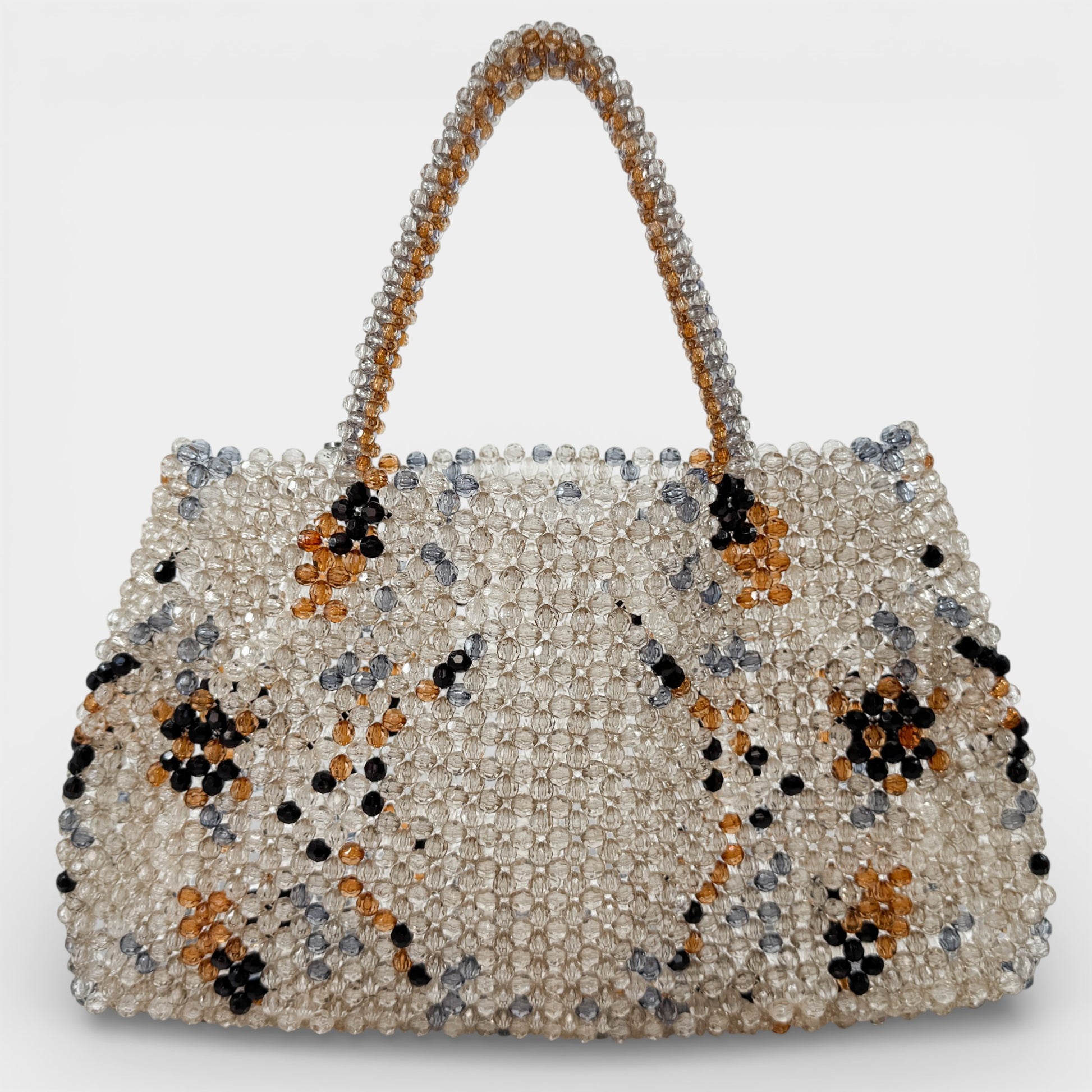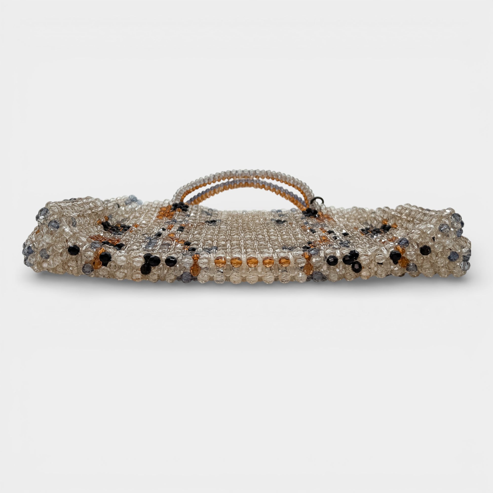 Details & Composition: Clear beaded base accented with floral / geometric patterns in gold, black and blue tones crafted in the Anteprima signature wire design. Made in PRC.