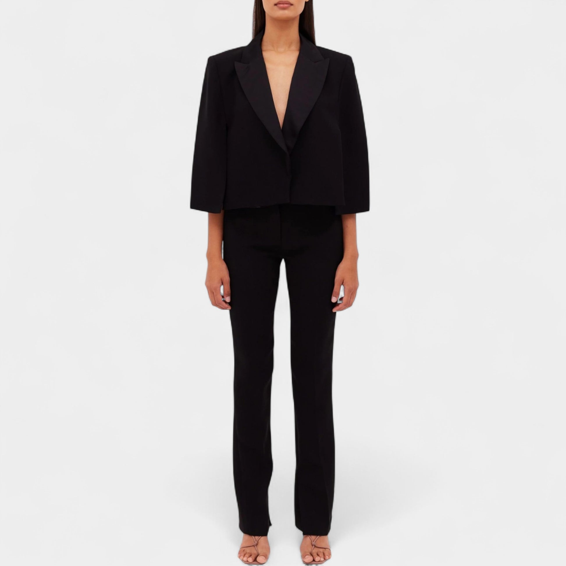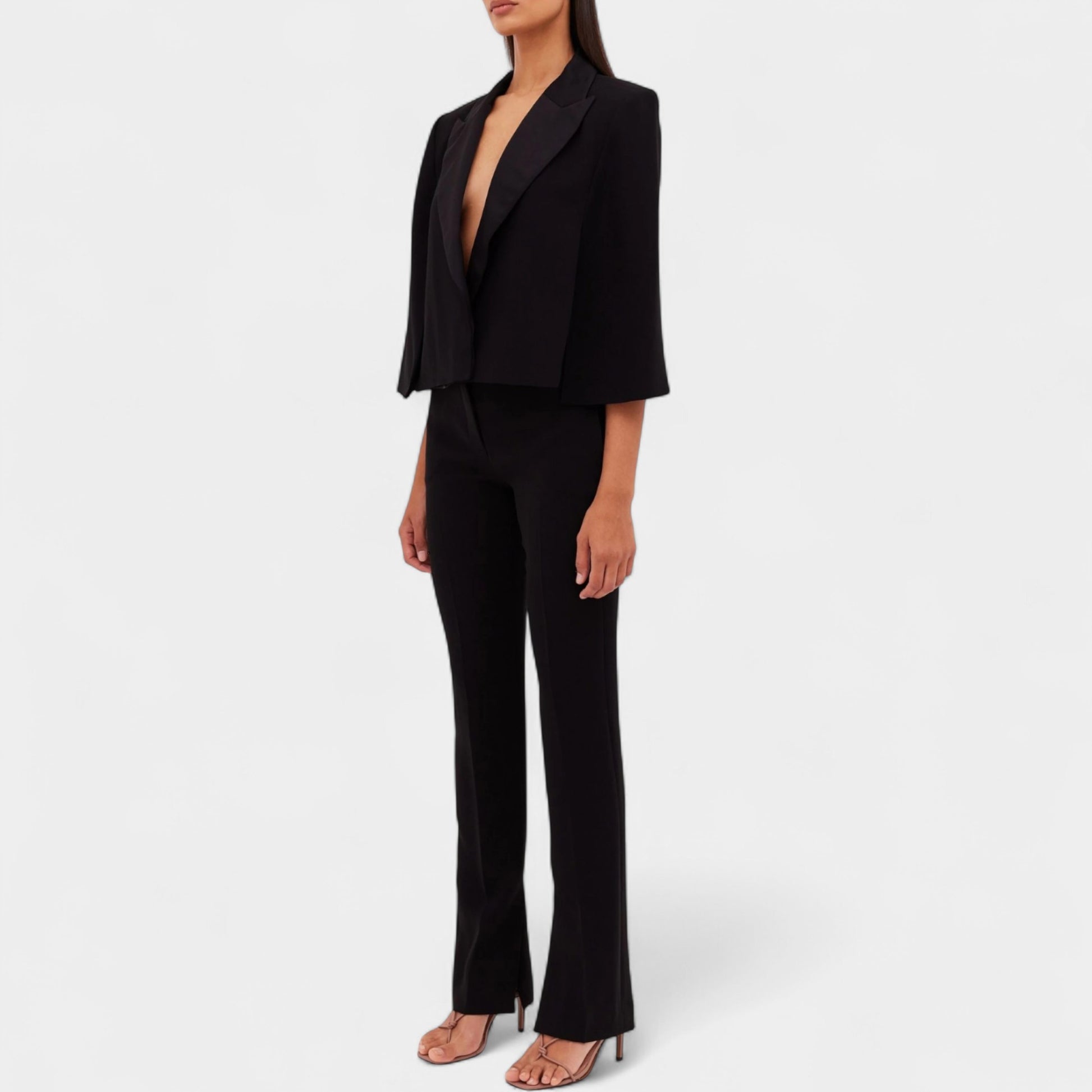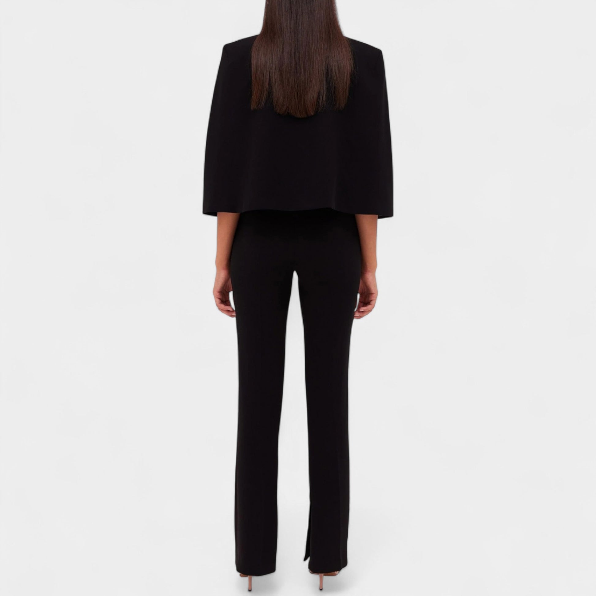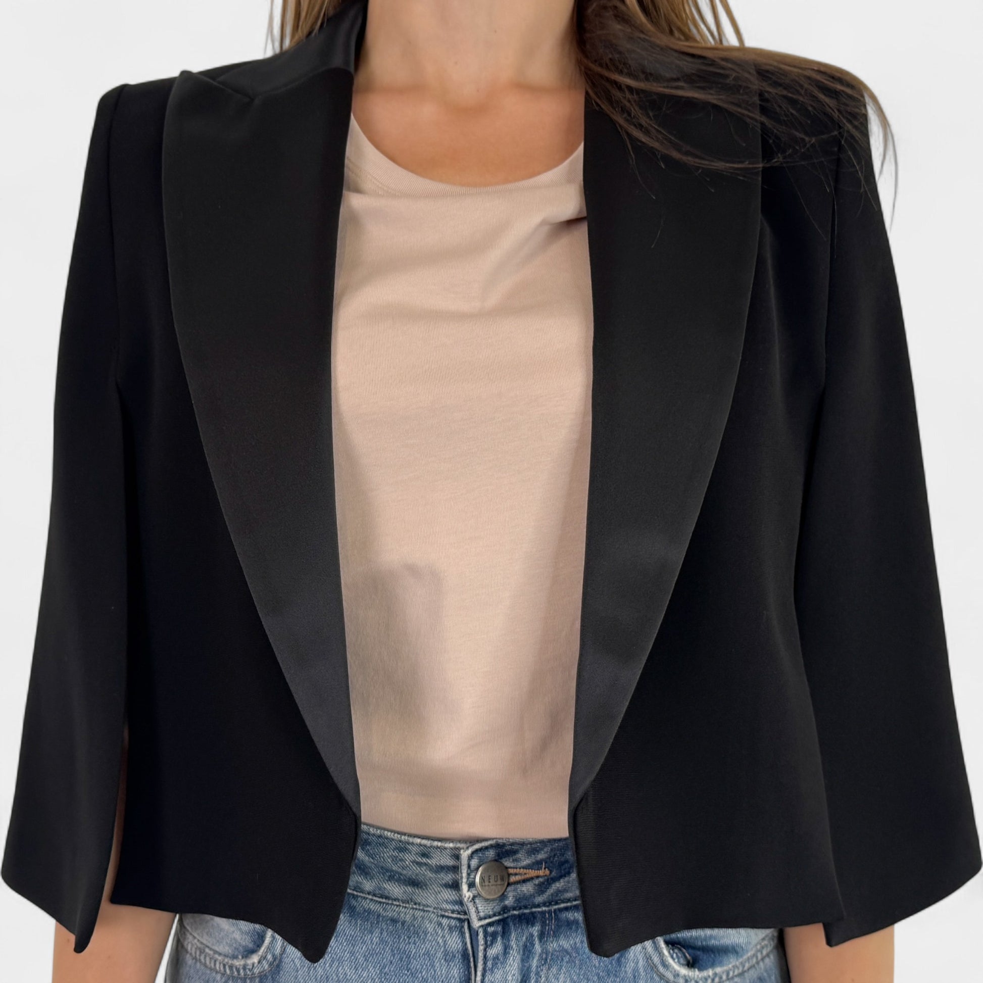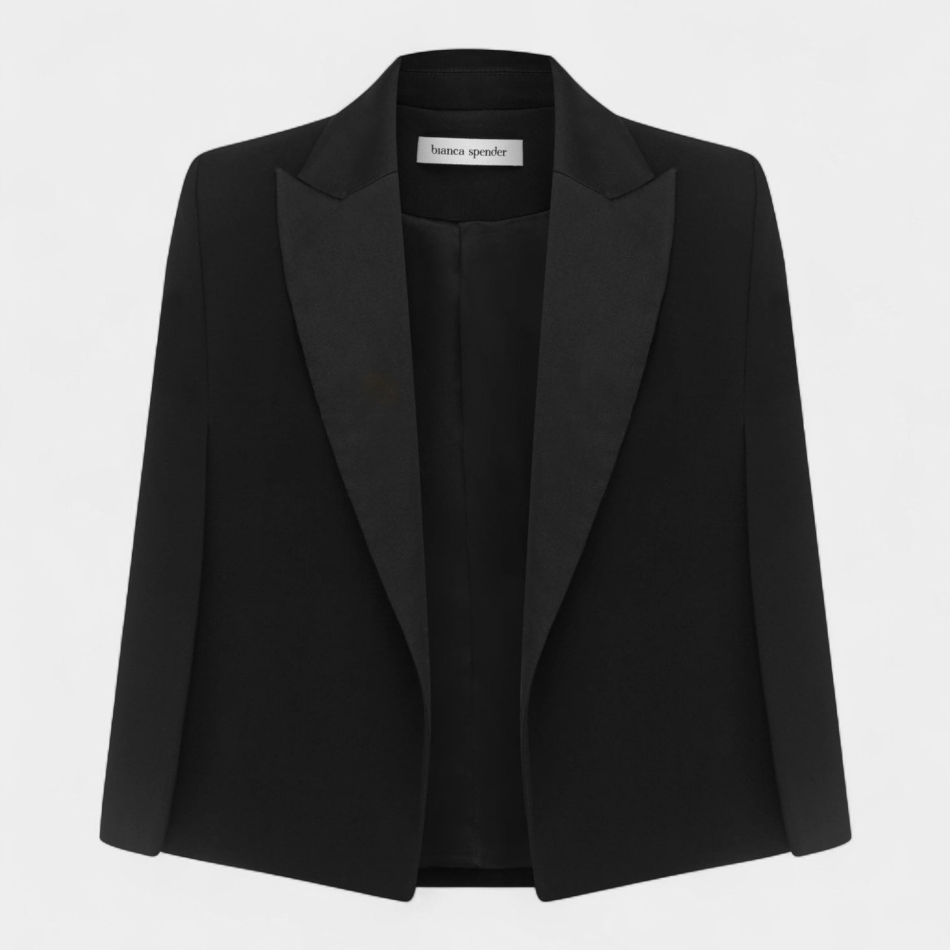 Details: Crafted in black crepe, this Bianca Spender jacquette cape jacket with a cropped cut, has structured lapels and side slits.