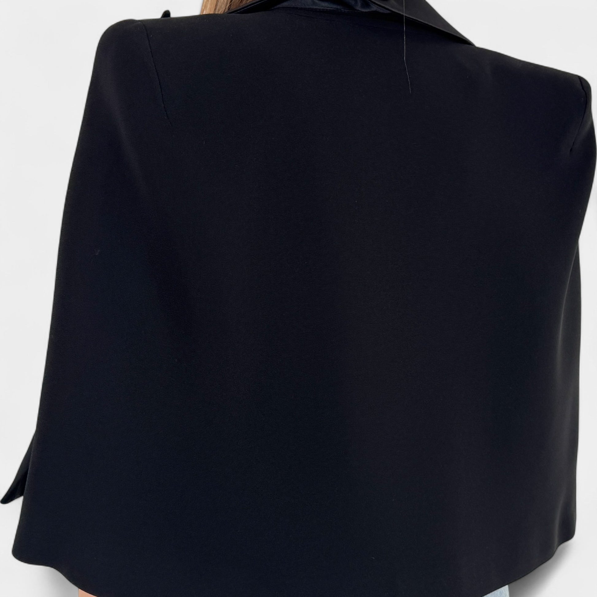 Bianca Spender Black Crepe Jacquette Cape Jacket 0 ~ AU6-8 ~ Small