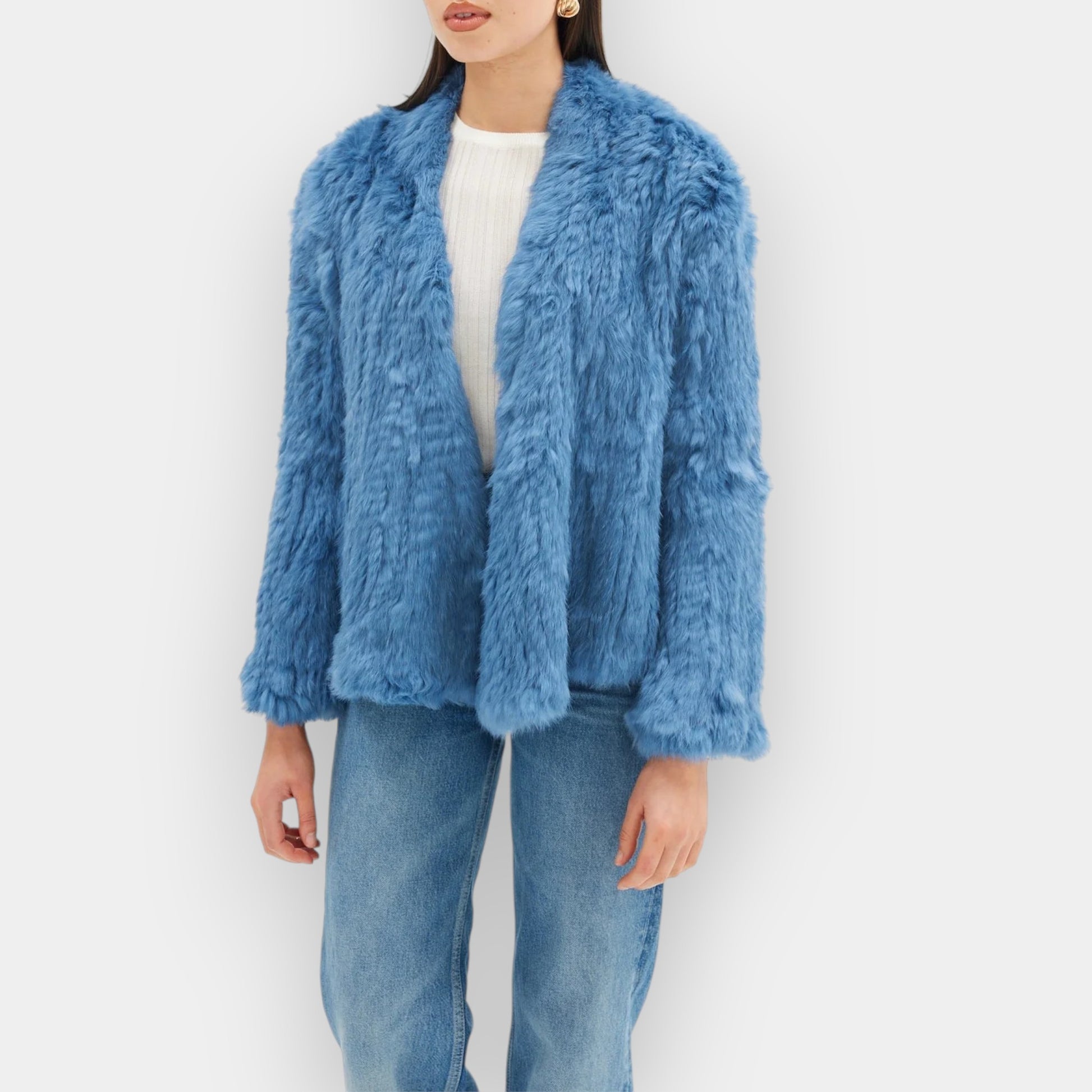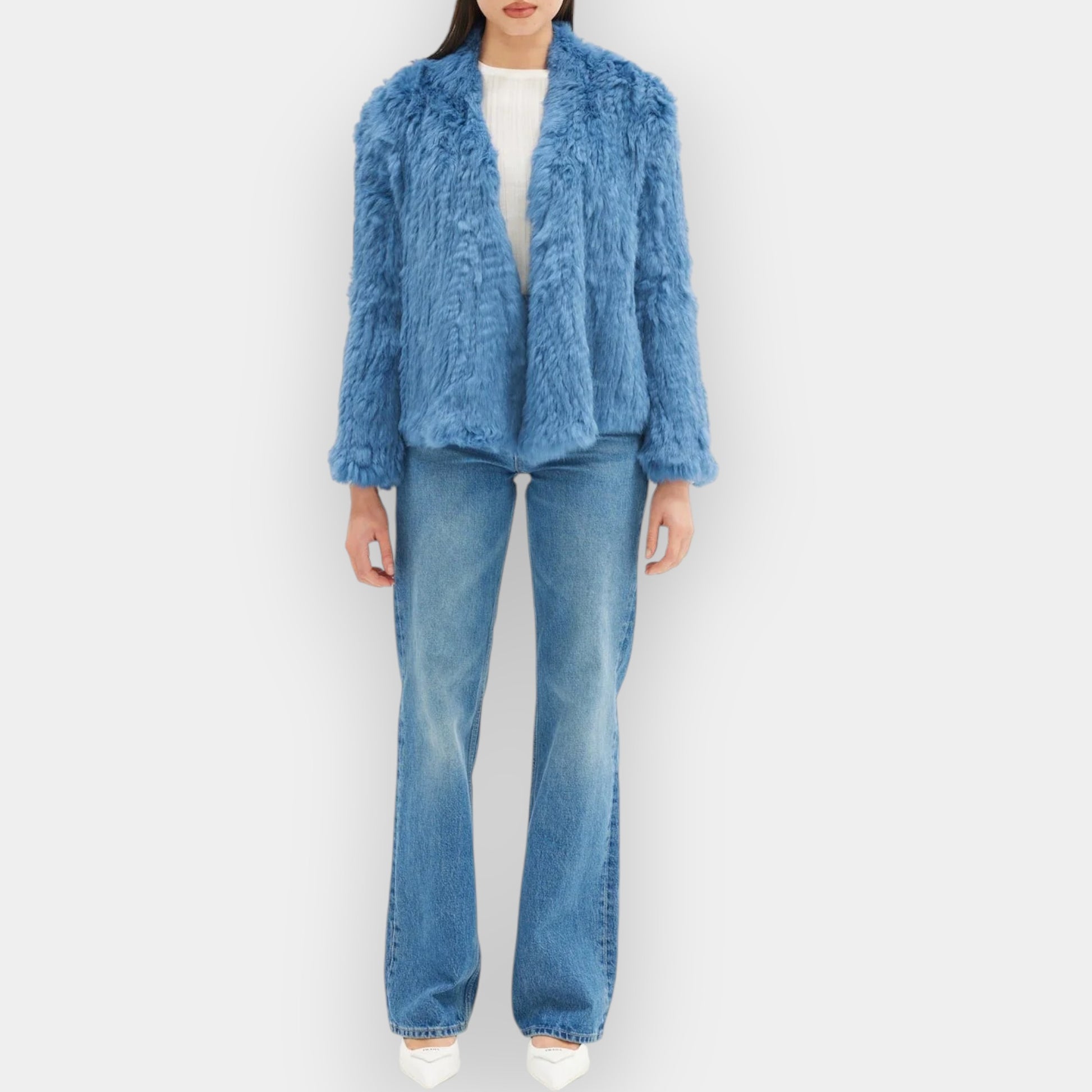 Details: Lightweight and luxurious, the Bubish ‘Valencia’ jacket is crafted from 100% rabbit fur in a soft denim blue tone. With its open waterfall front and waist-length cut, this flattering, throw-on-and-go piece works beautifully for both casual and dressy looks.