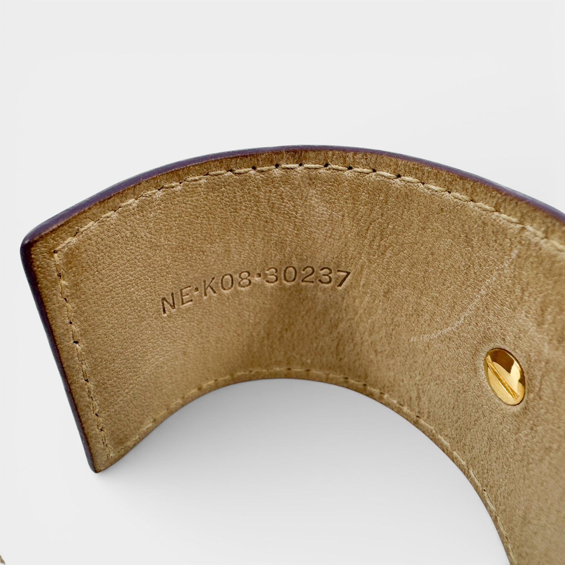 Composition: Leather with gold-tone brass hardware. Includes the original box.