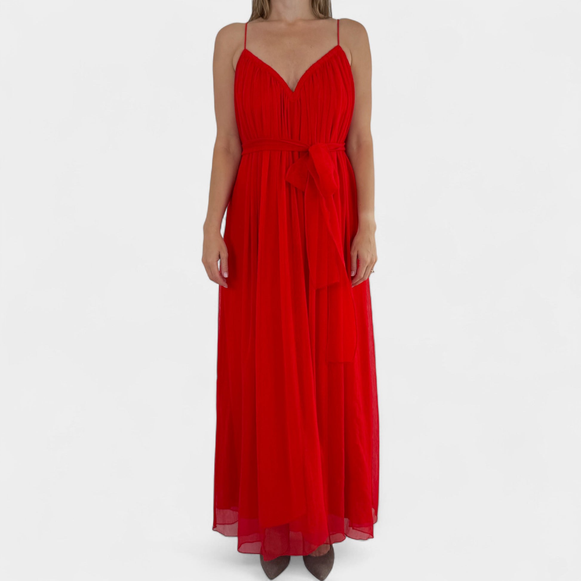 Camilla & Marc Bright Red Plunge Neck Belted Zando Dress AU10 ~ Medium