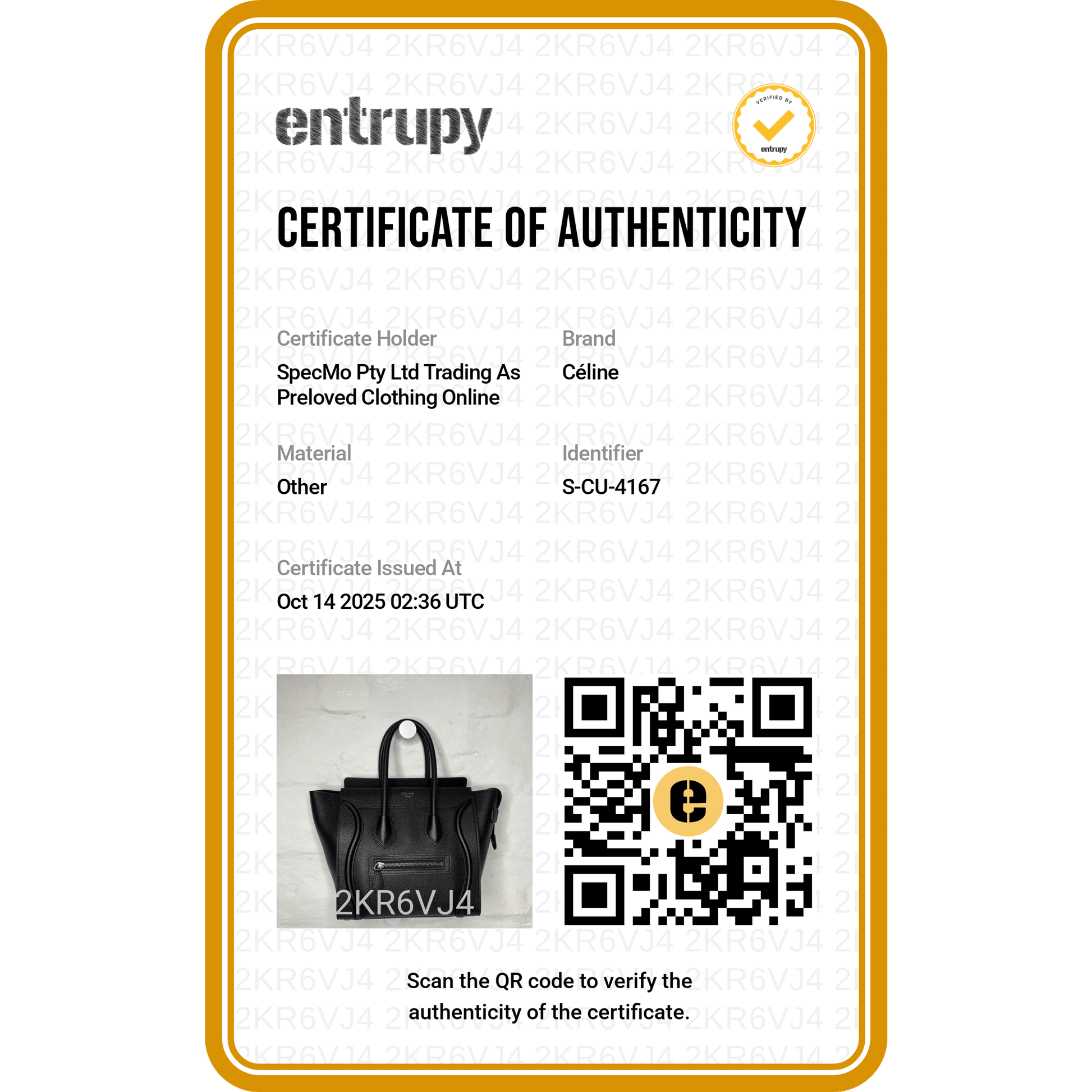 We place the utmost importance on authenticity. We do not sell imitation handbags and make every effort to obtain certificates of guarantee and original receipts for all our luxury items. If we do not receive the original receipt or certificate, we conduct a rigorous authenticity check. Learn more.