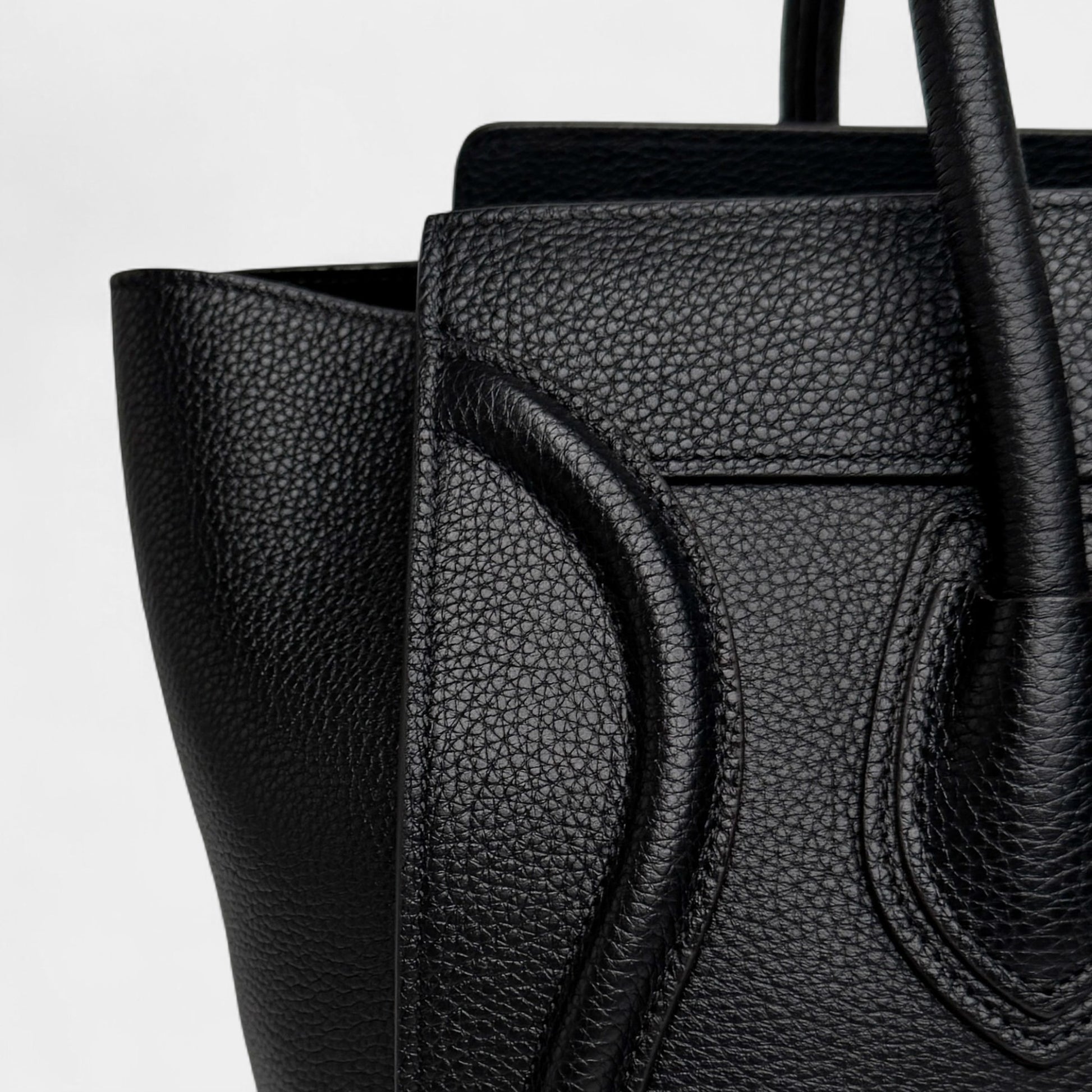 Celine Paris Black Grainy Leather Mini (Medium) Luggage Tote Bag