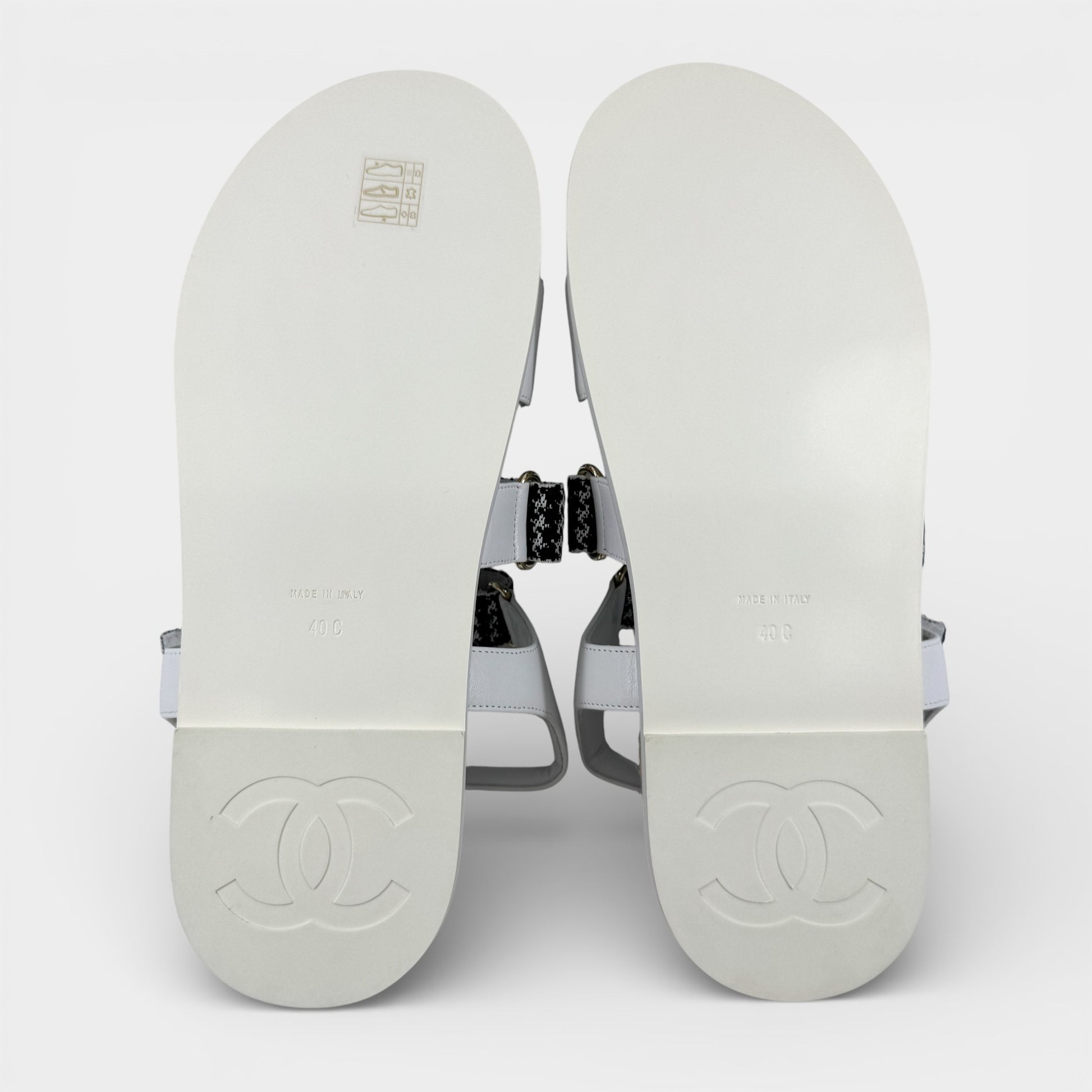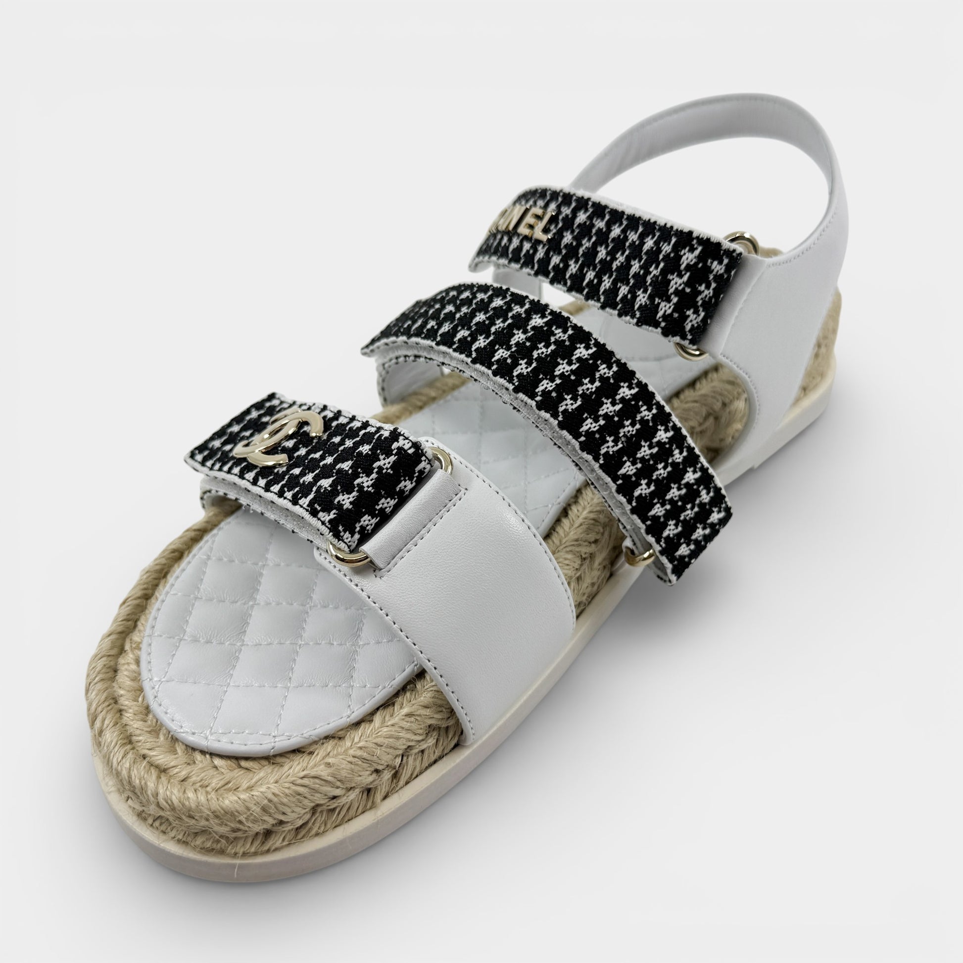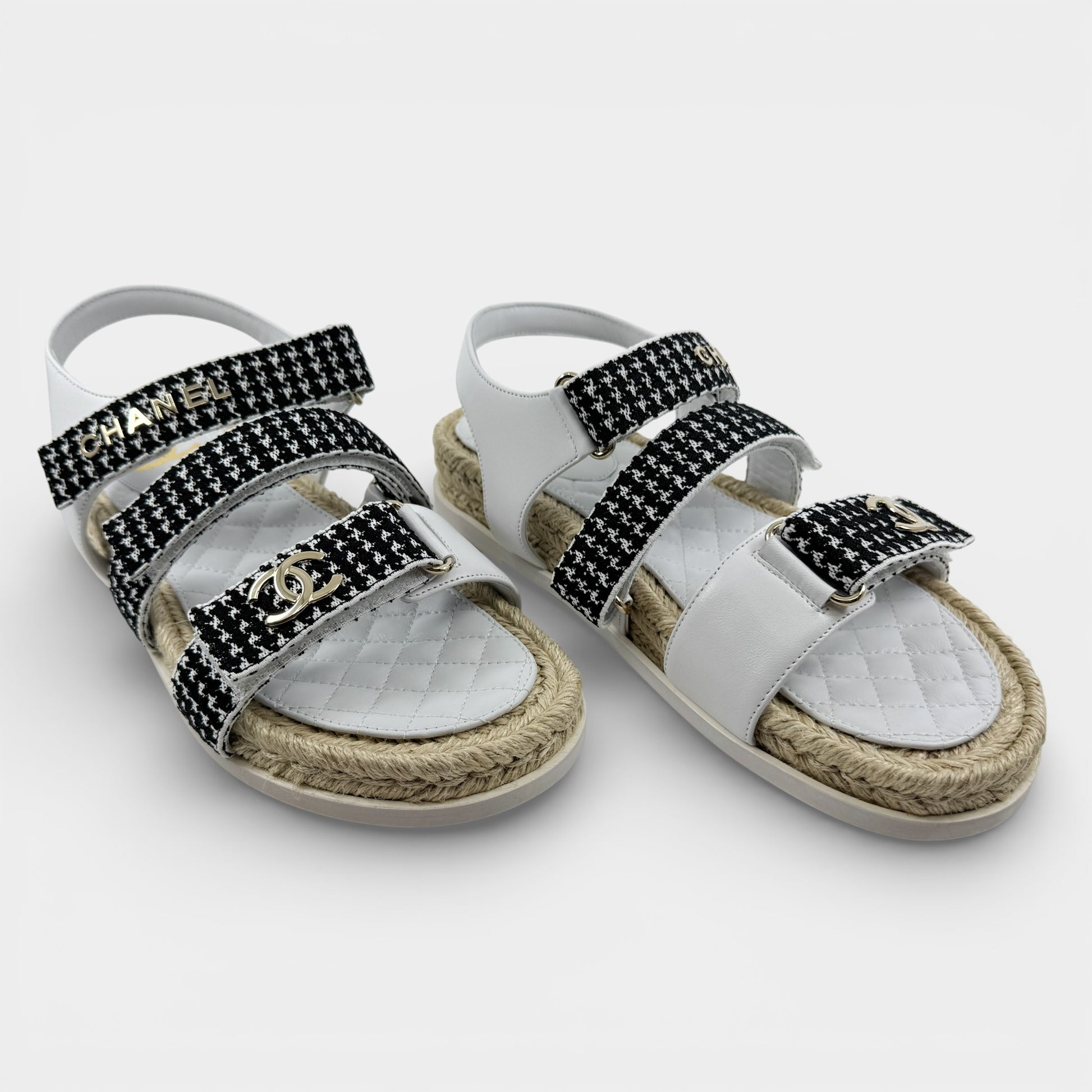 Chanel White Black Tweed Leather Espadrille Dad Sandals EU40 C ~ AU9