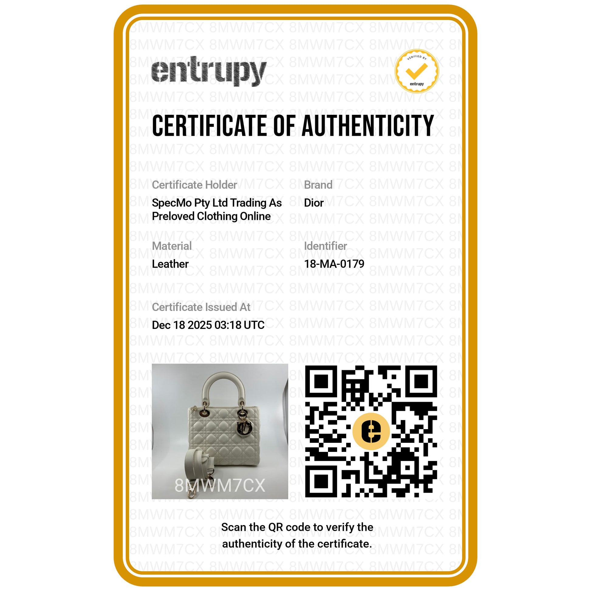 We place the utmost importance on authenticity. We do not sell imitation handbags and make every effort to obtain certificates of guarantee and original receipts for all our luxury items. If we do not receive the original receipt or certificate, we conduct a rigorous authenticity check. Learn more.