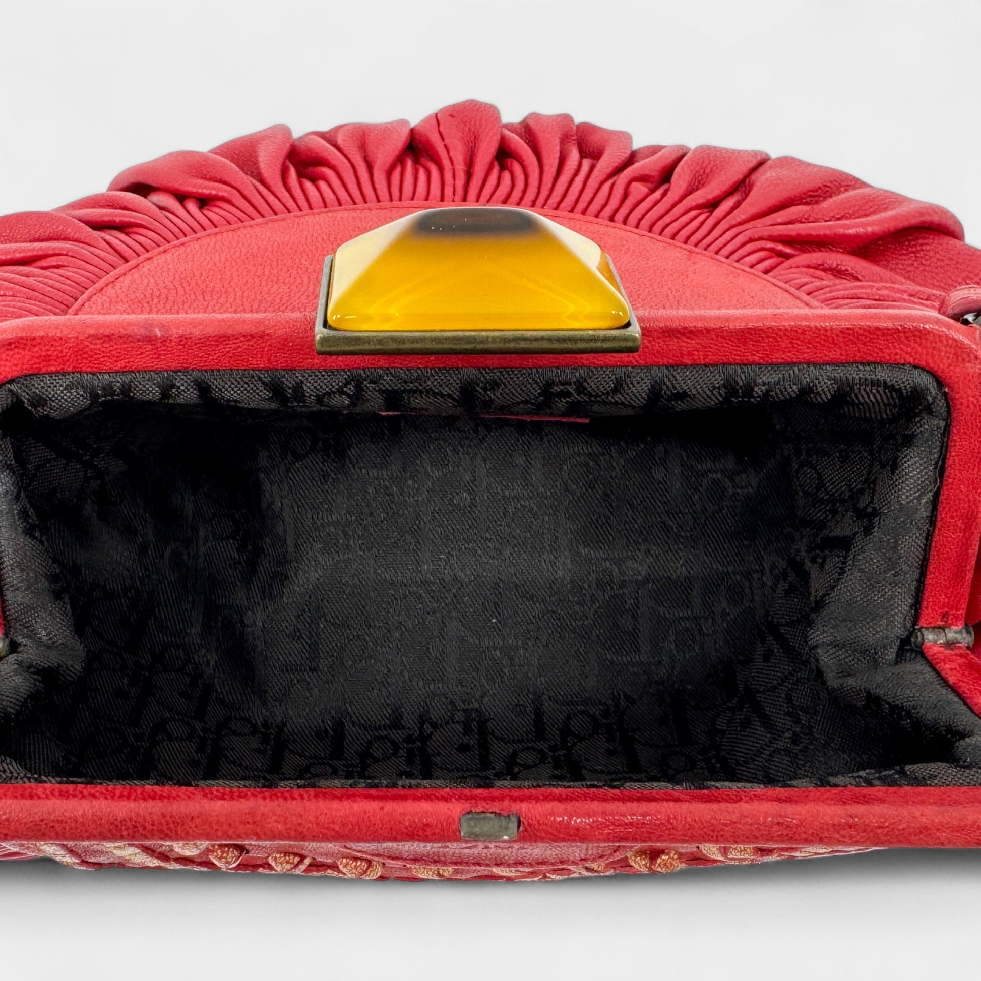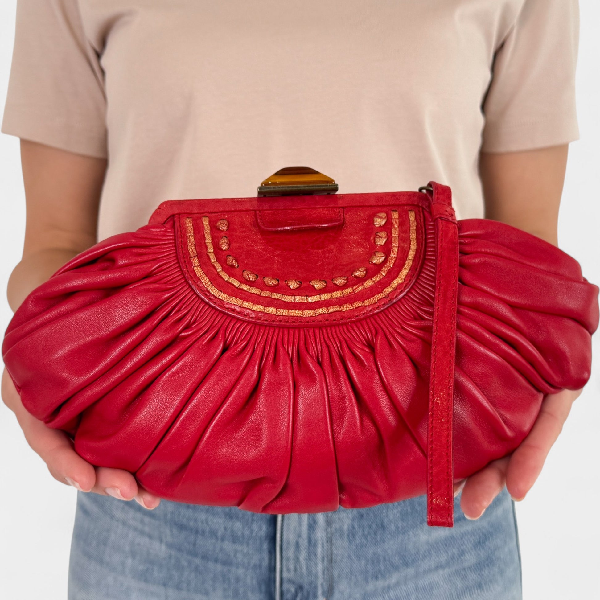 Christian Dior Vintage Red Pleated Leather Galliano Plissé Clutch Bag