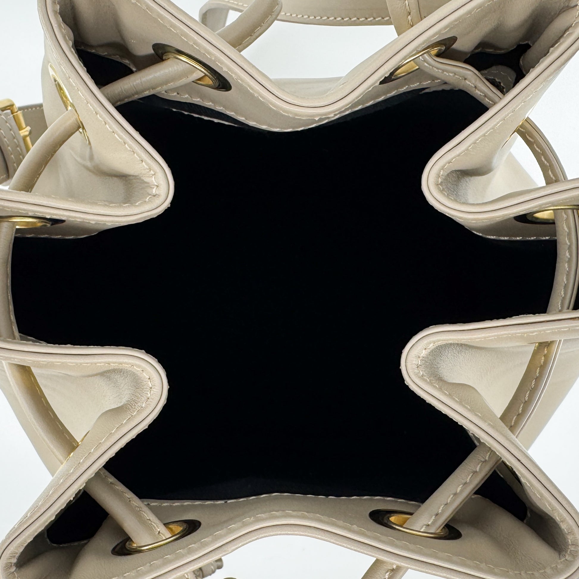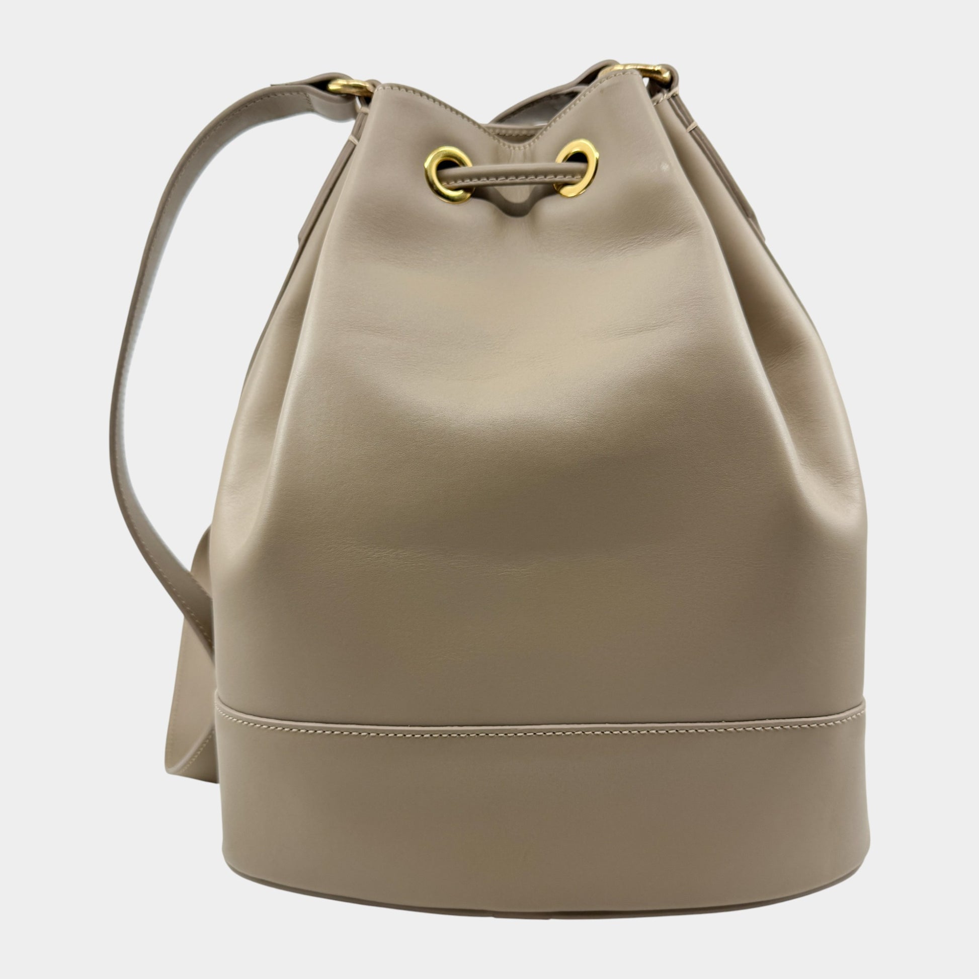 Edward Gilbert Beige Leather Drawstring Bucket Shoulder Bag