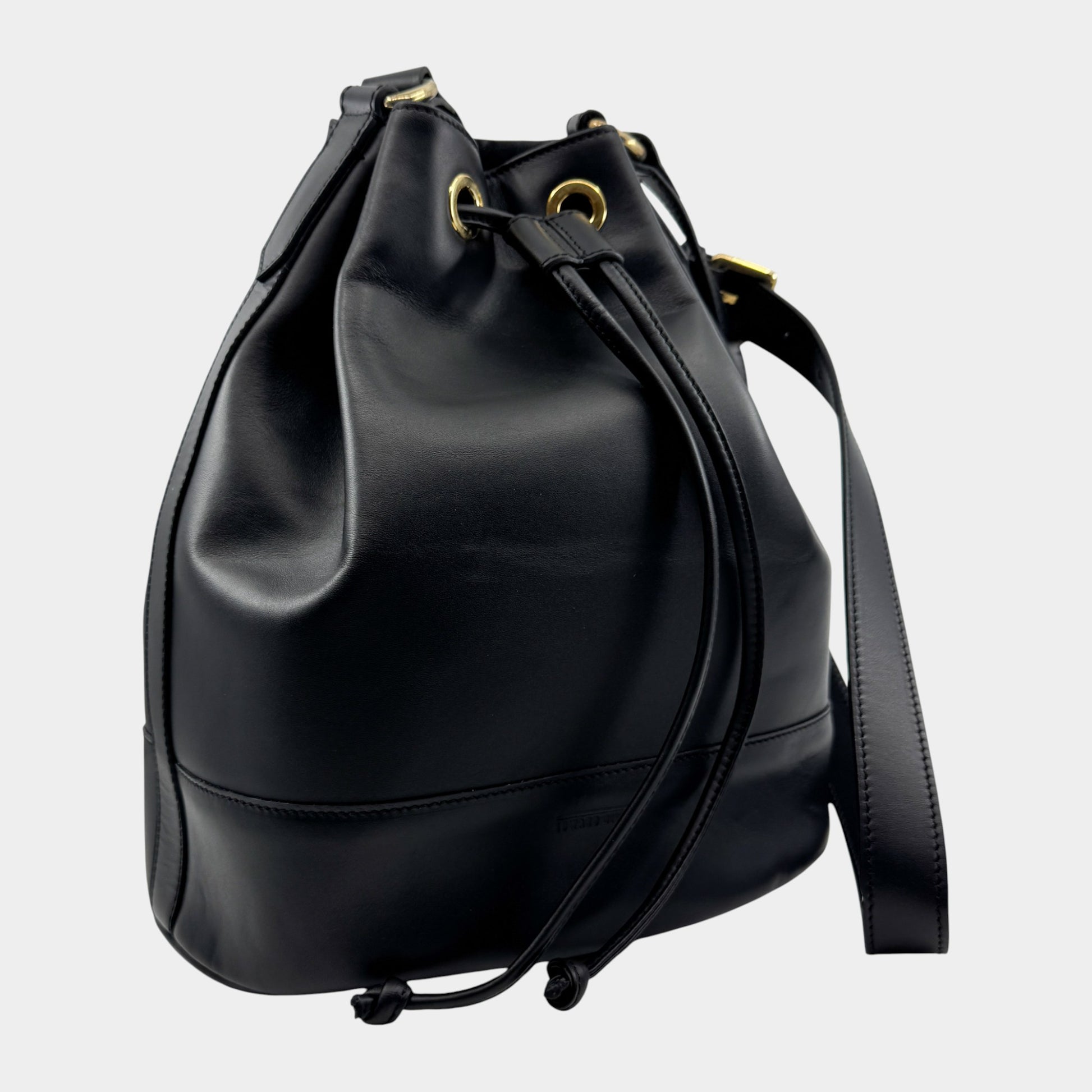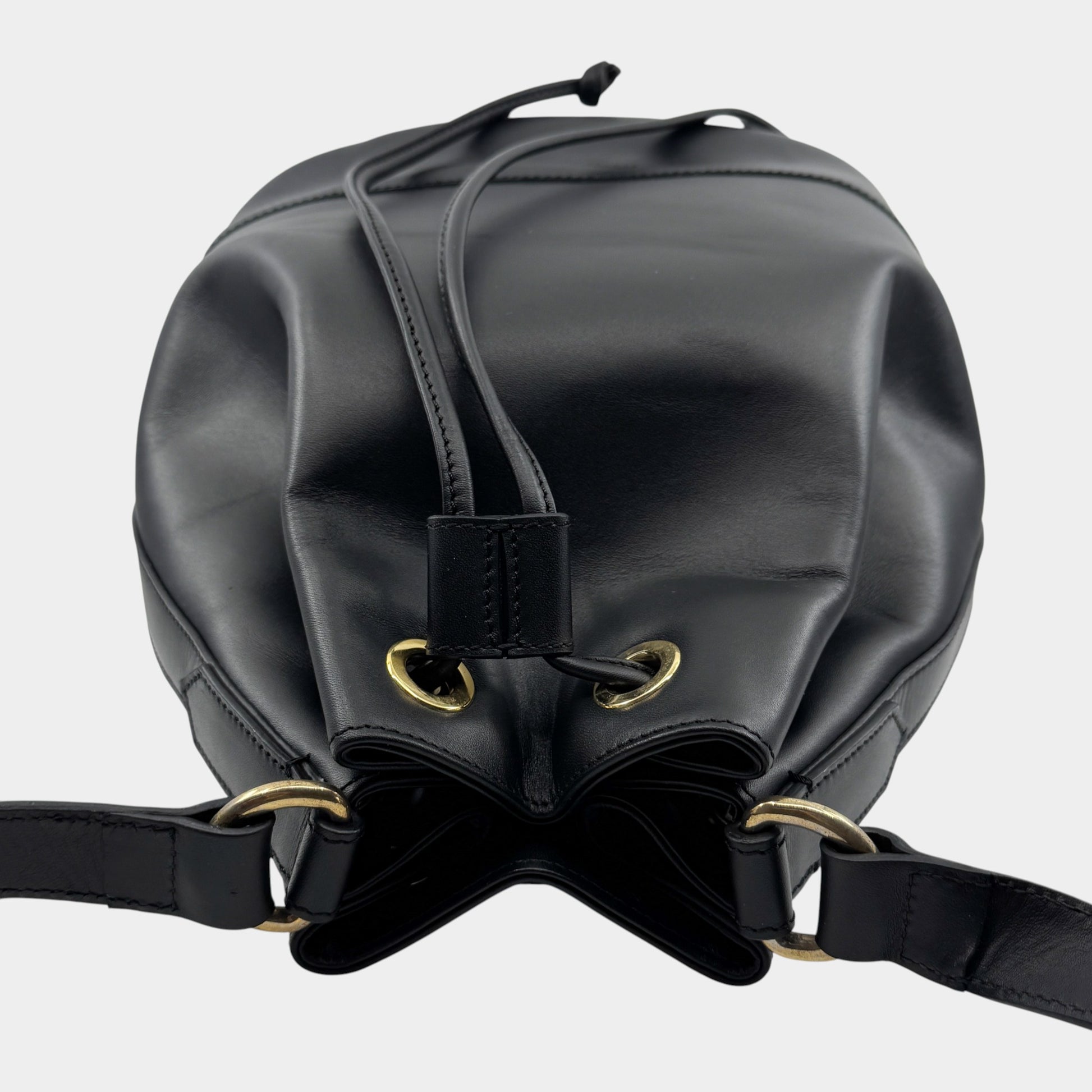 Edward Gilbert Black Leather Drawstring Bucket Shoulder Bag