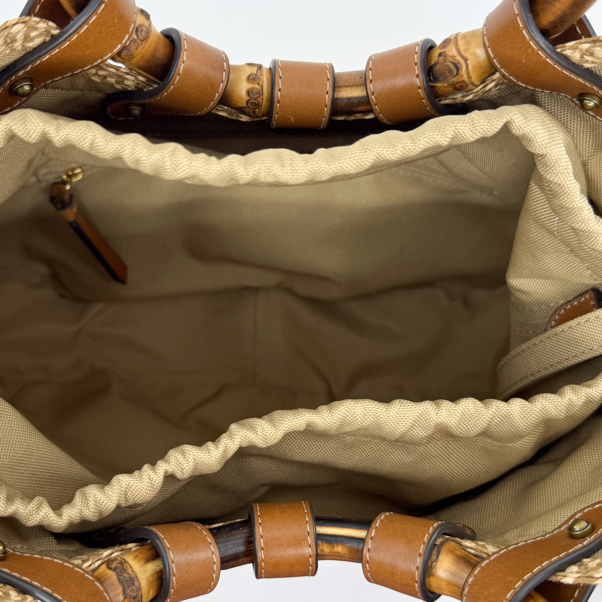 Eric Javits NY Beige Brown Bamboo Handle My Way Tote Bag
