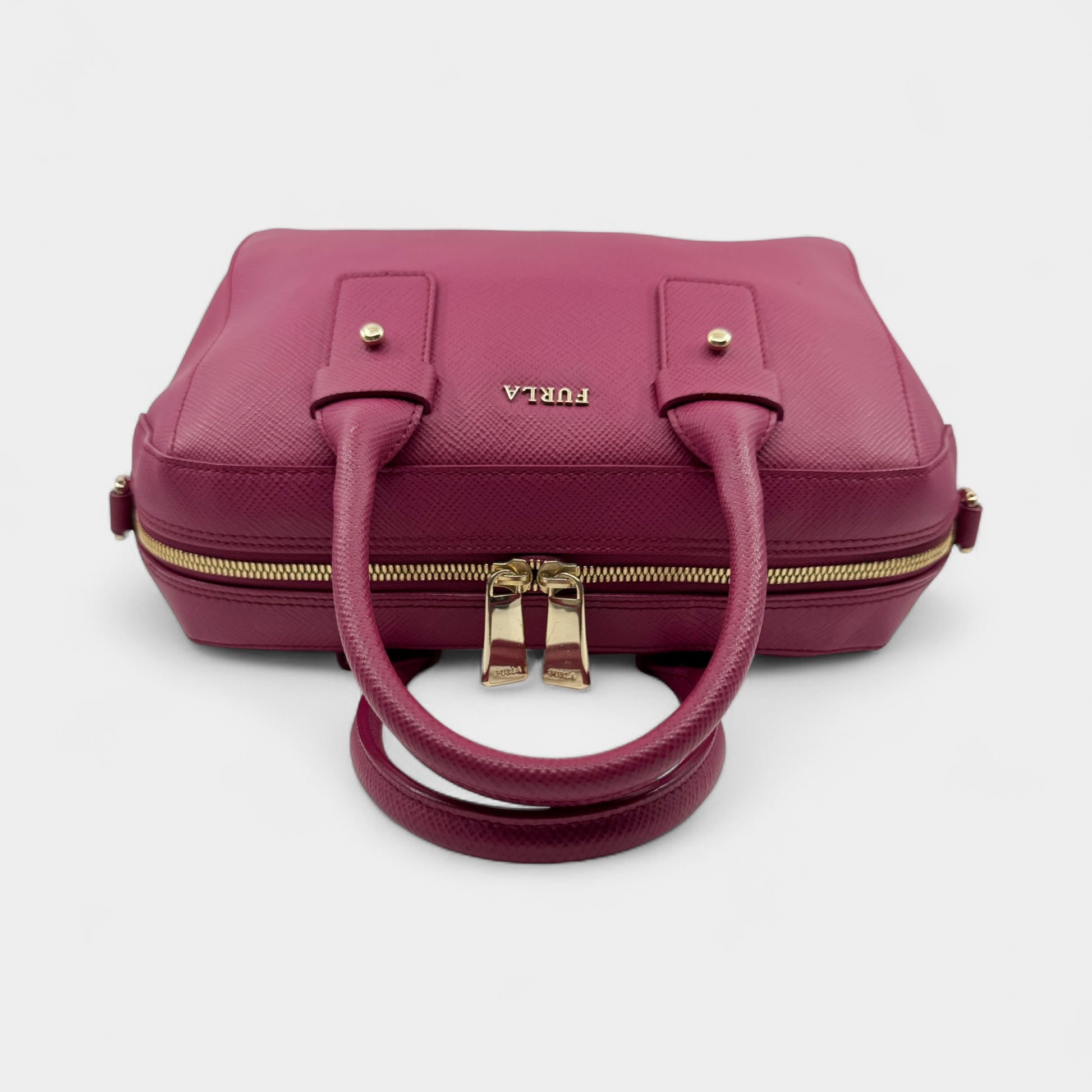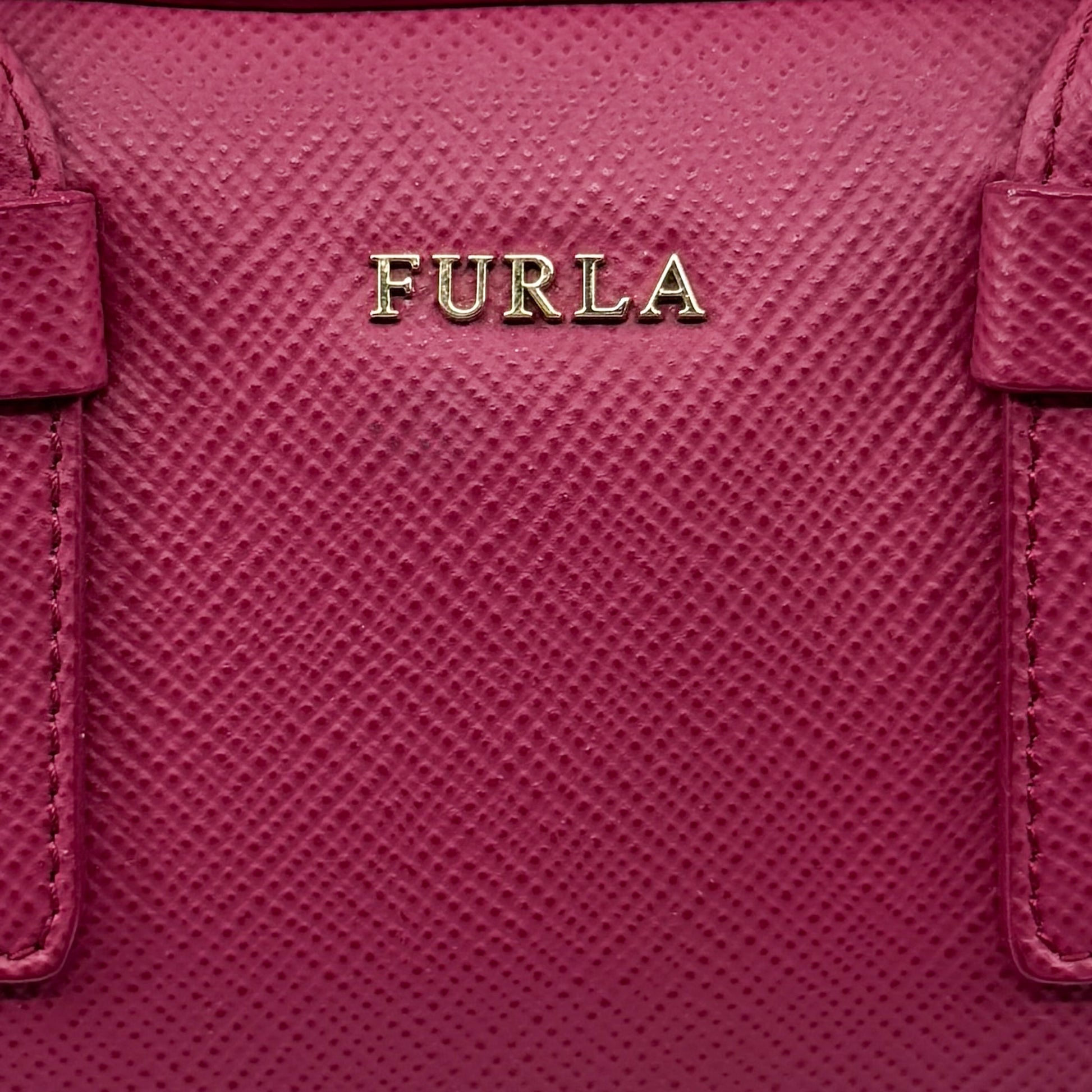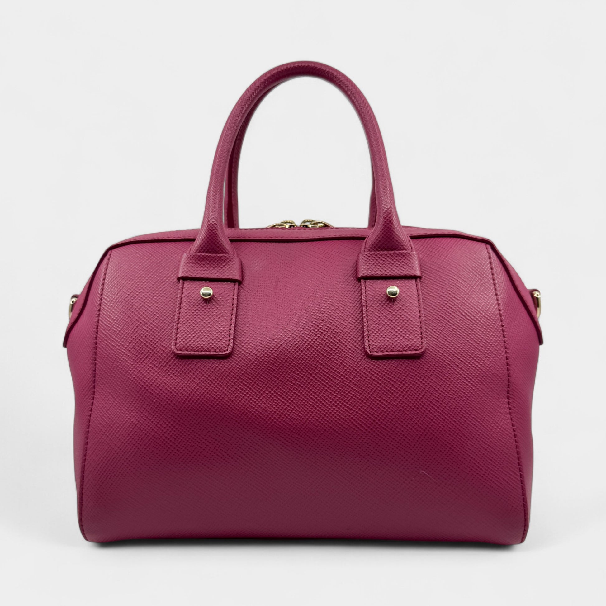 Furla Fuschia Pink Saffiano Leather Allegra Bowling Handbag