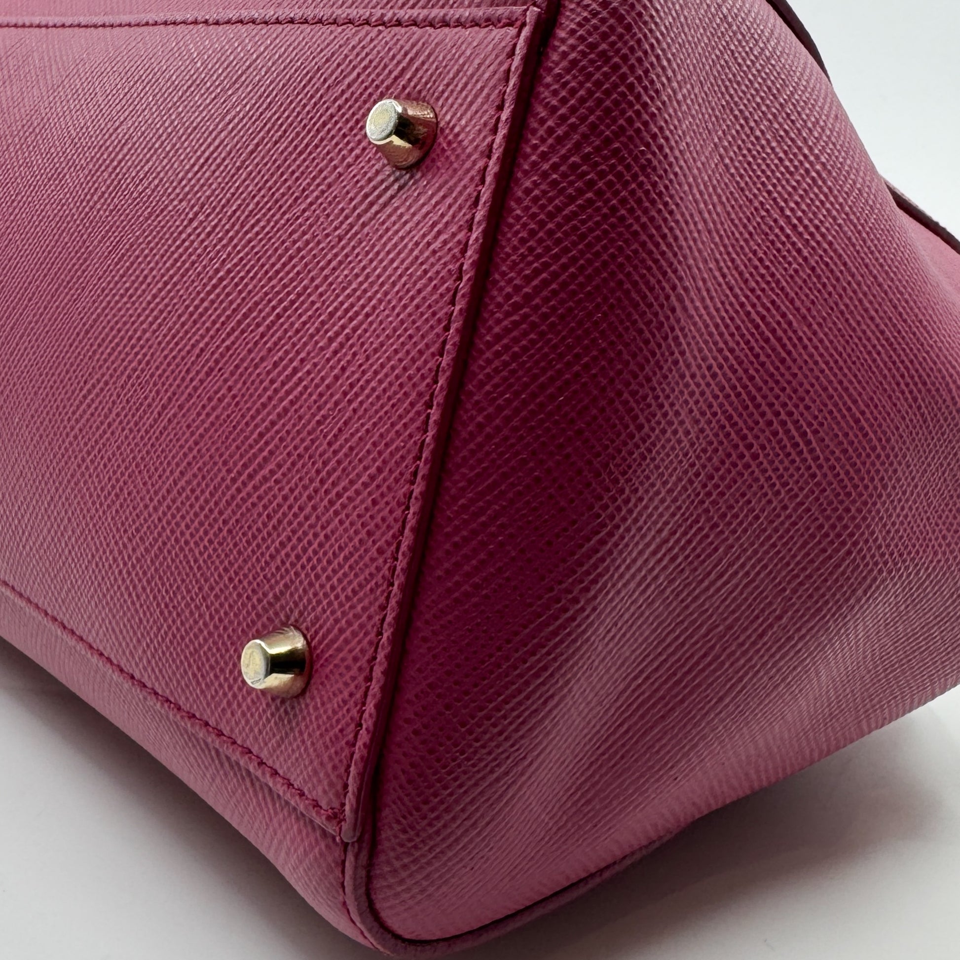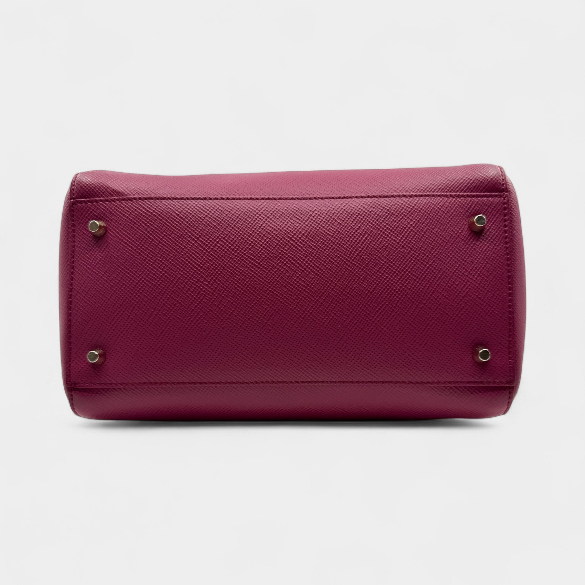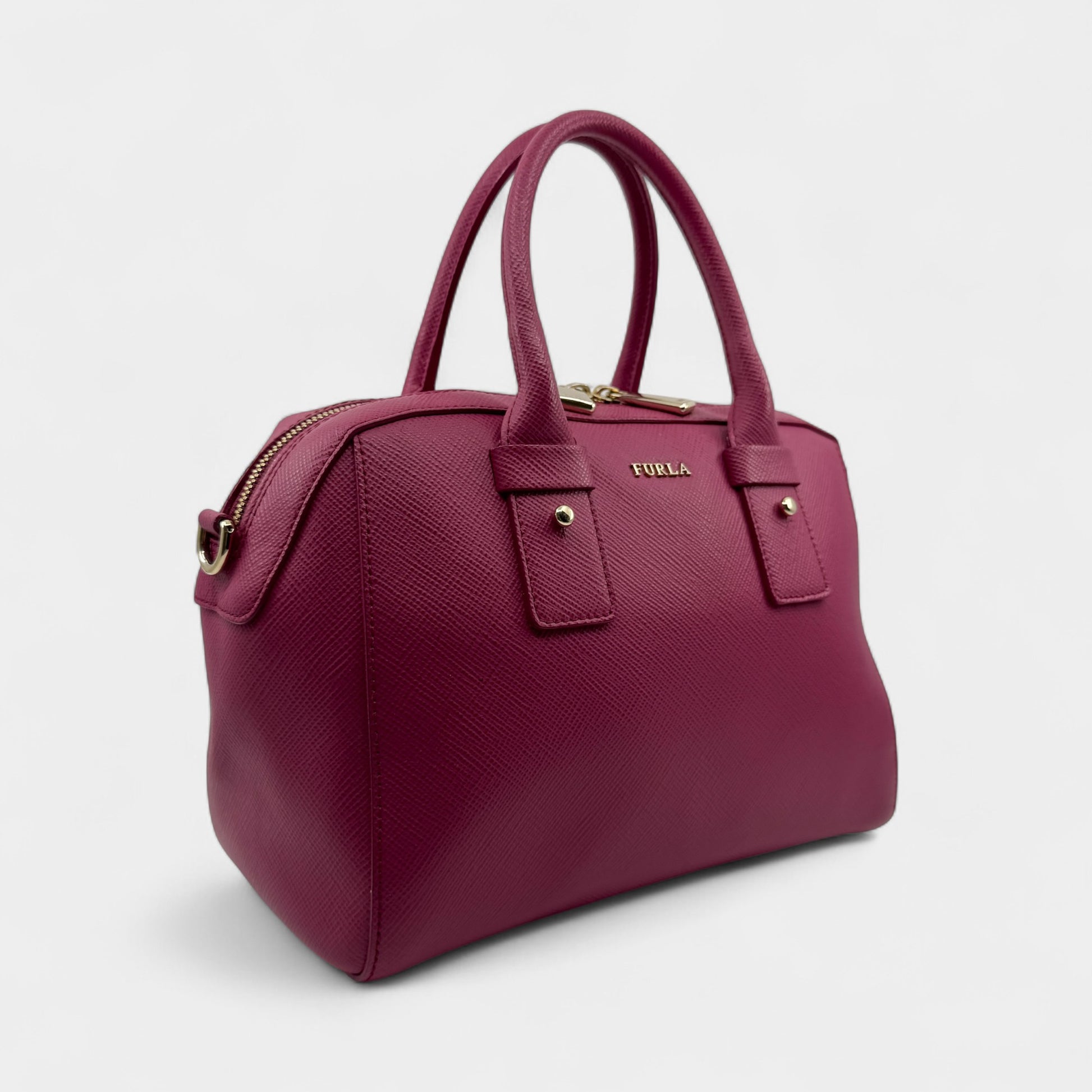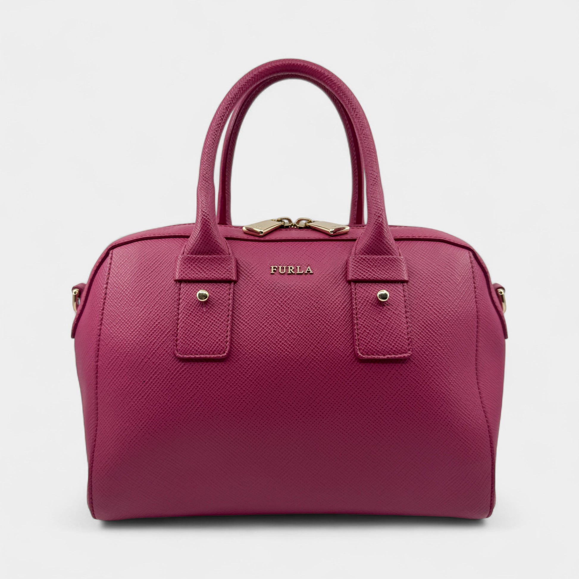 Furla Fuschia Pink Saffiano Leather Allegra Bowling Handbag
