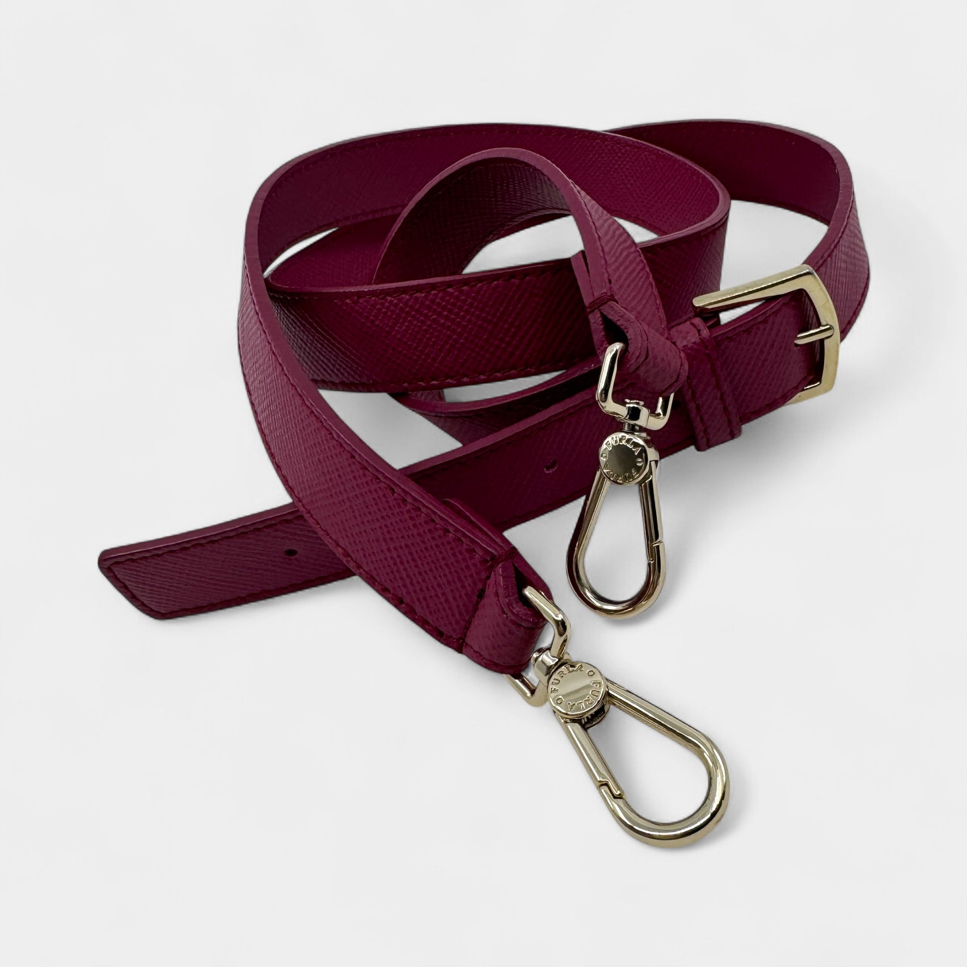 Details: This Furla Allegra handbag in dark fuchsia pink Saffiano leather features silvery gold-tone hardware. The classic bowling bag design includes a double padded handle, double zip-top closure, and an adjustable, removable shoulder strap with a drop of up to 60 cm. Inside, the textile-lined interior offers a zip pocket and a slip pocket for secure organisation. Please note, a dust bag is not included.