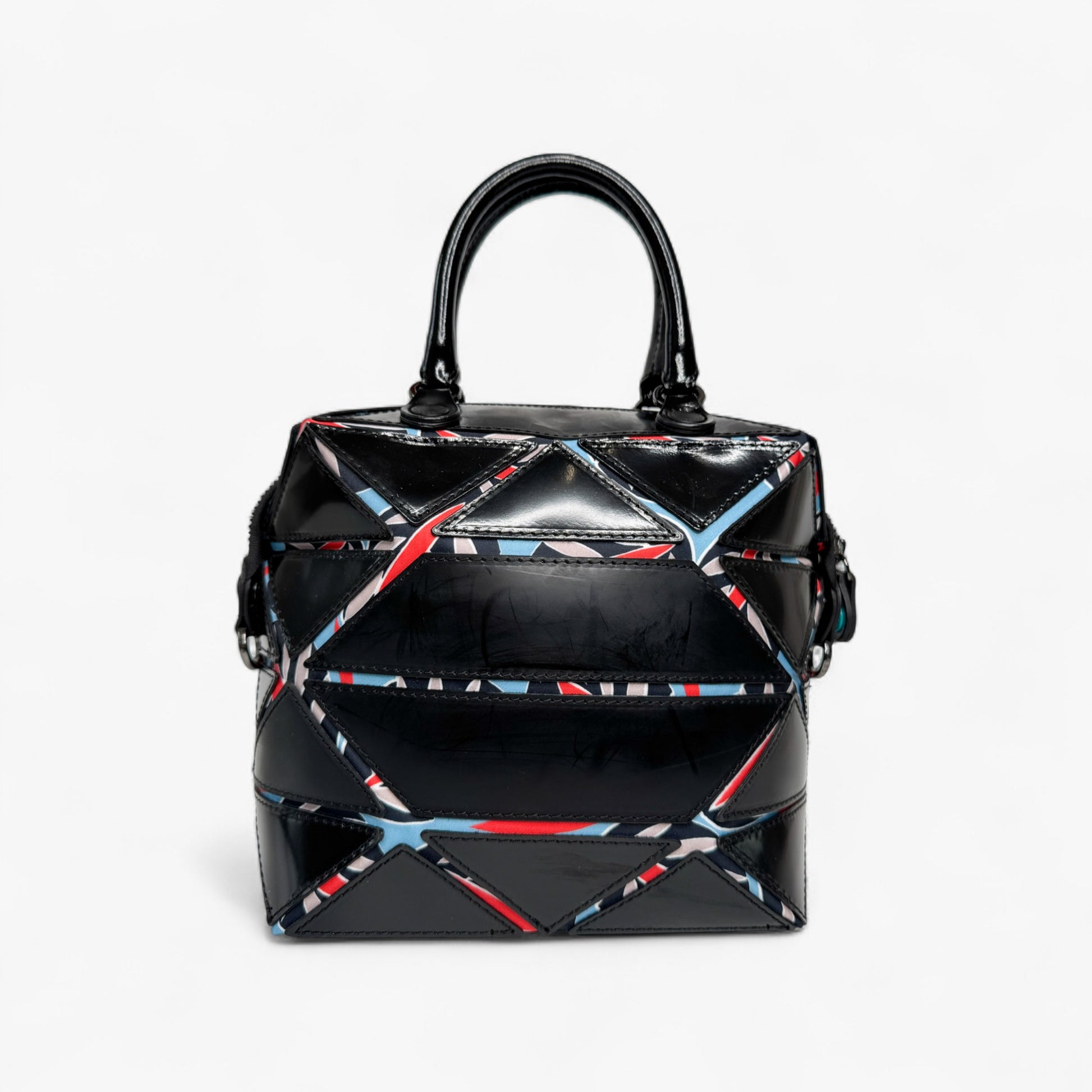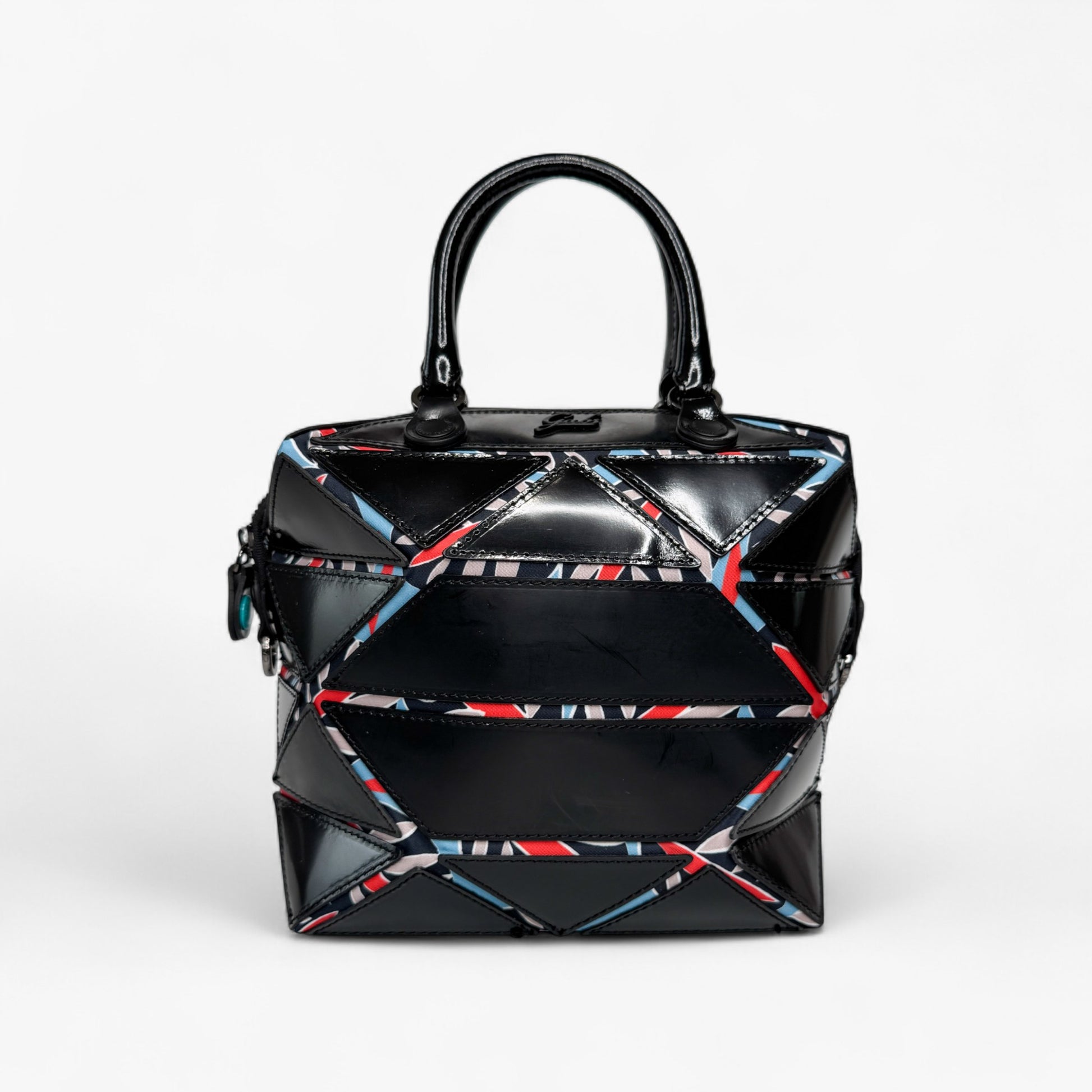 GABS Italy Black Leather & Textile Top Handle Tote Shoulder Bag