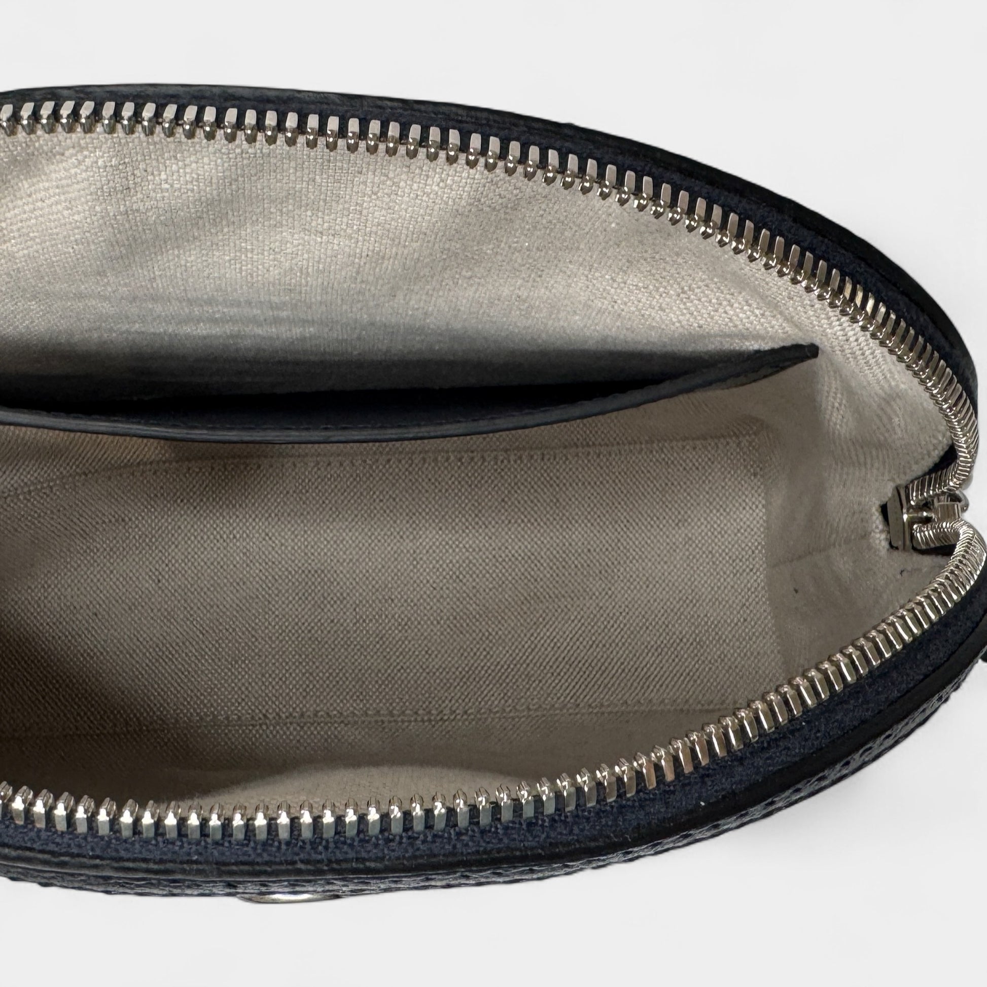 Details: Crafted in Italy from signature GG Supreme coated canvas with navy grained leather trim, this classic Gucci Ophidia bag features the iconic red and navy web stripe, silver-tone GG hardware, and double zip-top closure with GG charm pulls. The adjustable leather strap allows for crossbody or shoulder wear. The interior includes a beige cotton-linen lining with one patch pocket.