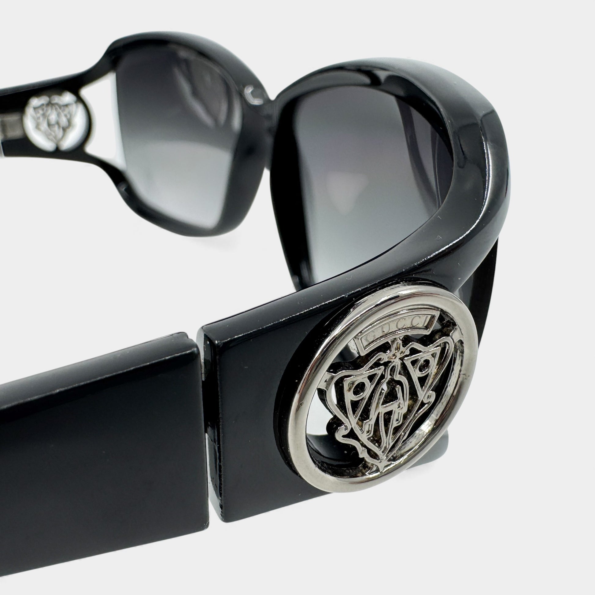 Details: Gucci Vintage Black Rectangle Sunglasses (Style GG3059/S). Made in Italy. Sleek rectangular frames in glossy black acetate with dark gradient lenses. Subtle Gucci logo detailing on the temples. Timeless and versatile design suitable for everyday wear.