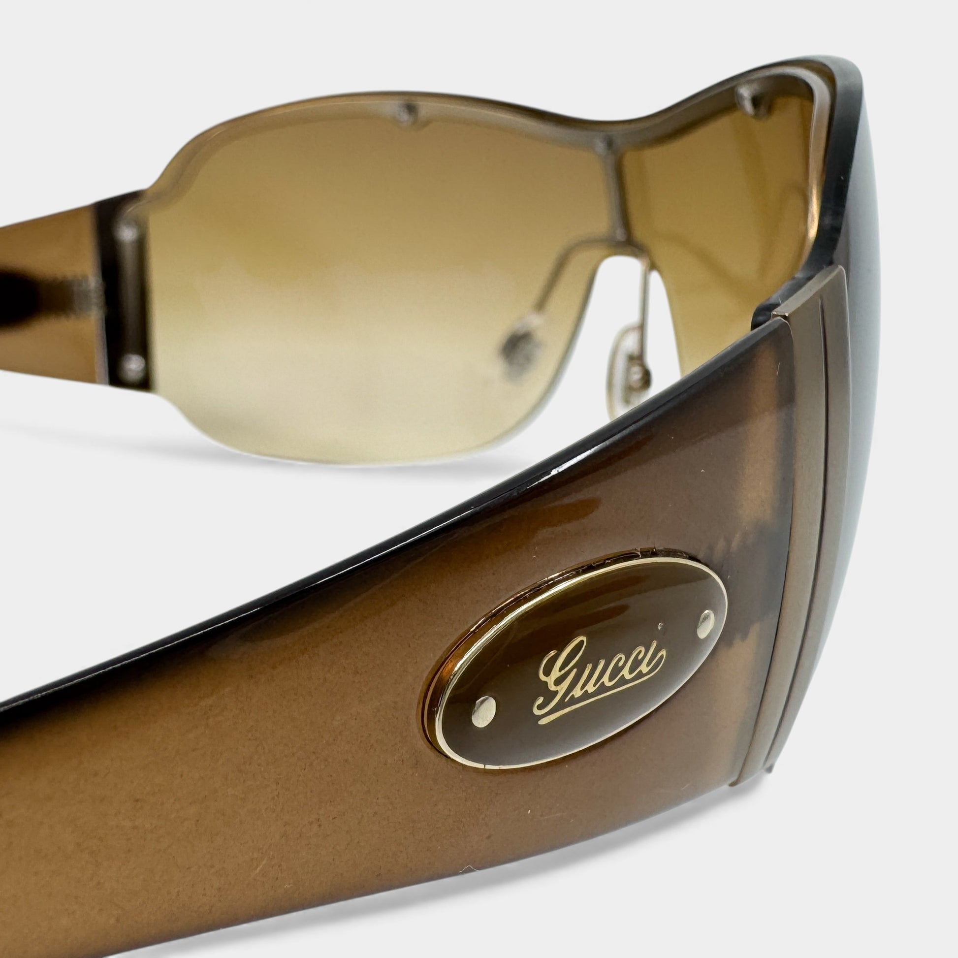 Gucci Vintage Brown Hidden Frame Shield Sunglasses GG1855/S