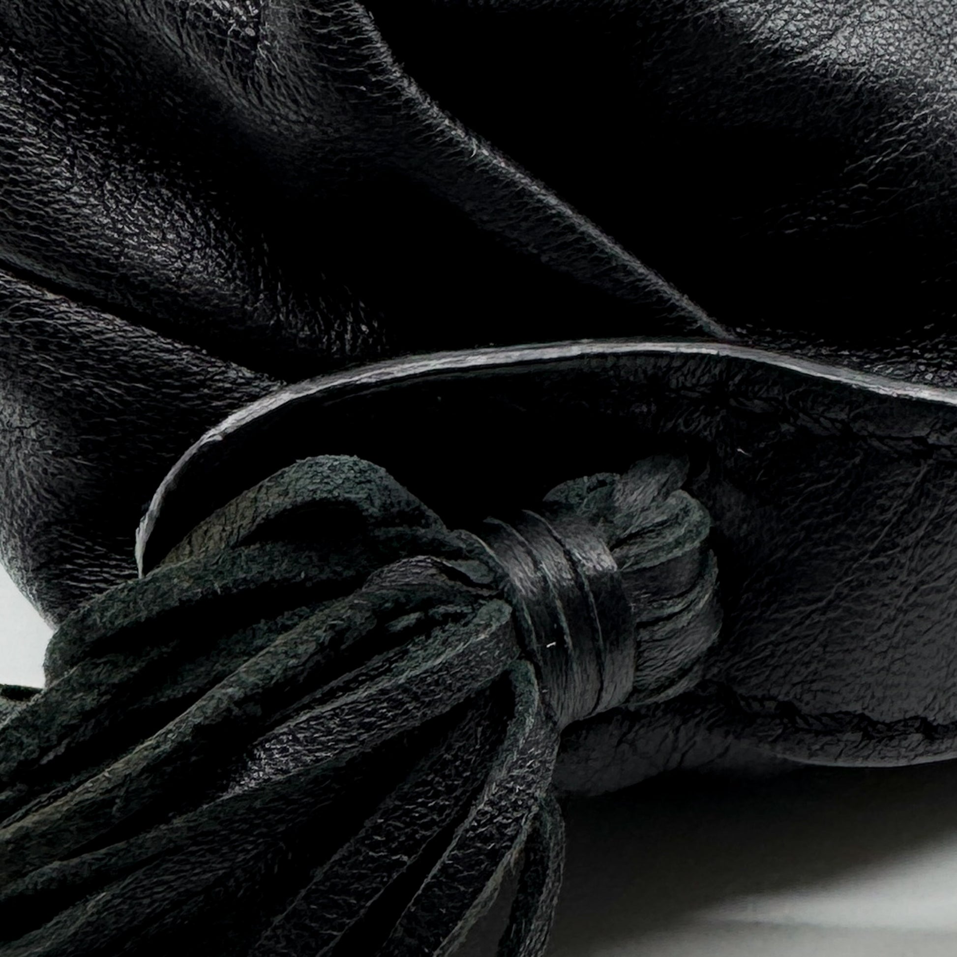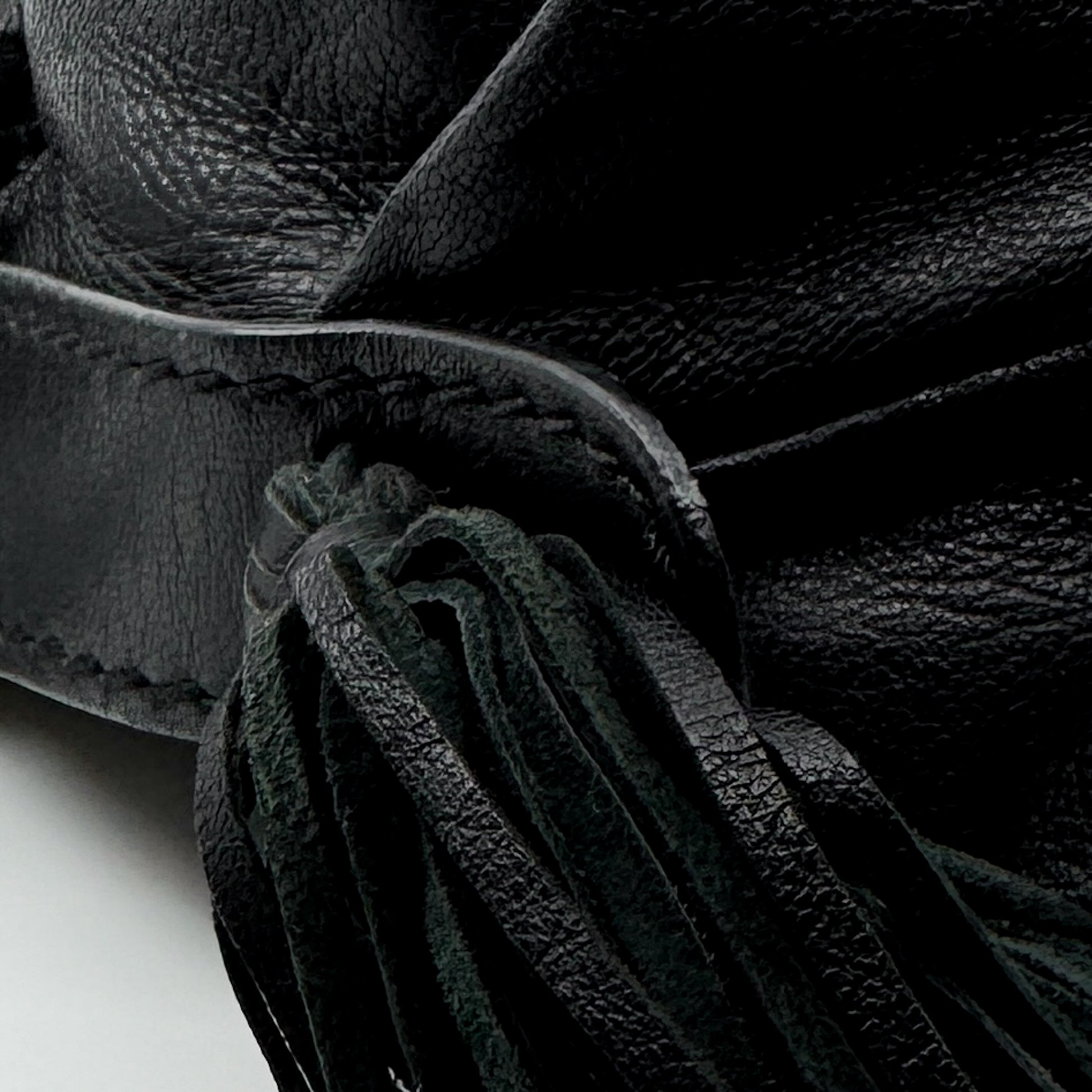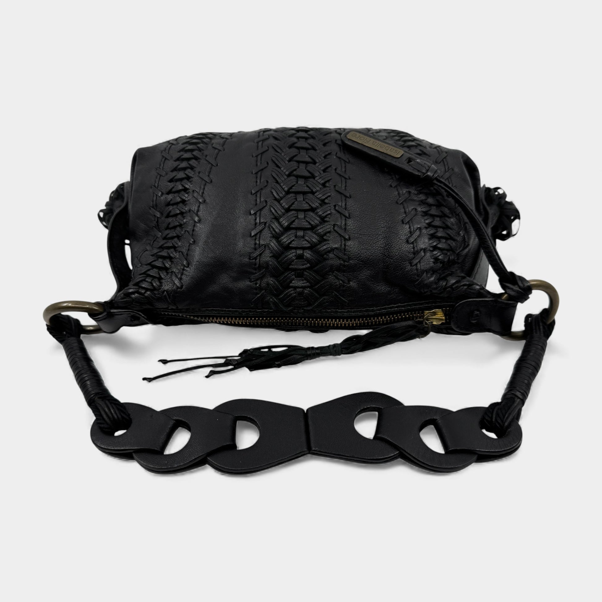 Isabella Fiore Black Woven Leather Tassel Boho Shoulder Bag