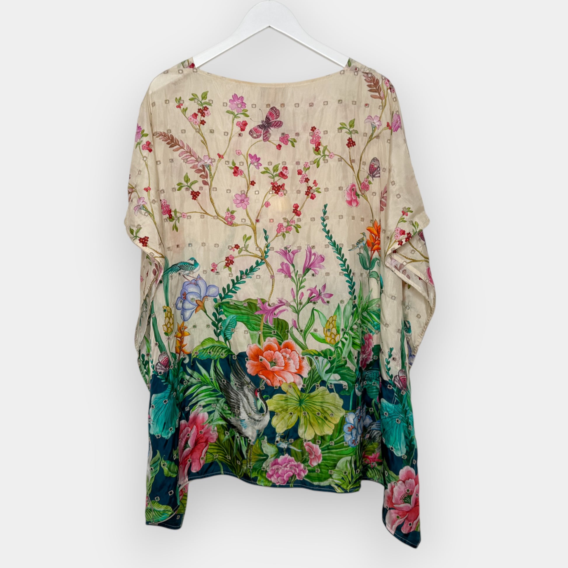 Johnny Was Multicolour Pribasa Eyelet Silk Poncho Tunic Top X-Large [NEW]