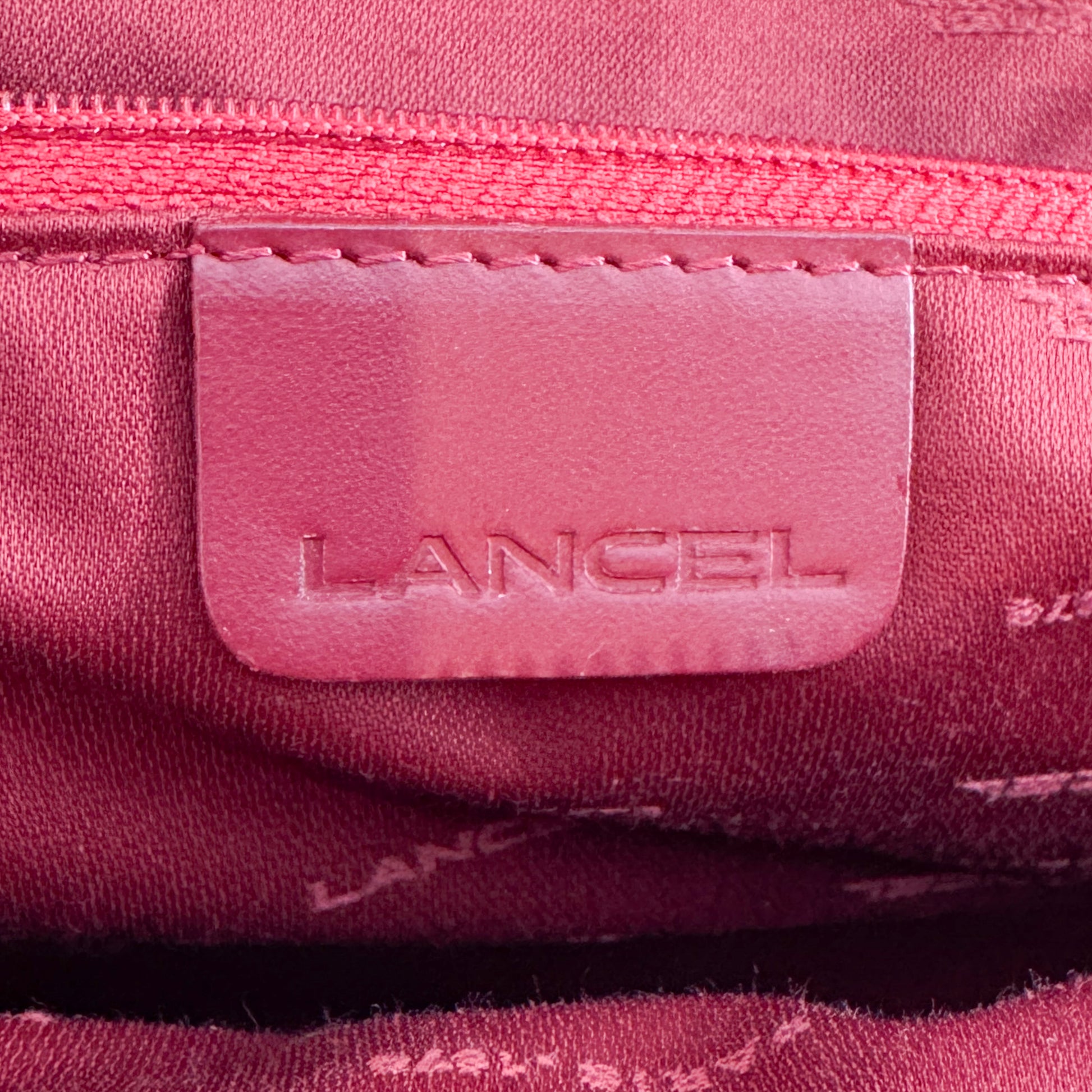 Lancel Paris Canvas & Red Leather Top Handle Bag