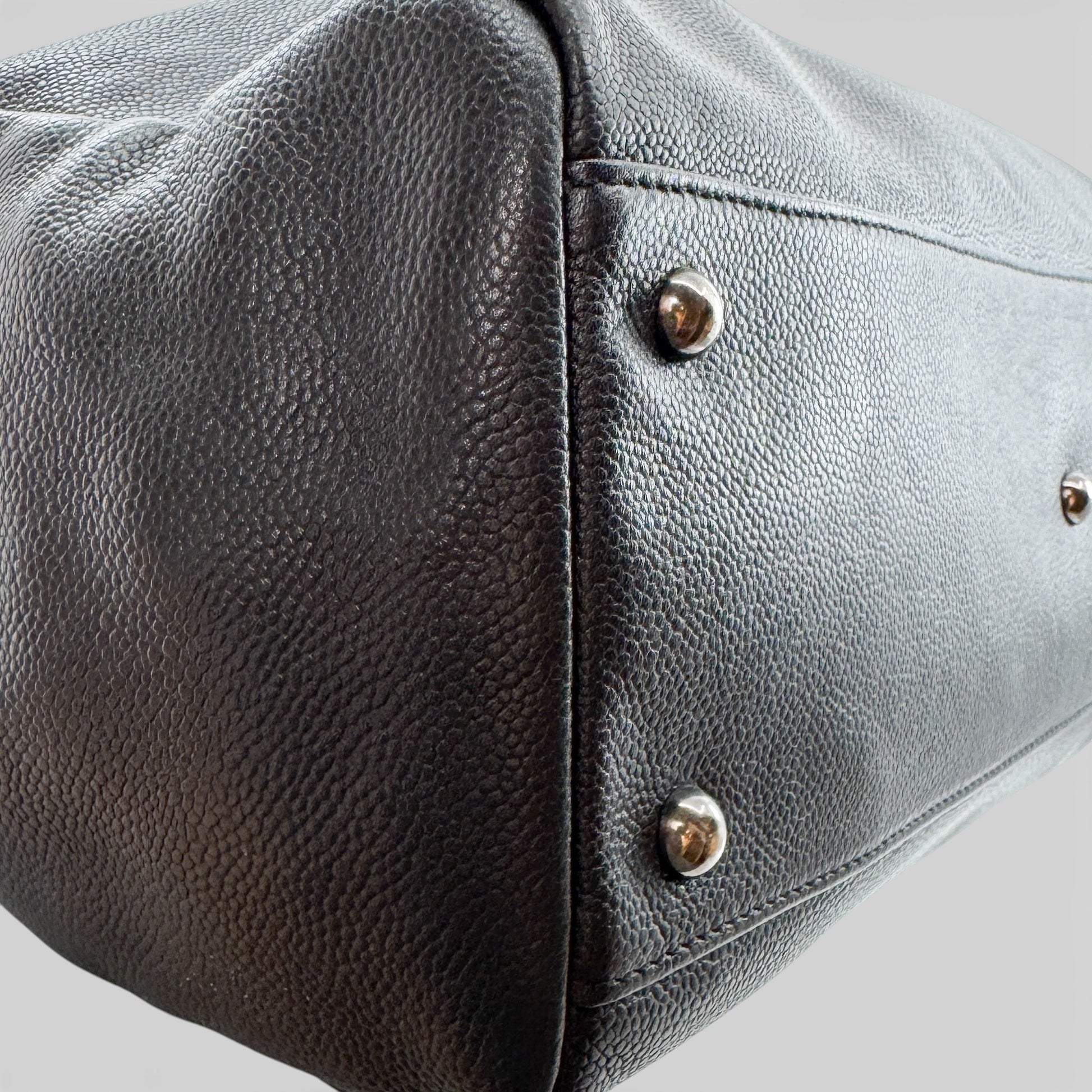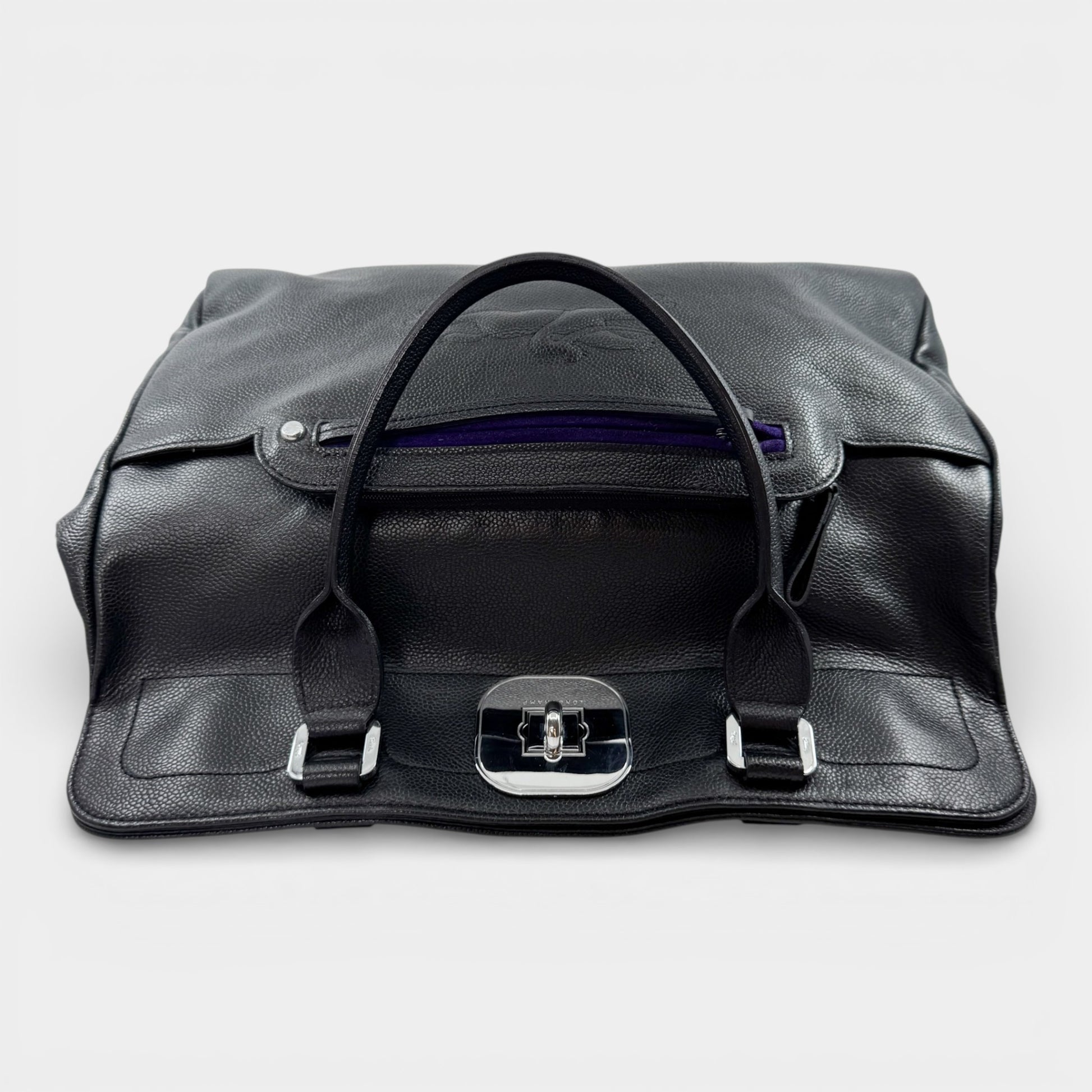 Longchamp Black Fine Grain Leather Gatsby Tote Bag