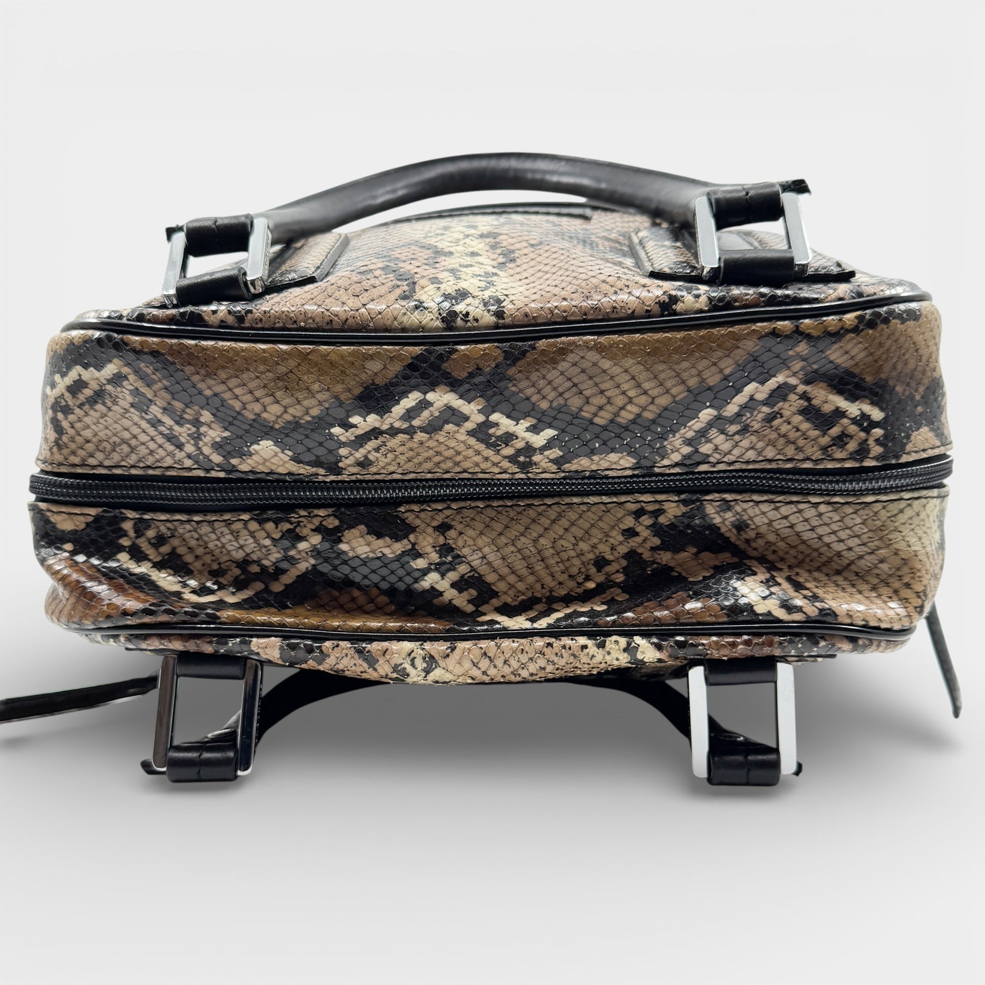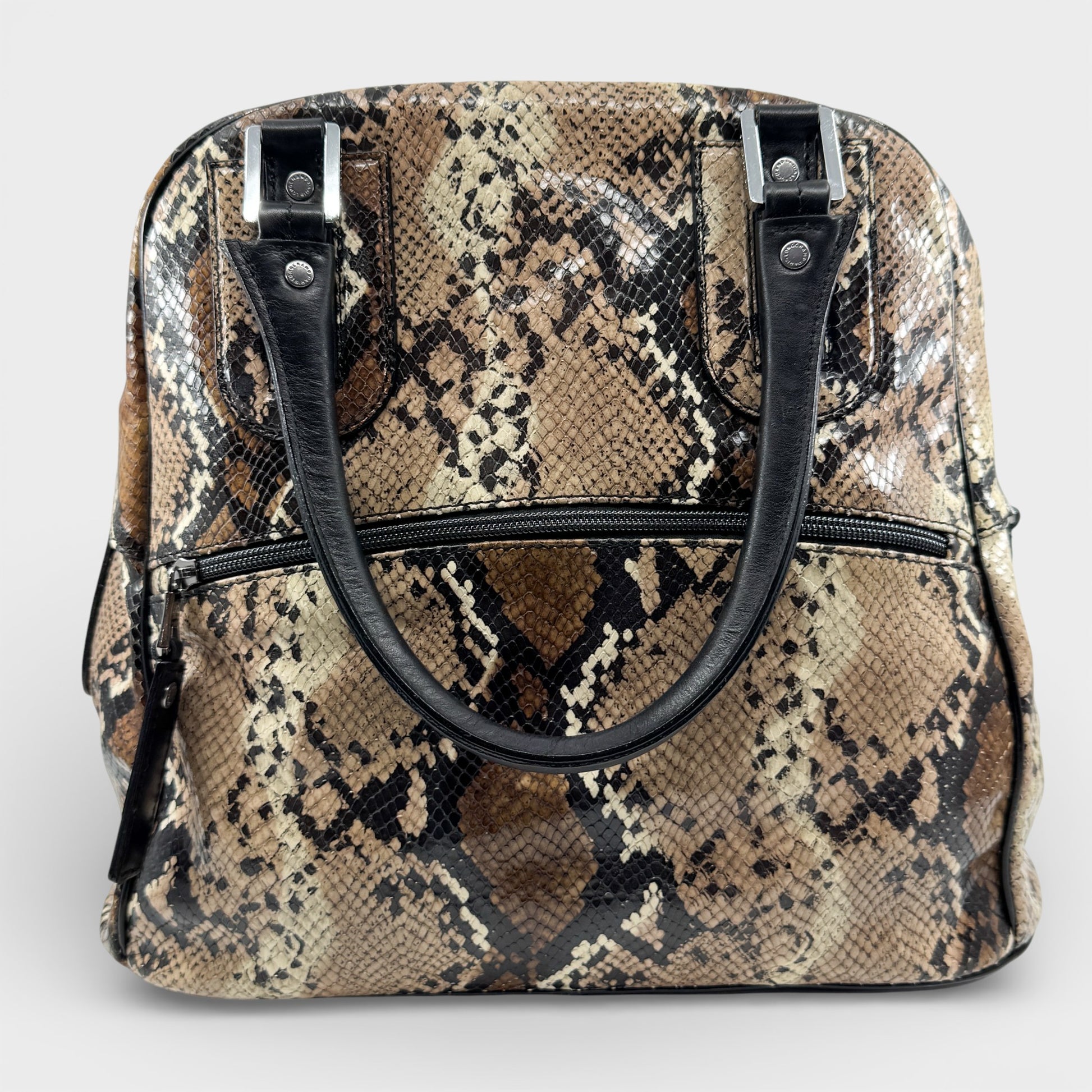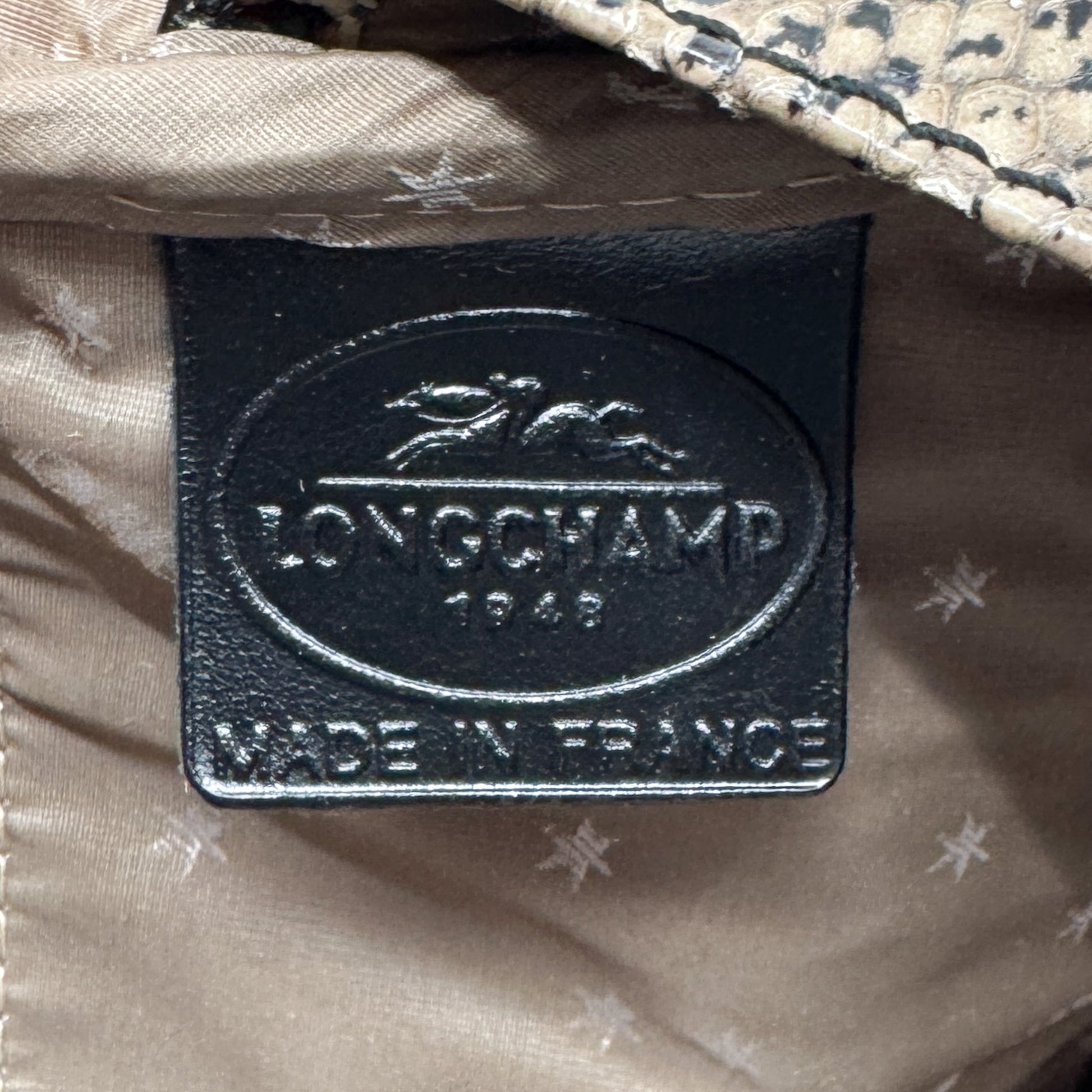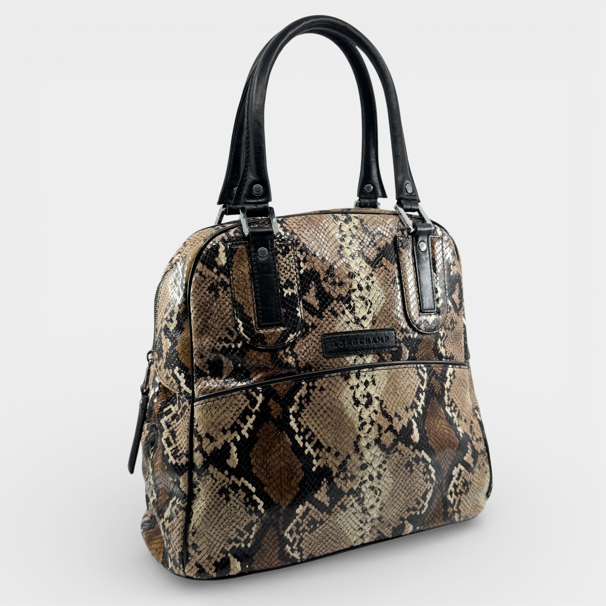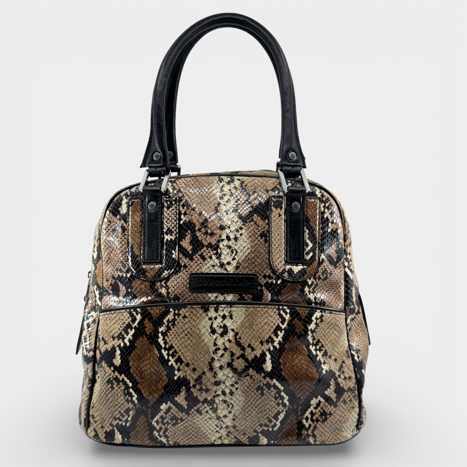 Longchamp Brown Beige Snake Effect Cosmos Top Handle Bag