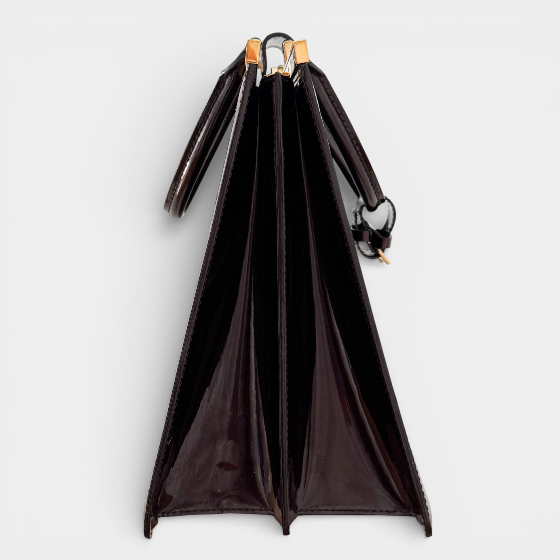Details & Composition: Crafted from Louis Vuitton’s signature monogram vernis patent leather, this handbag combines a smart, structured exterior with a spacious, well-organised interior.