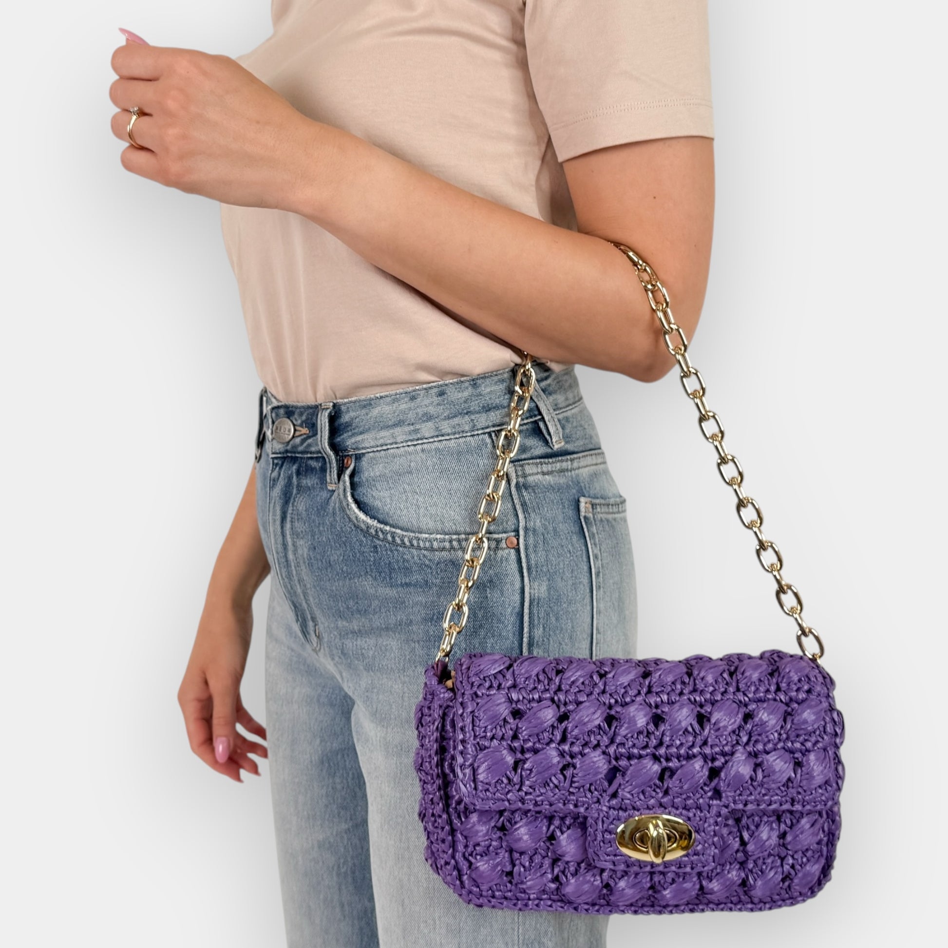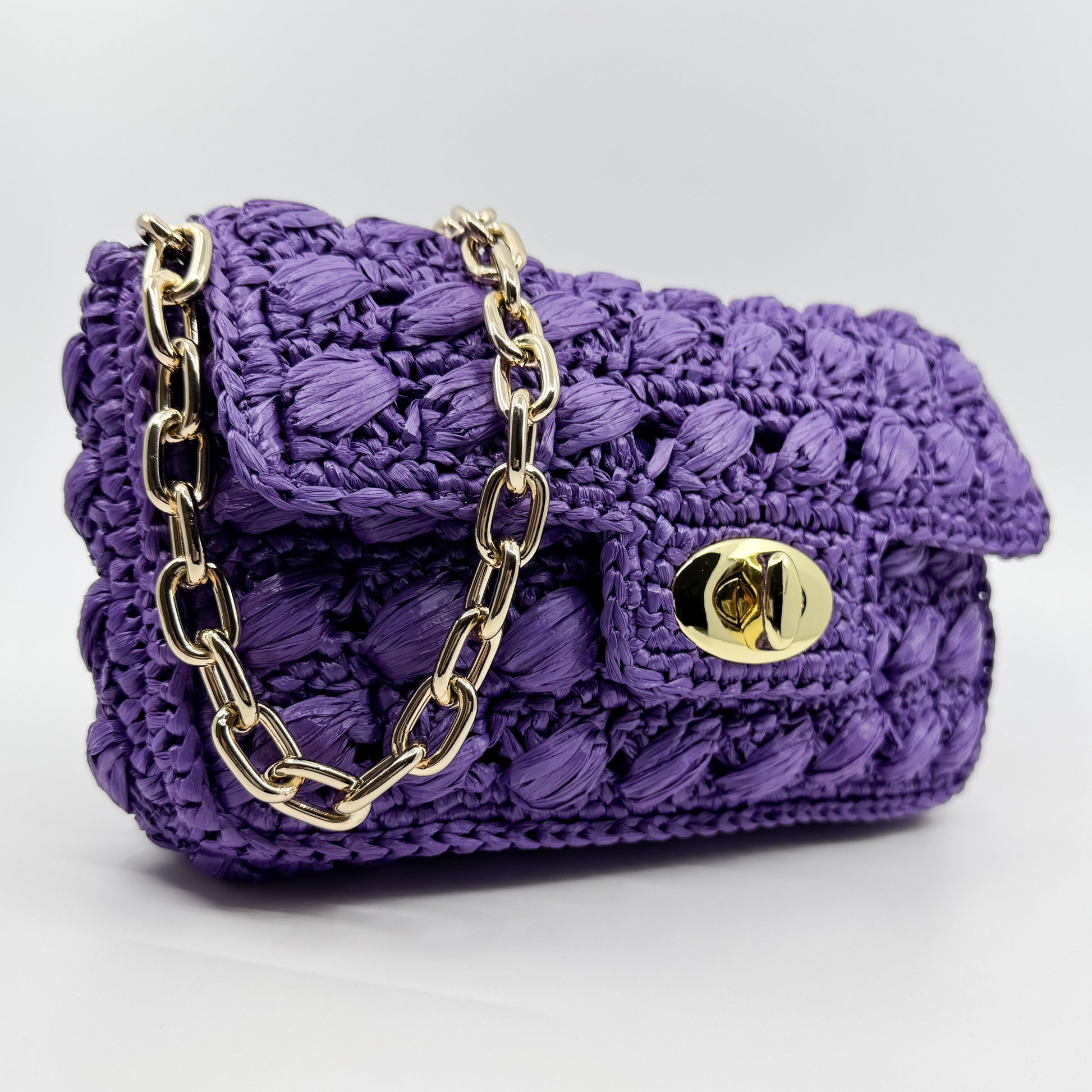 Luisa Spagnoli Purple Rattan Isoletta Shoulder Clutch Bag