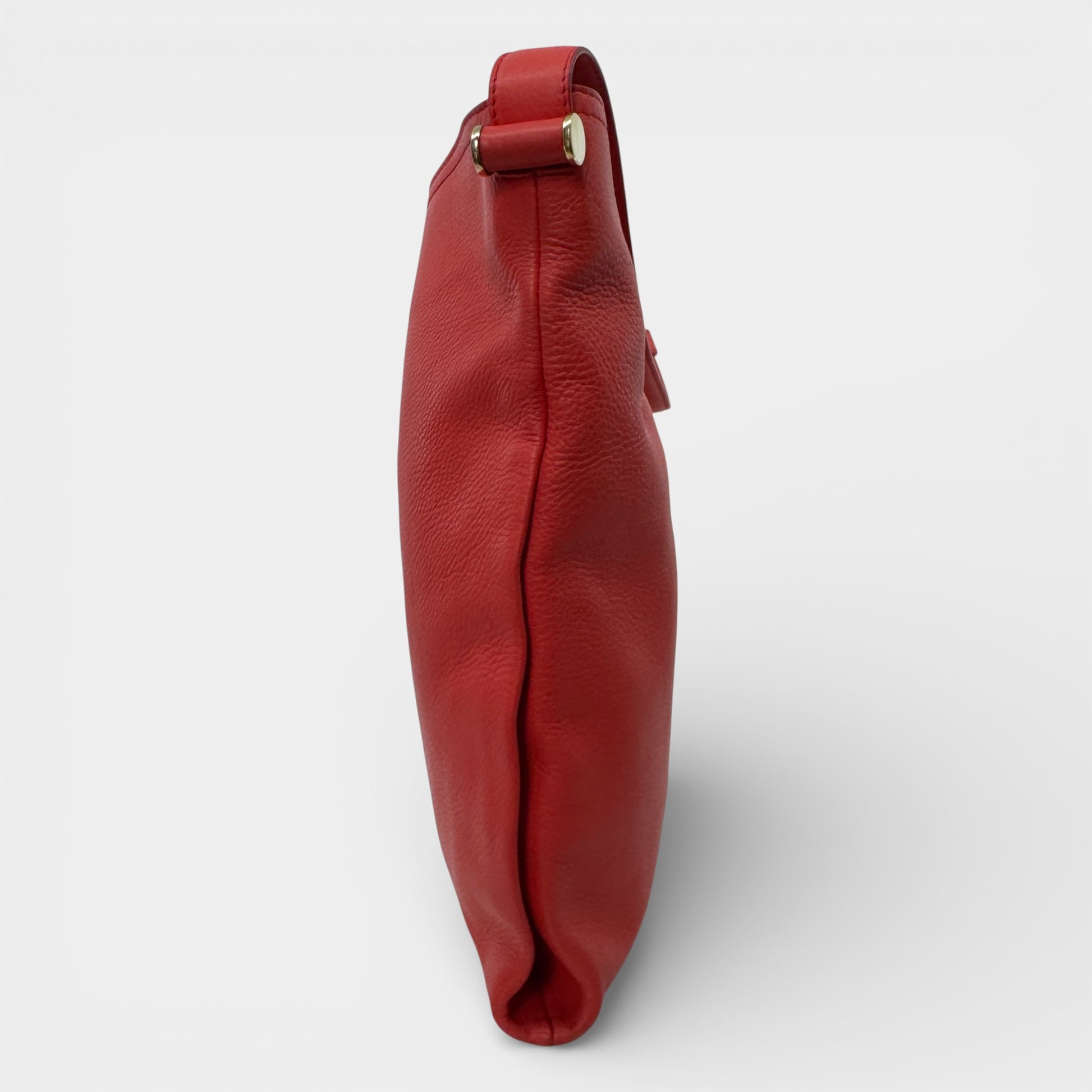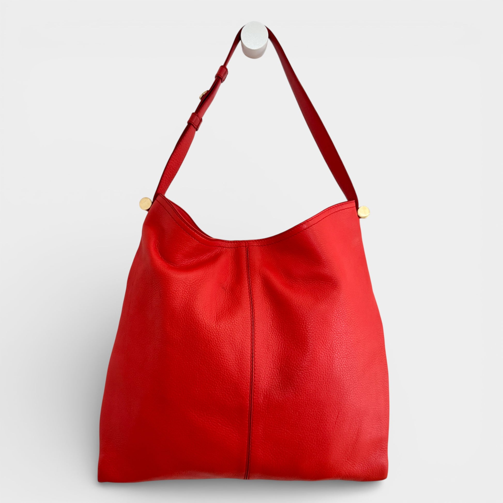 Max Mara Coral Red Leather Shoulder Tote Bag