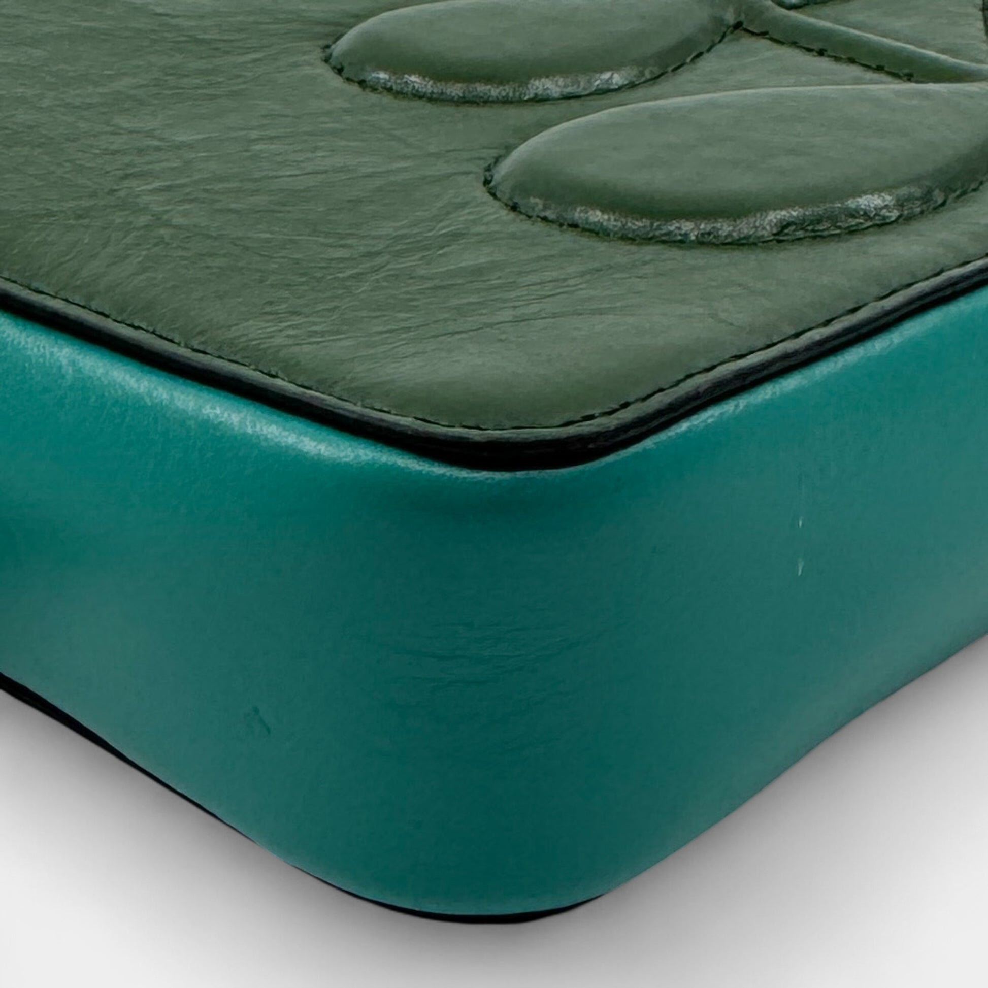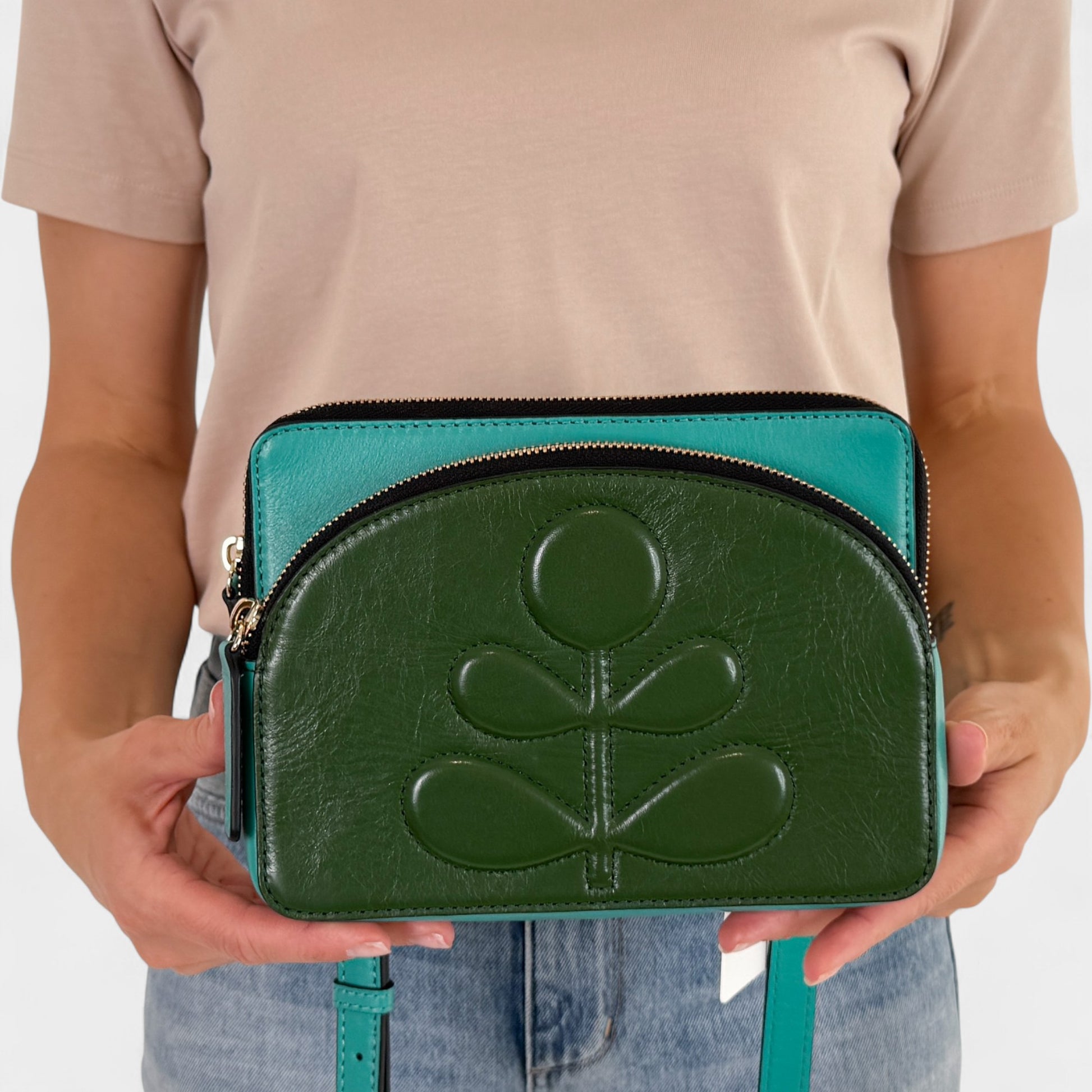 Orla Kiely Portia East Turquoise Green Leather Embossed Stem Crossbody Bag