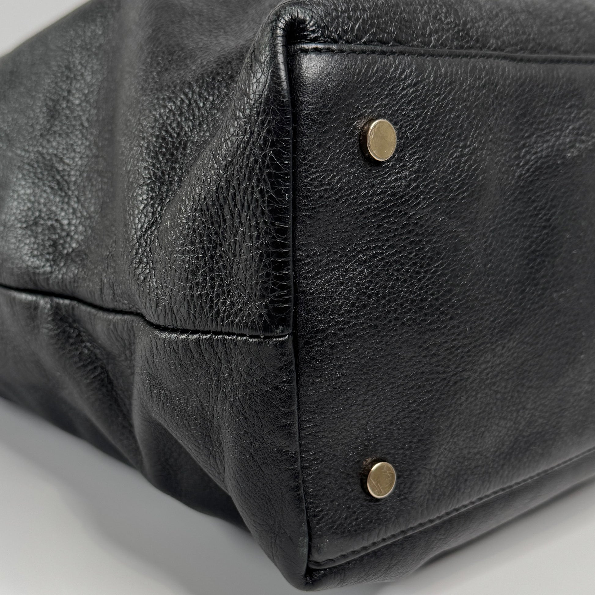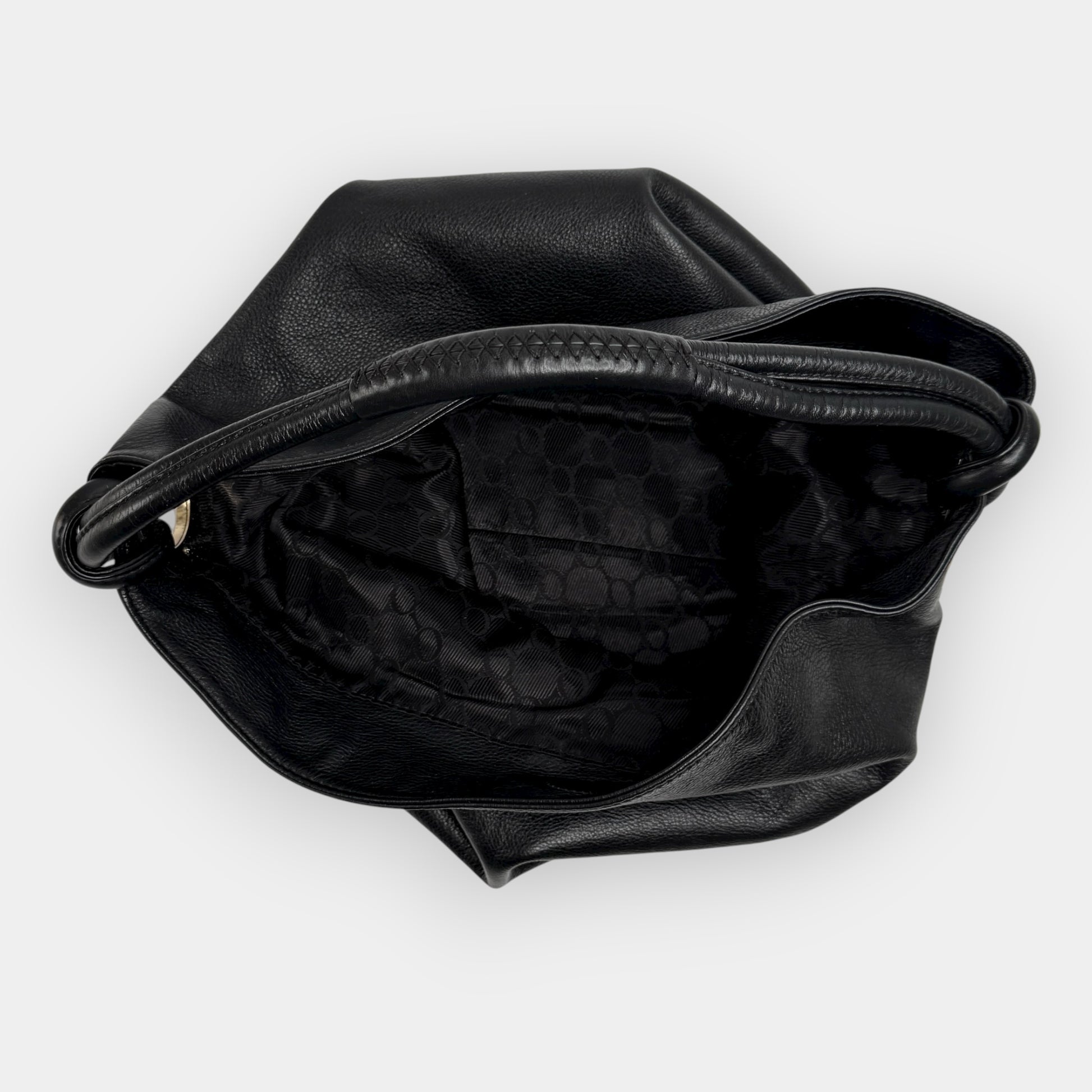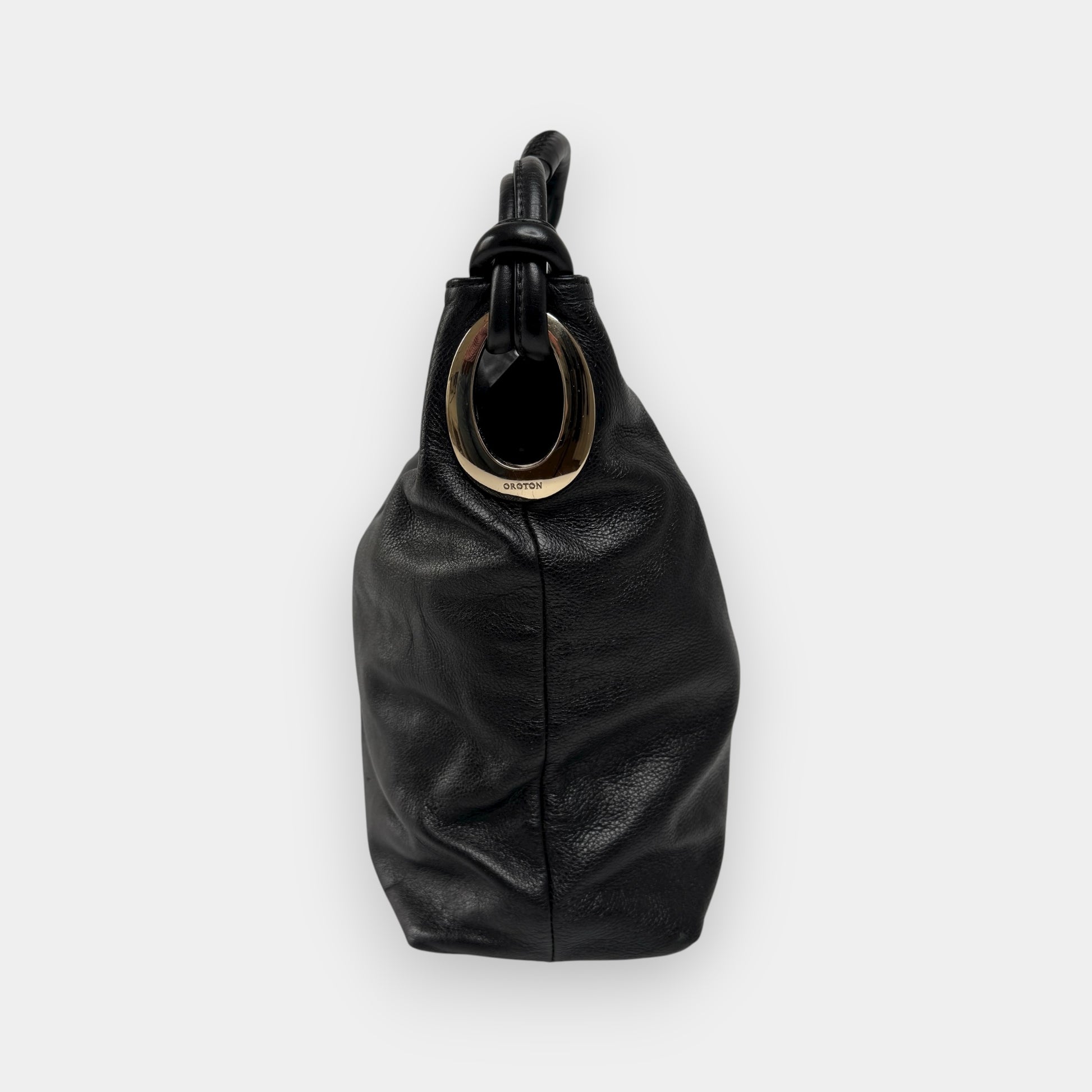 Details: Oroton slouchy hobo bag in butter-soft grainy black leather with very light silvery gold metal hardware. Spacious shoulder design with a relaxed silhouette. Open top with magnetic closure. Comes with dust bag.