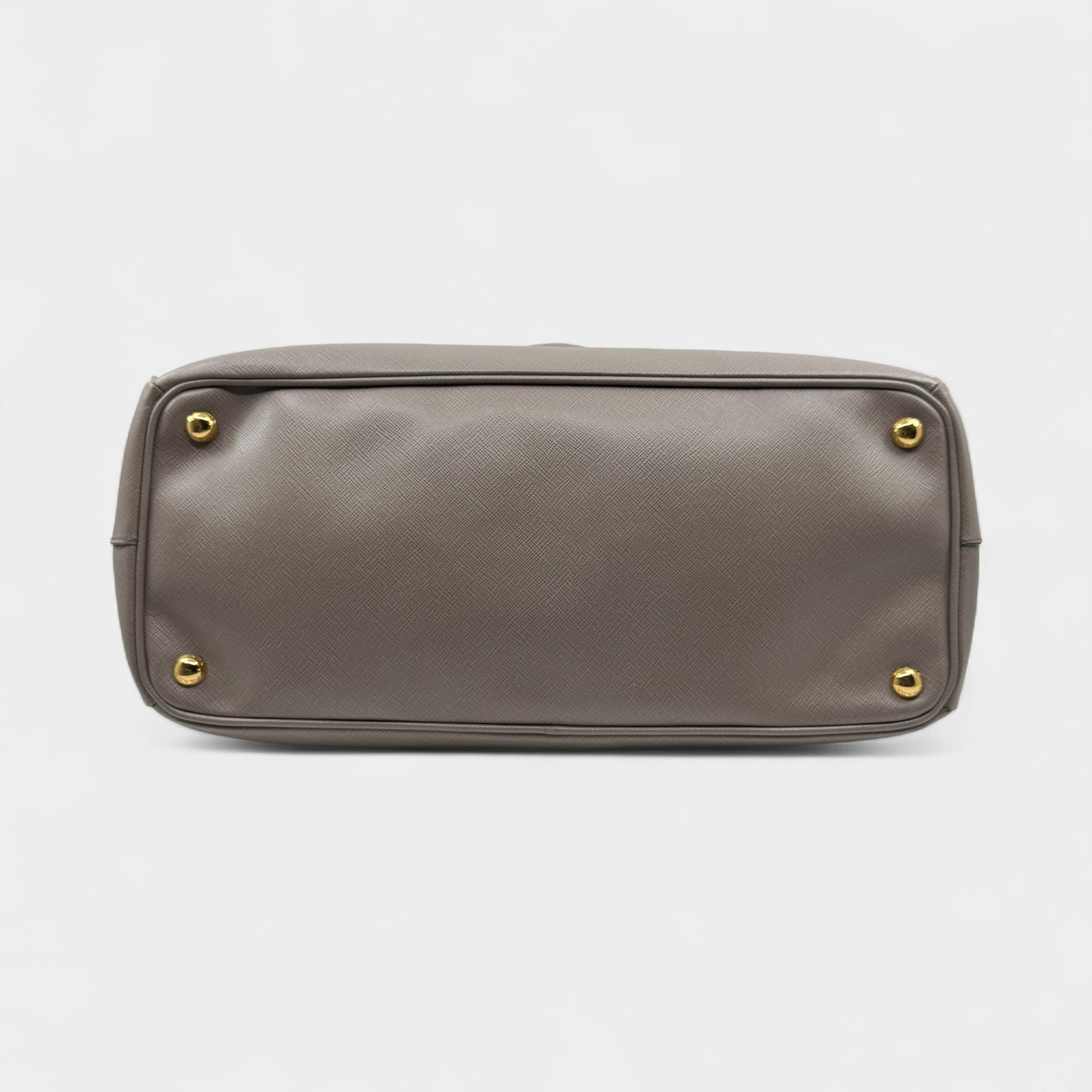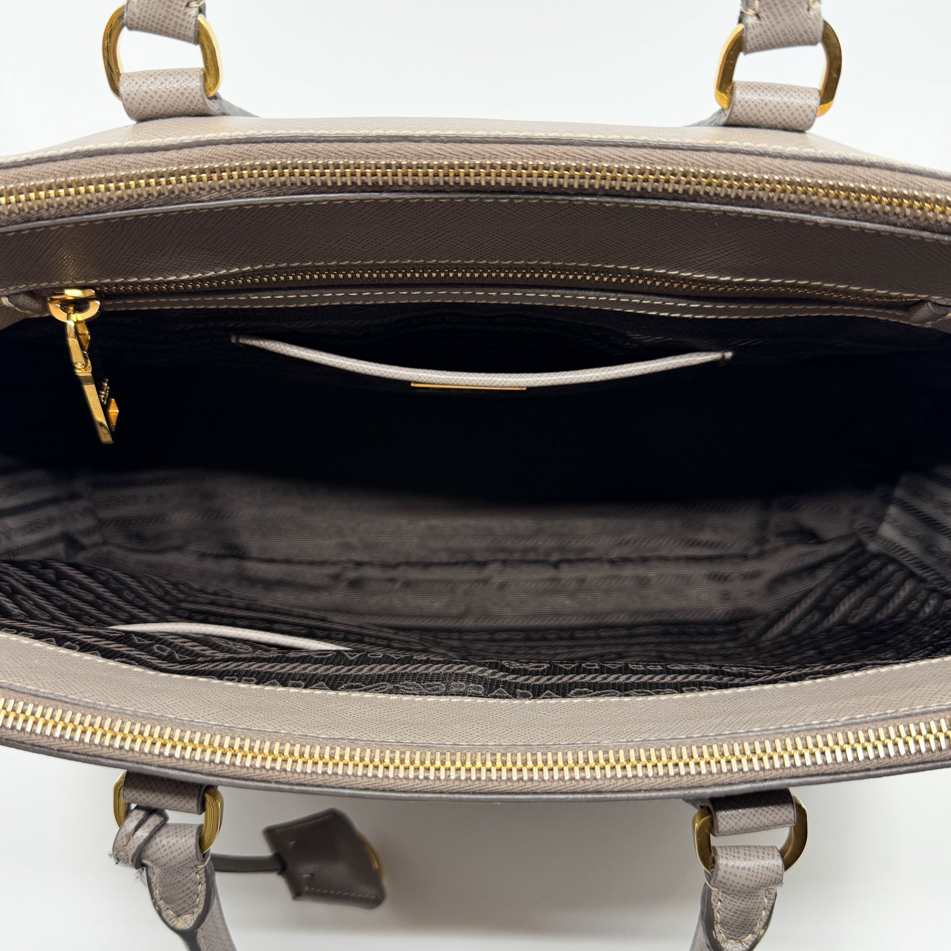 Prada Beige Grey Saffiano Leather Double Zip Galleria Tote Bag