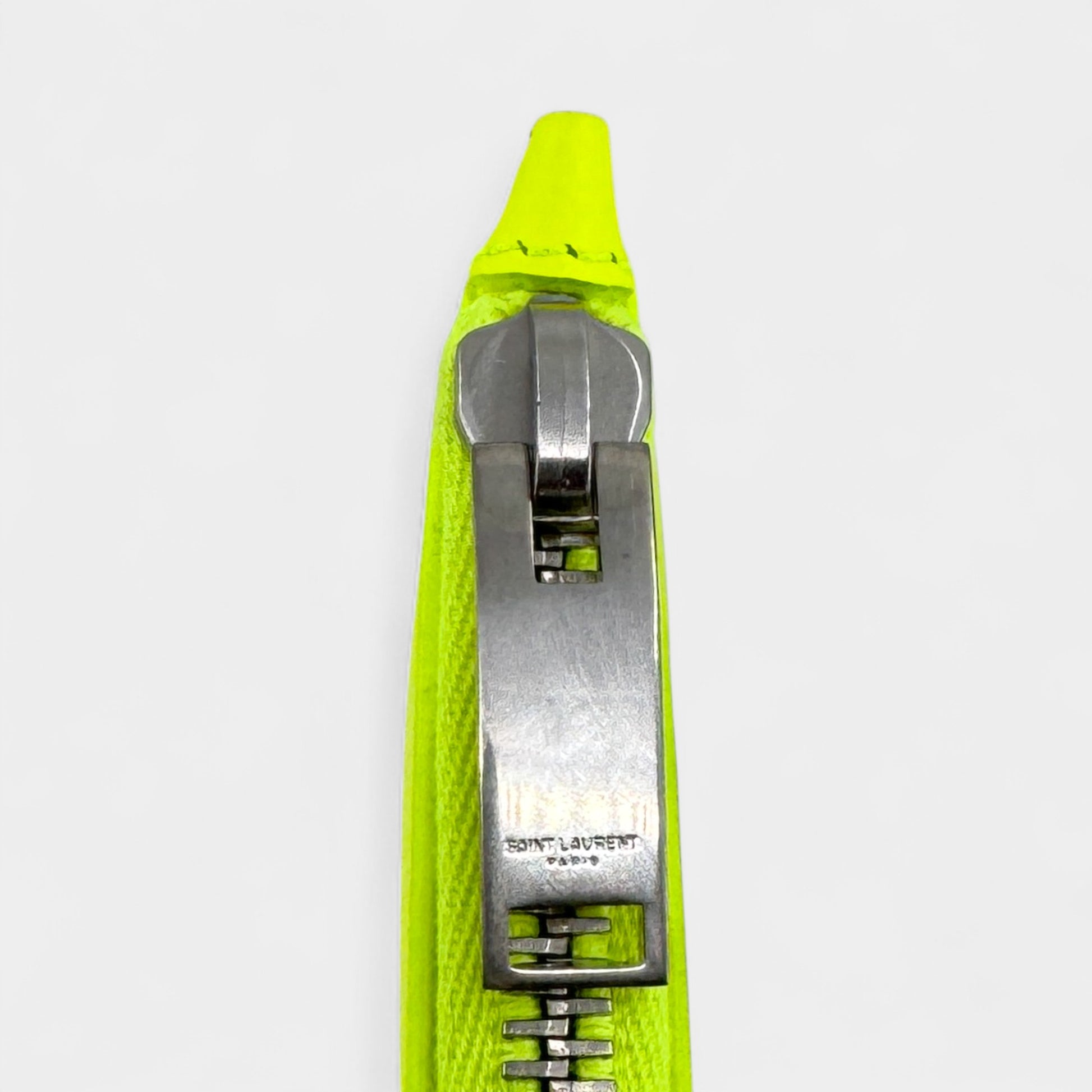 Details: From Saint Laurent’s Spring/Summer 2016 collection by Hedi Slimane, this vibrant yellow zip wallet is crafted from supple calfskin leather with silver-tone hardware. Features a compact silhouette with multiple card slots and an exposed zip closure. Includes SL box and dust bag.