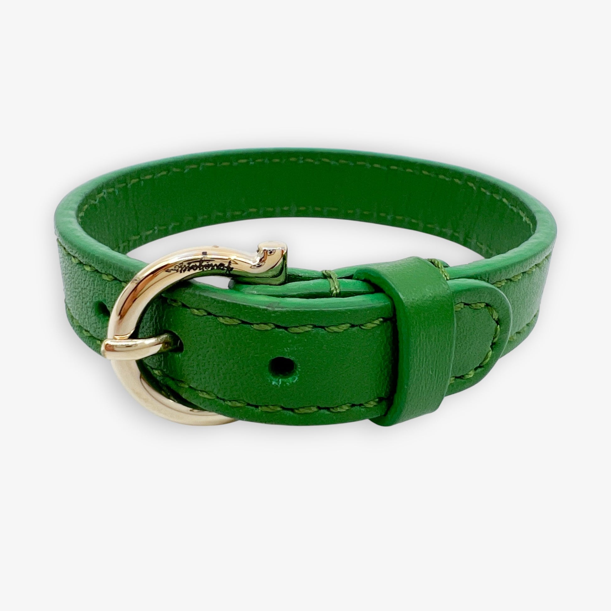 Salvatore Ferragamo Green Leather Cuff Bracelet