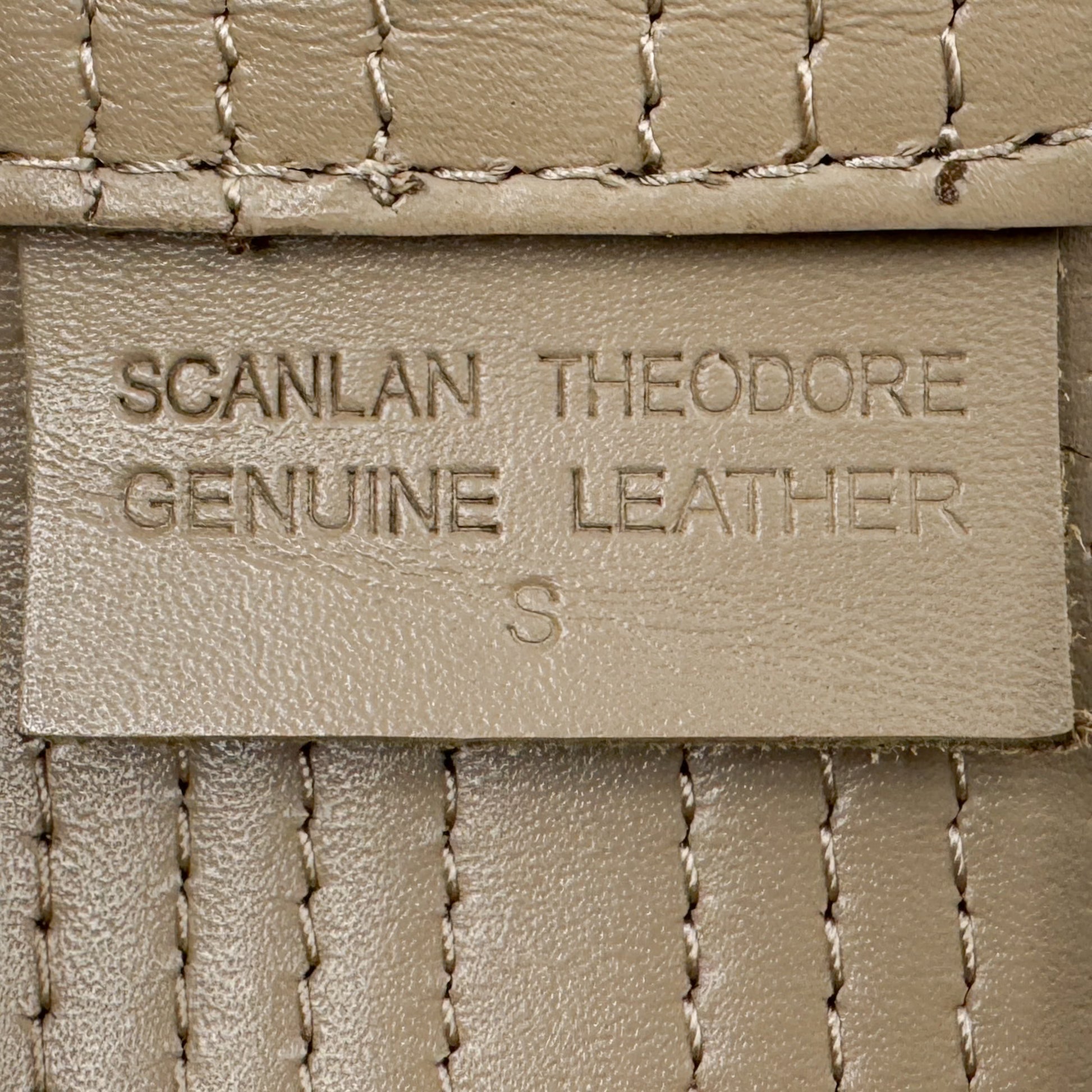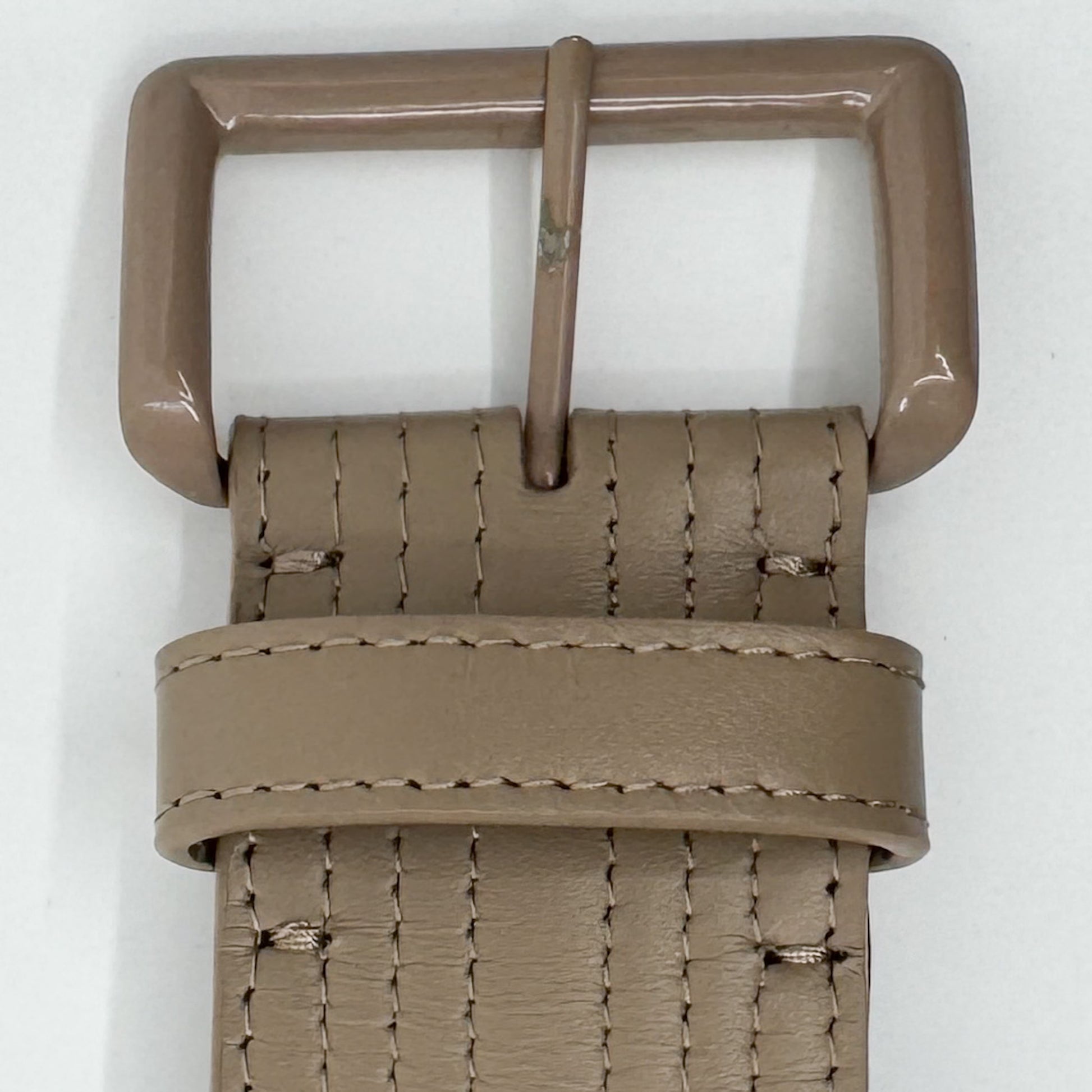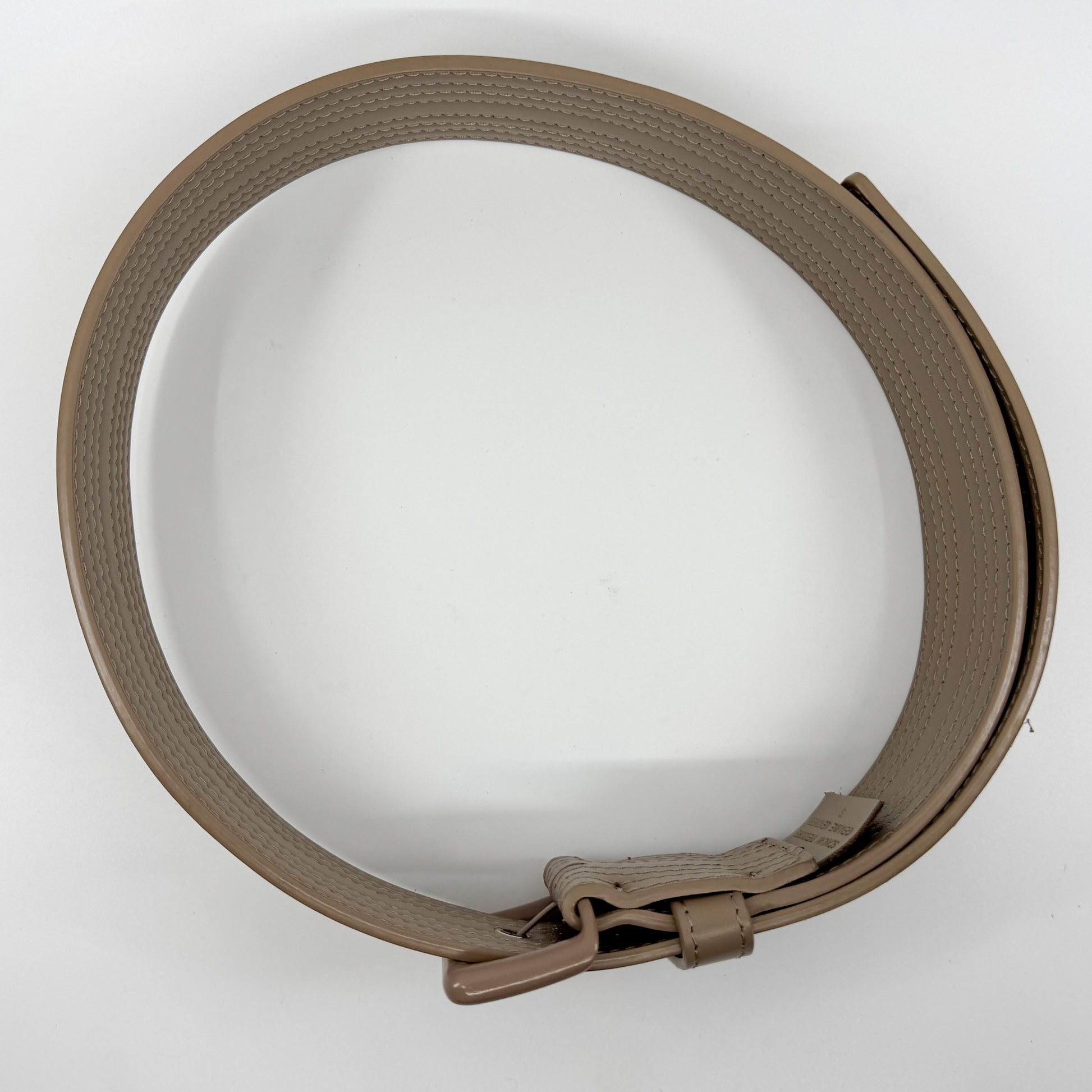 Details: Fabulous nude-taupe leather top stitched belt by Scanlan Theodore.