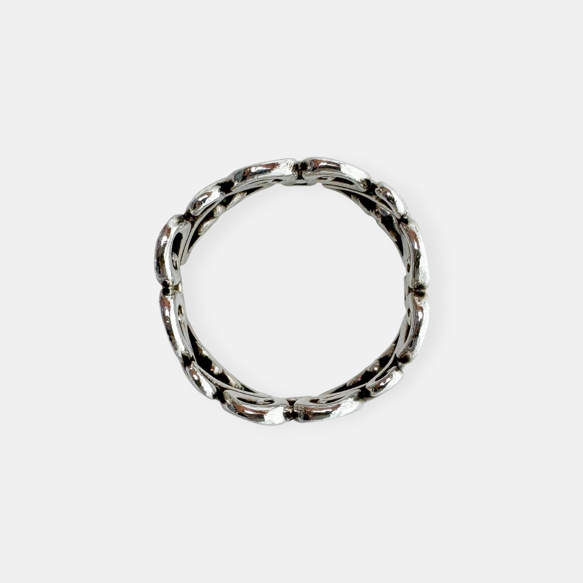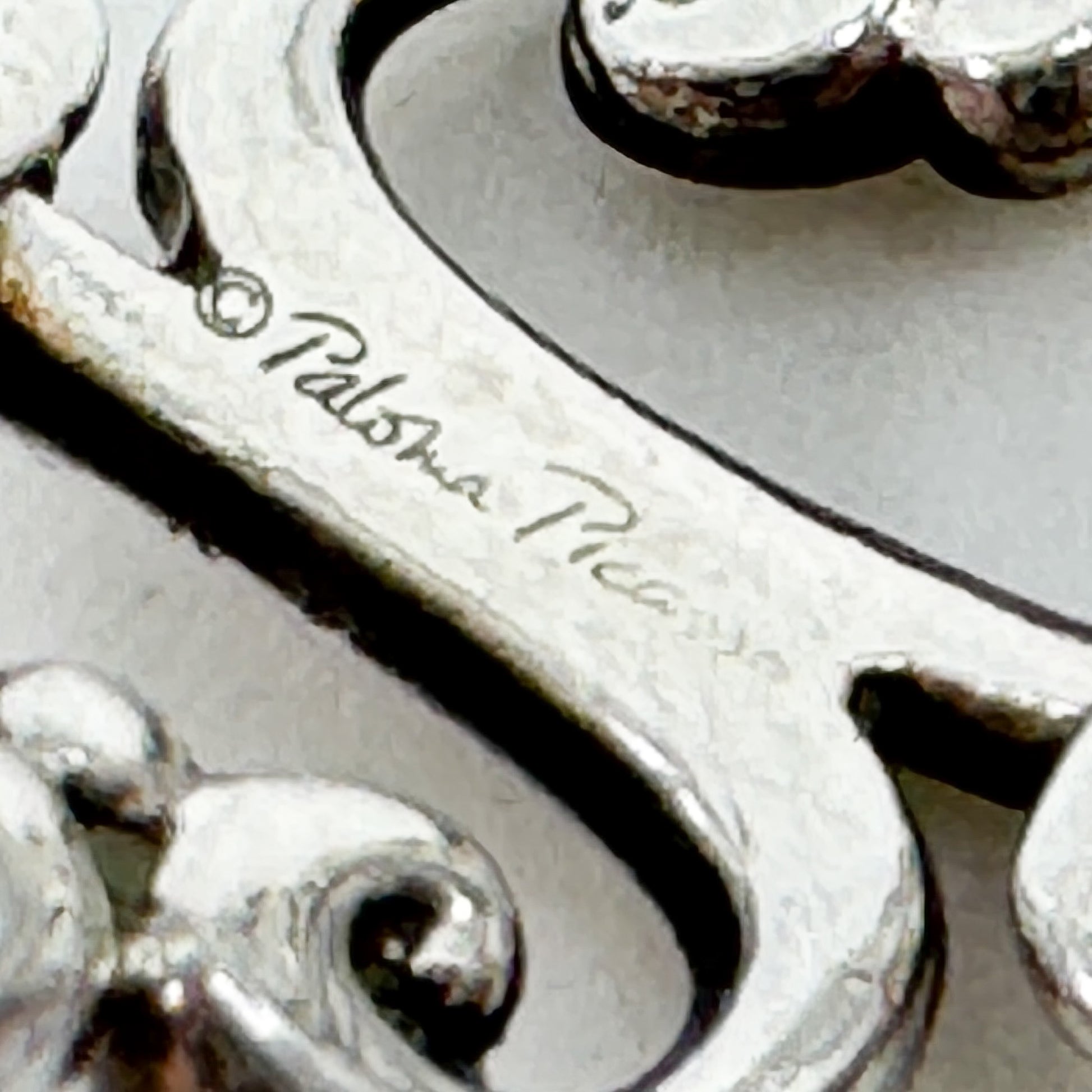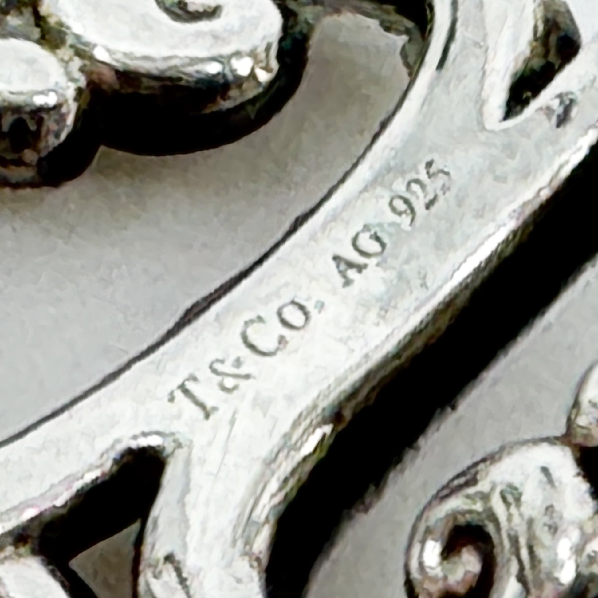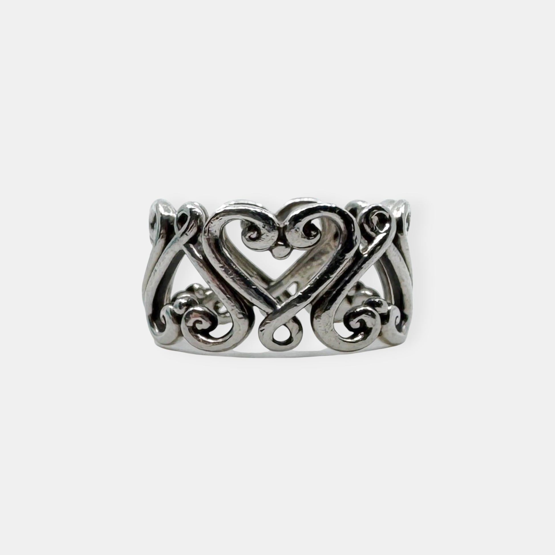 Details: A beautifully intricate heart motif ring designed by Paloma Picasso for Tiffany & Co. as part of the Venezia Goldoni collection. Inspired by Venetian ironwork, this romantic piece is crafted in solid sterling silver (925) and features sculptural openwork in a repeating heart pattern. Signed Paloma Picasso and stamped T&Co. AG 925.