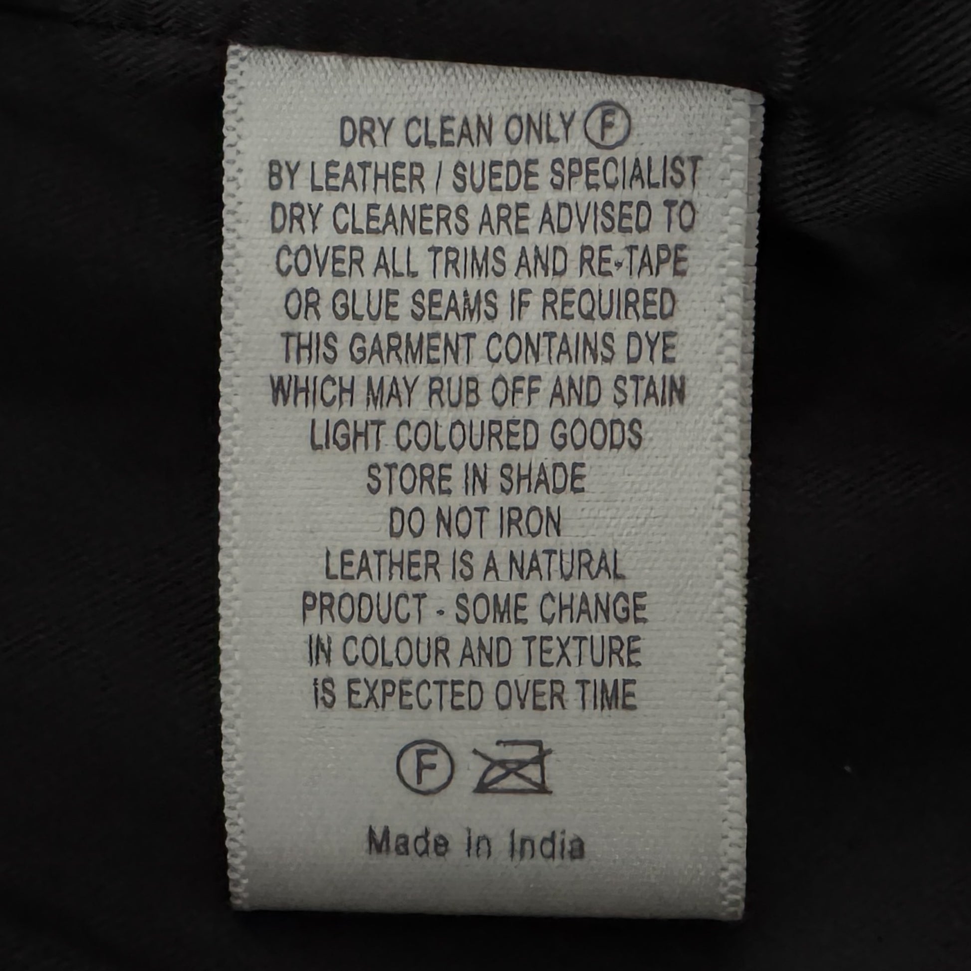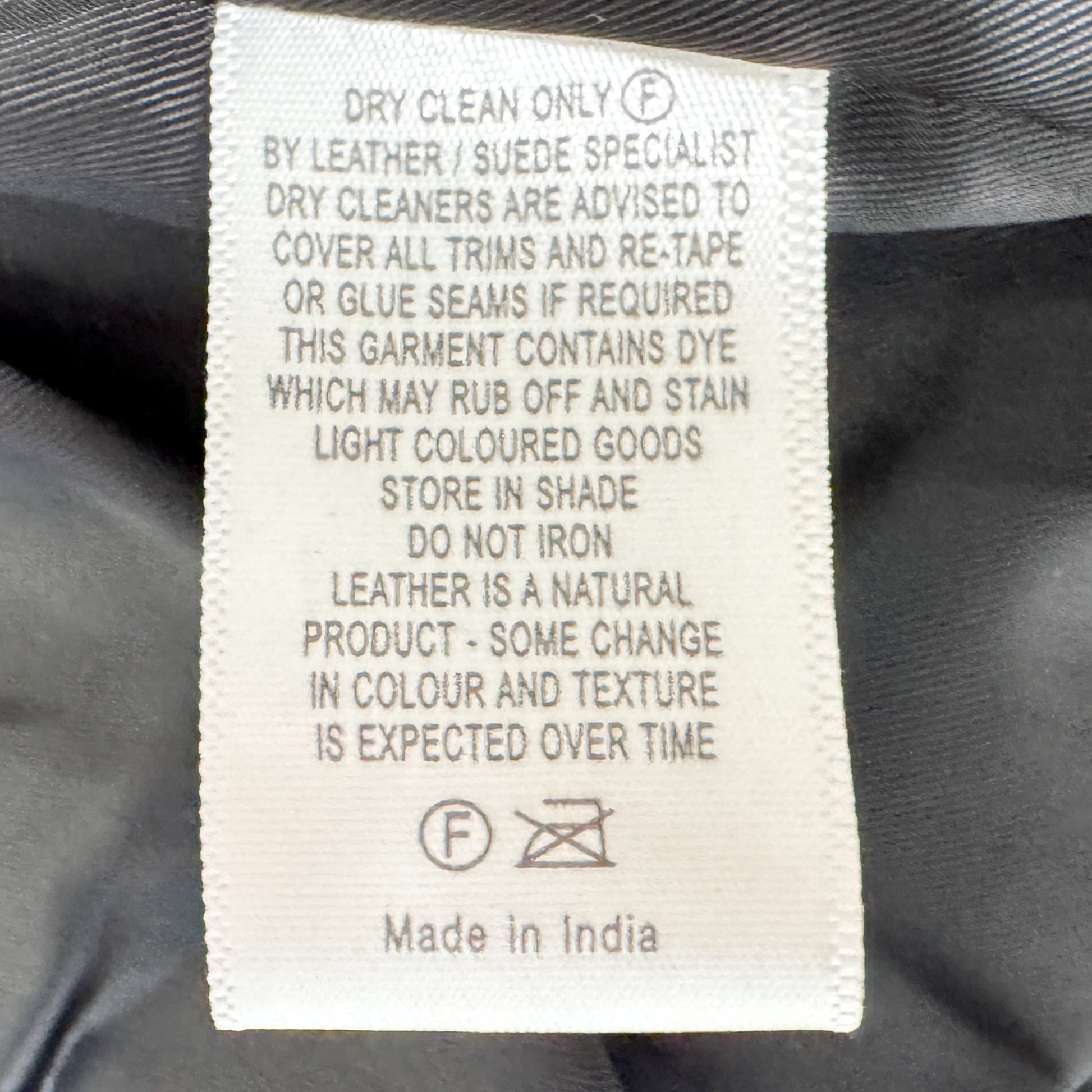 Details: Striking limited edition jacket by Witchery in soft black lamb’s leather, printed with a vivid floral design and detailed with metal studs. Features classic biker styling with an asymmetric zip front, notched lapel, zip pockets, and adjustable waist belt.