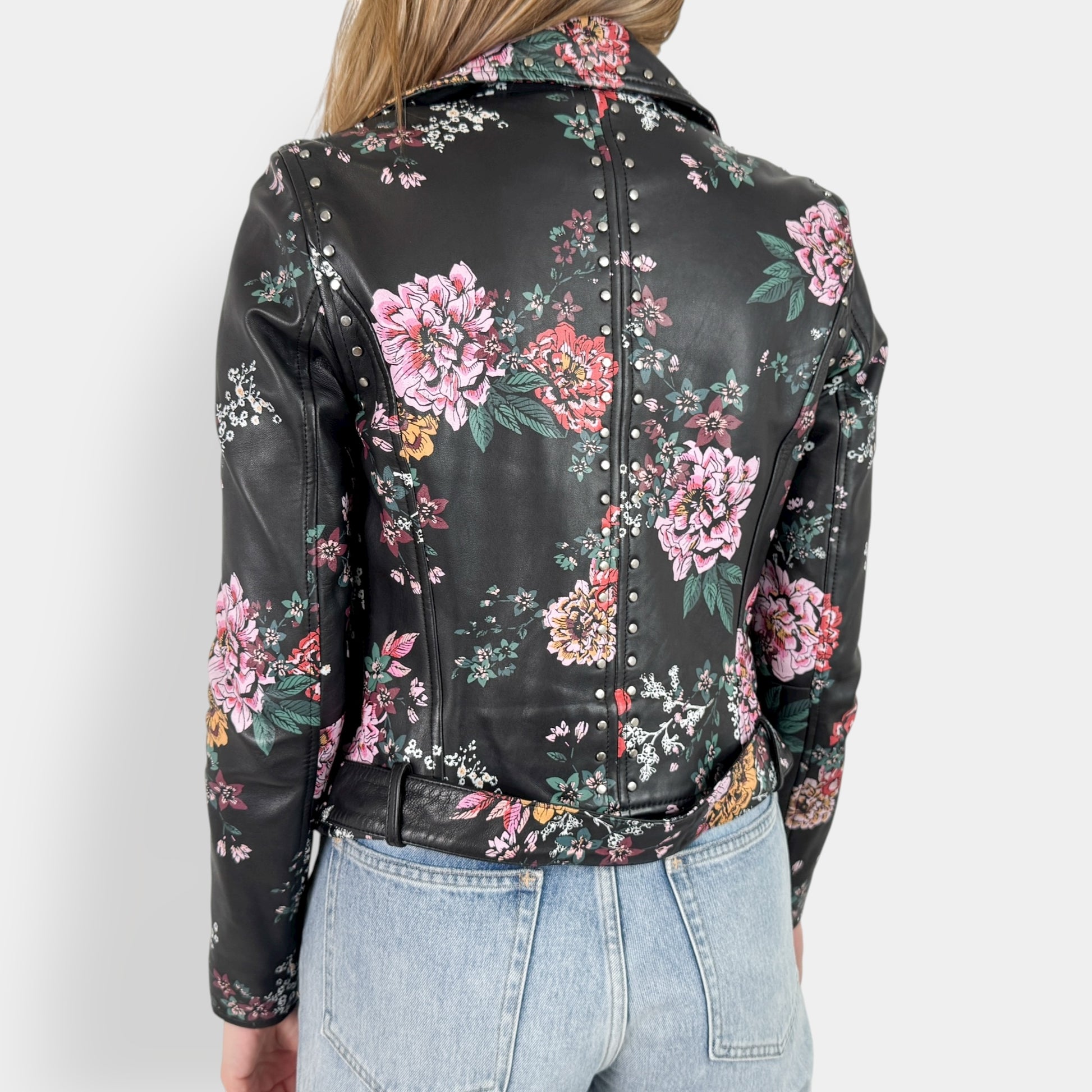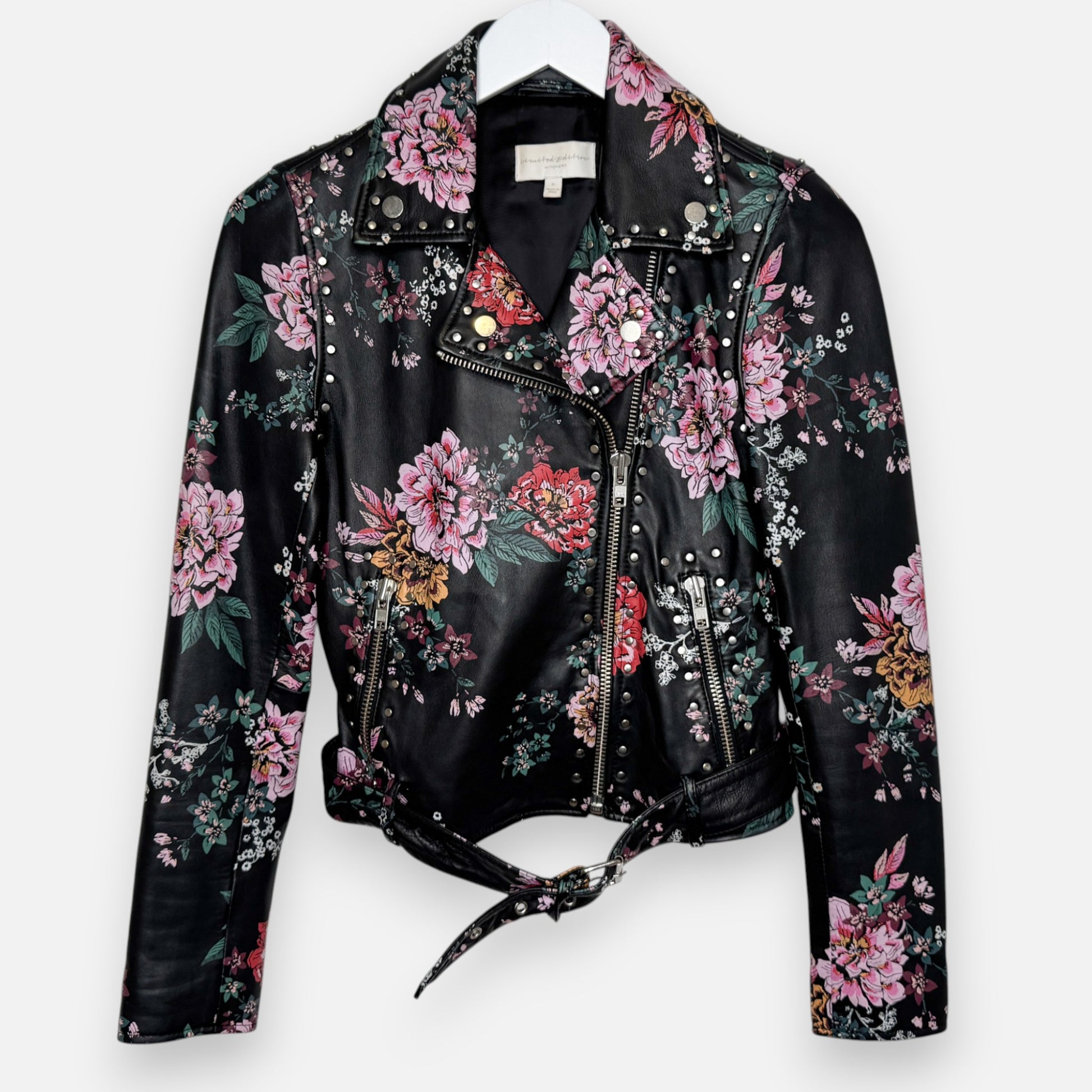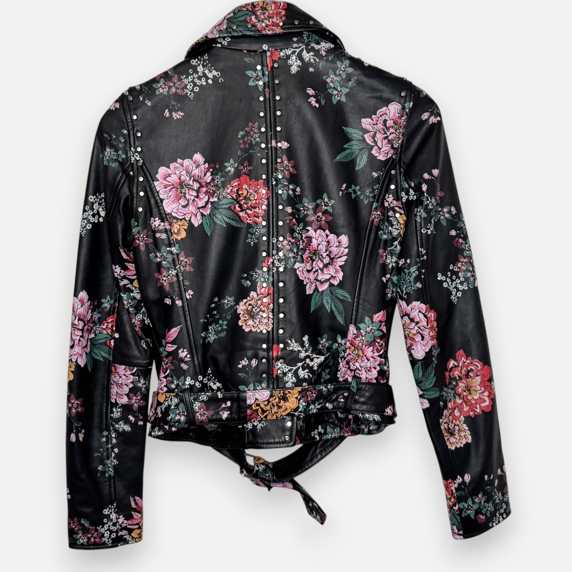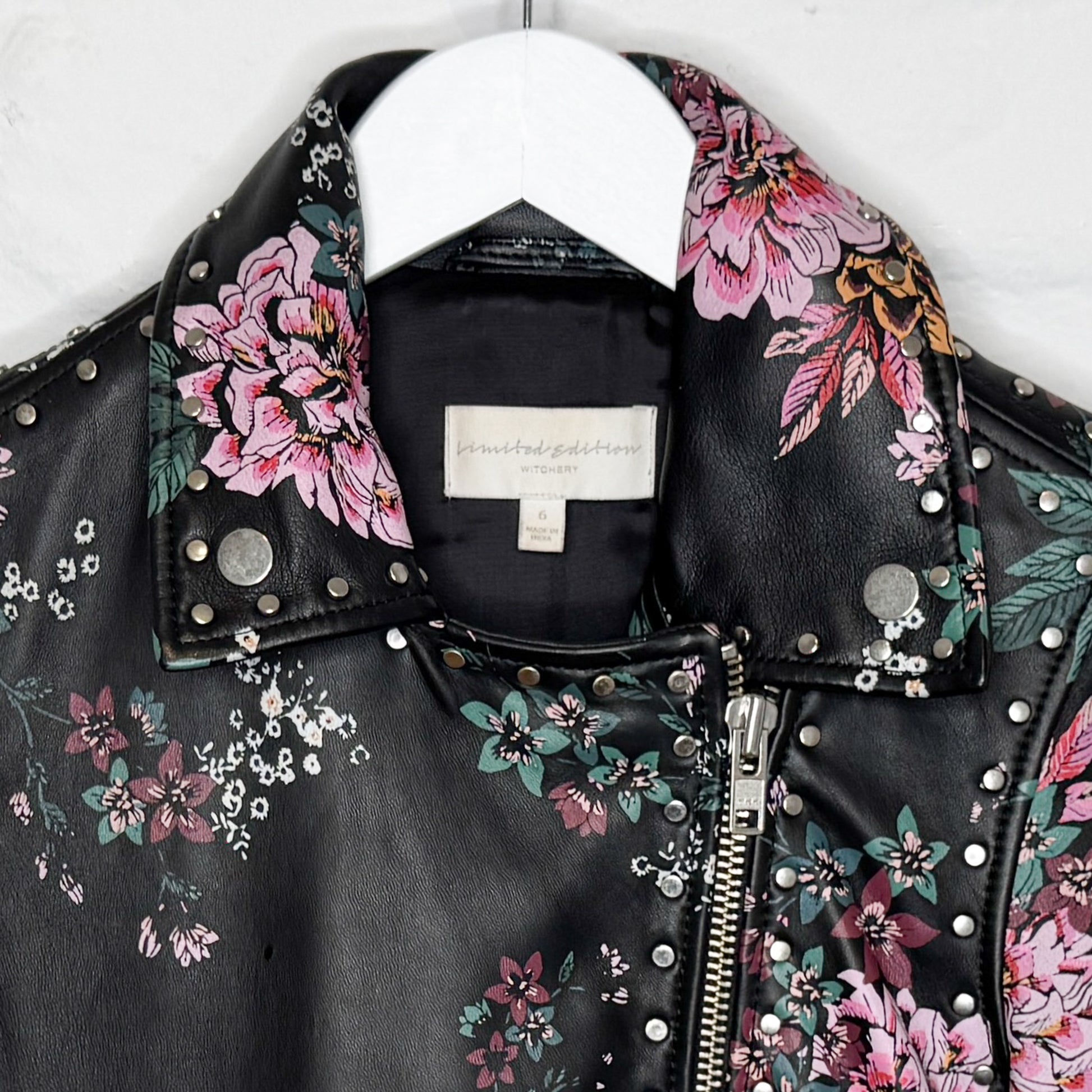 Witchery Limited Edition Black Floral Leather Jacket AU6 ~ Small