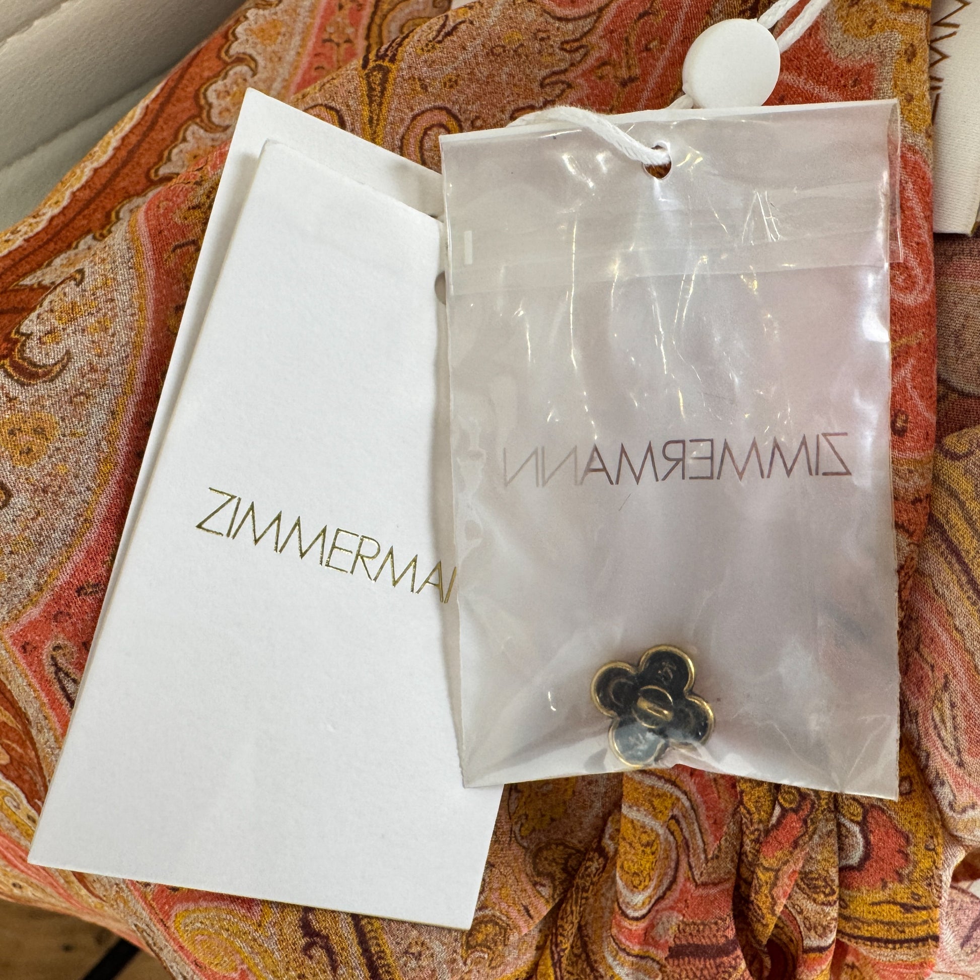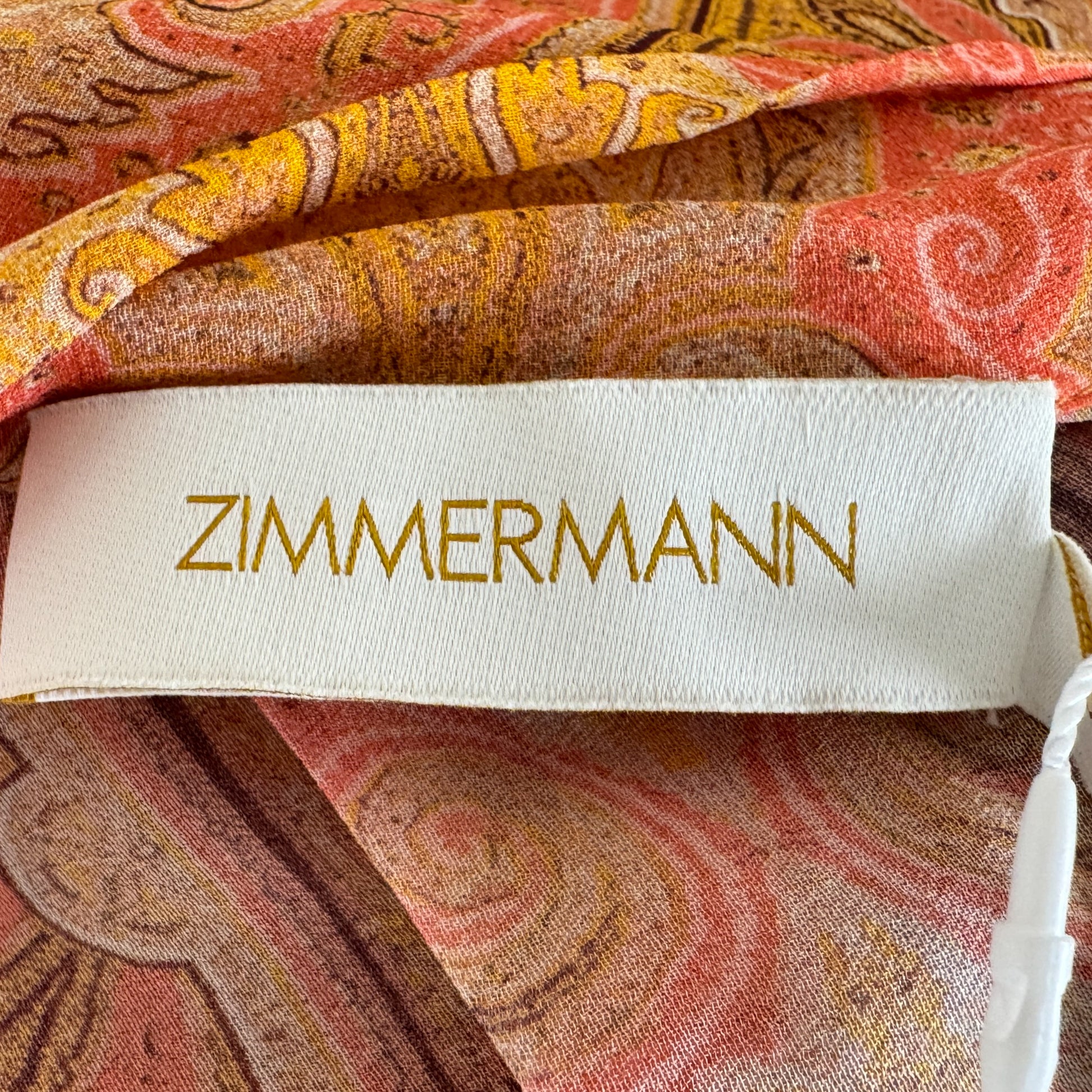 Zimmermann Tranquillity Orange Coral Paisley Neck Tie Blouse 0 ~ AU8